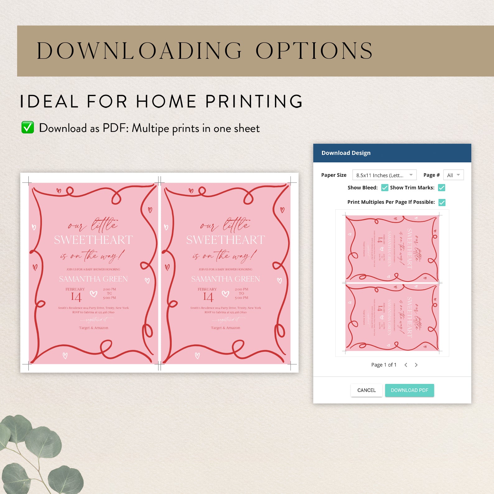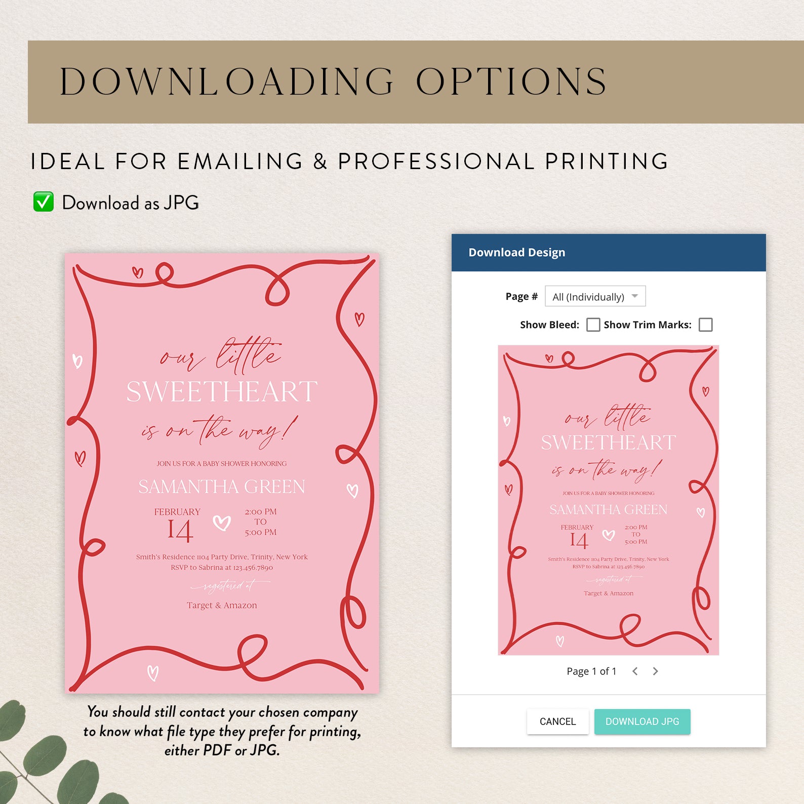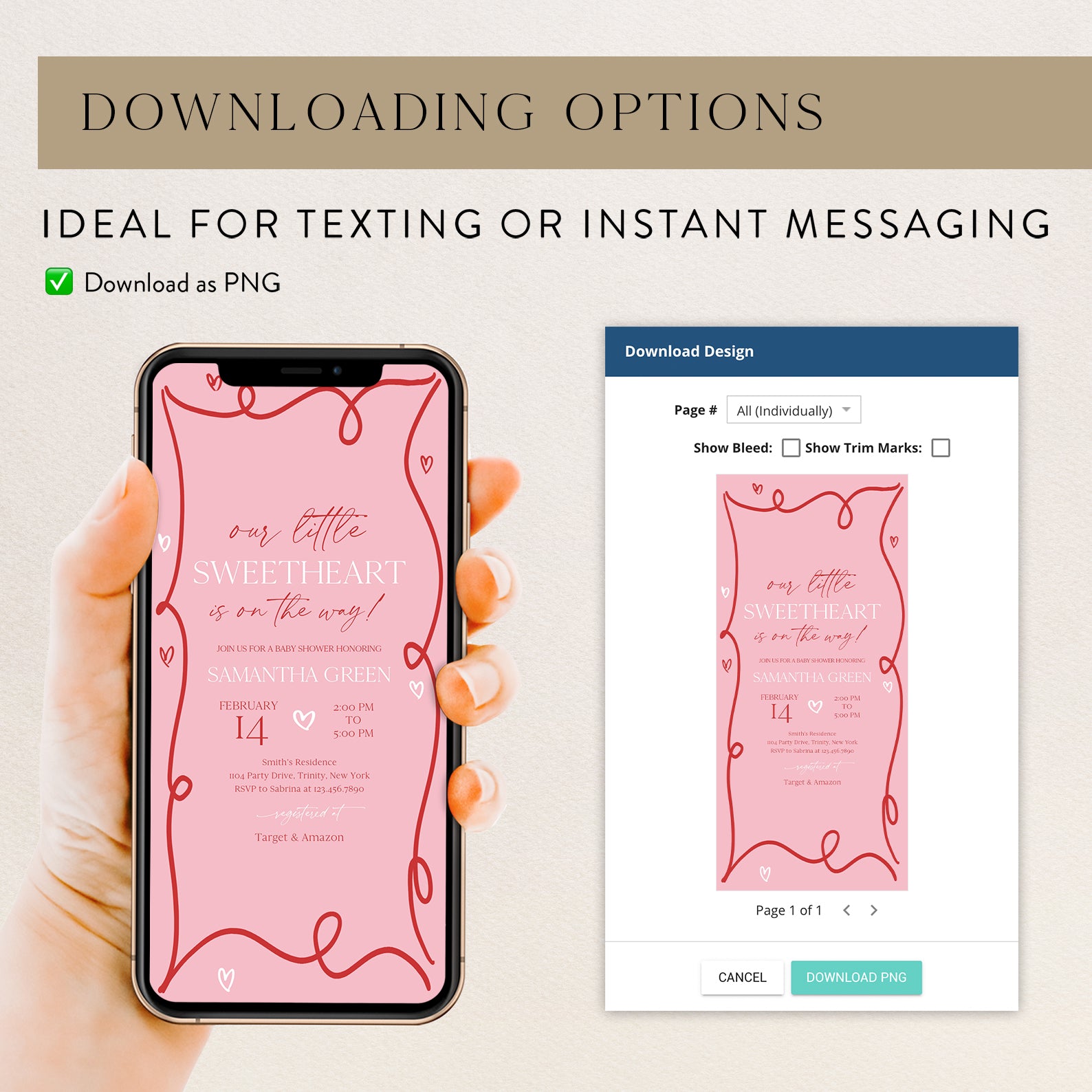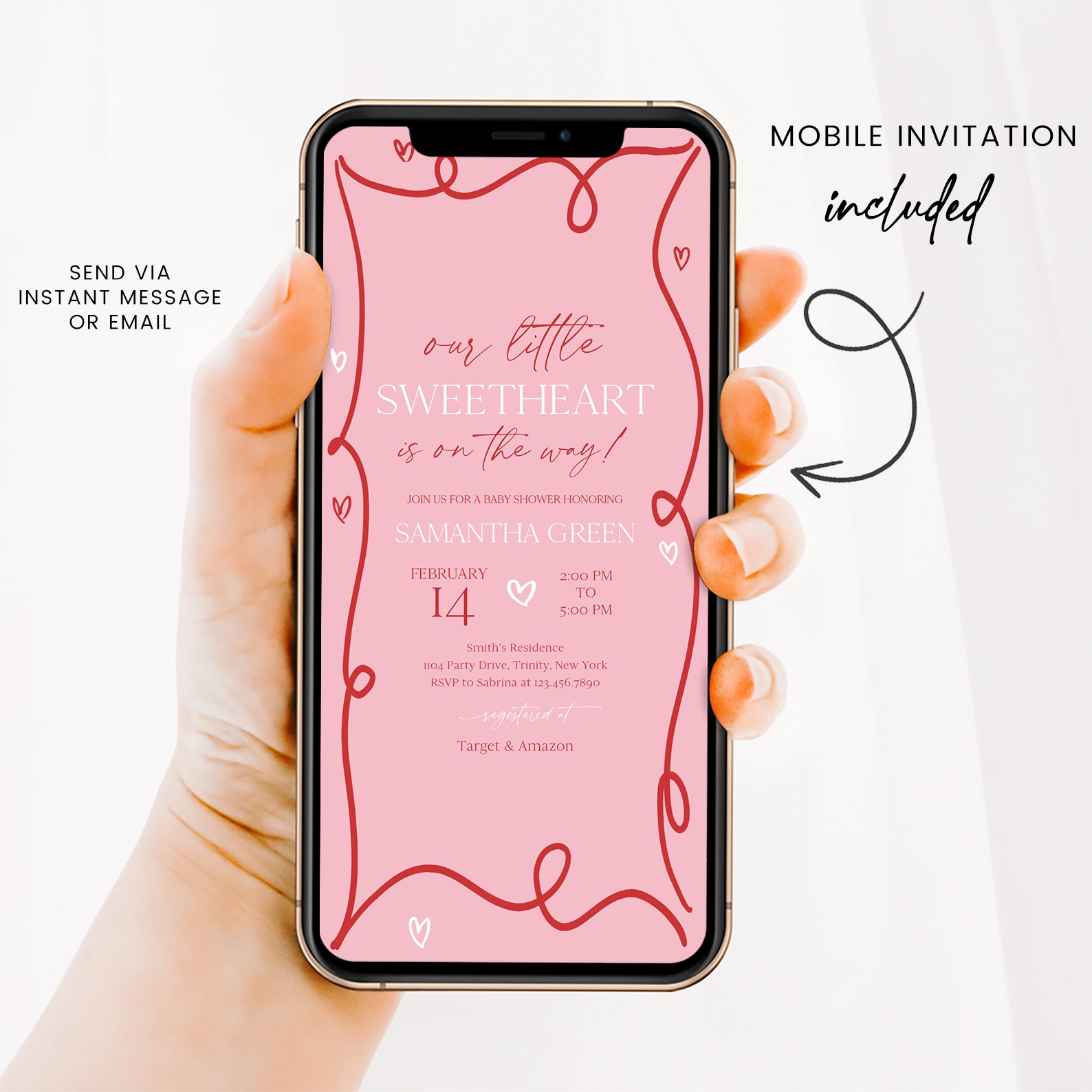 - Purchase this Valentine's Baby Shower Invite Bundle with Red Ribbon & Pink Hearts template