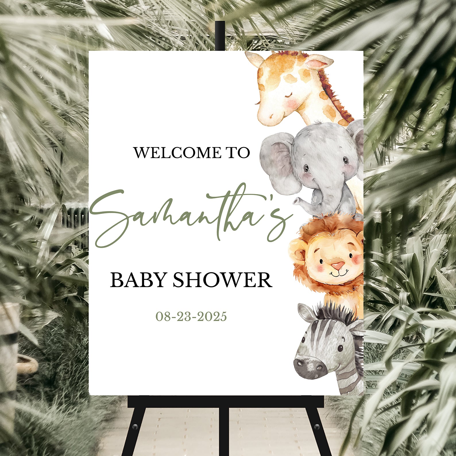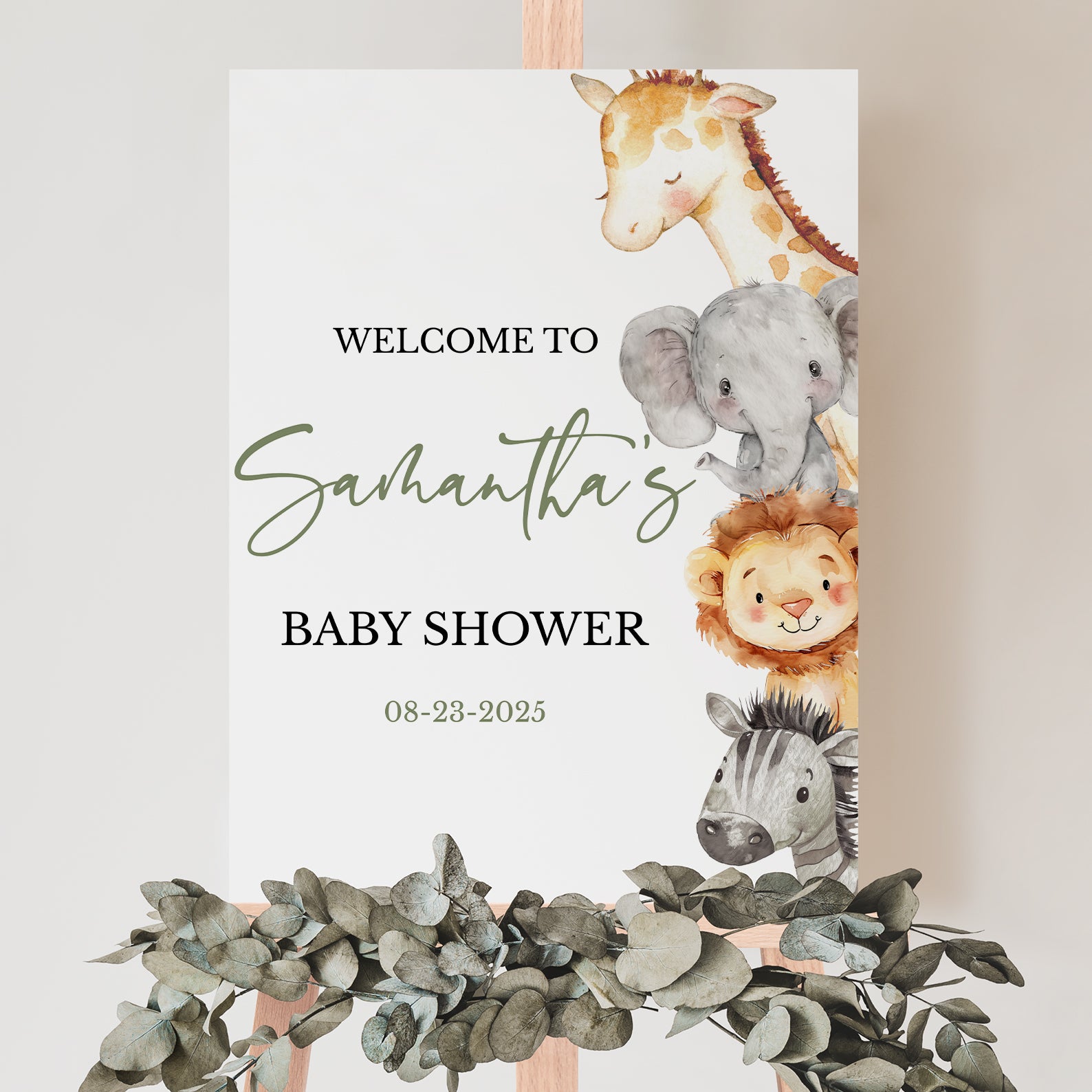 - Purchase this Oh Baby Safari Baby Shower Digital Welcome Sign with Cute Animals template