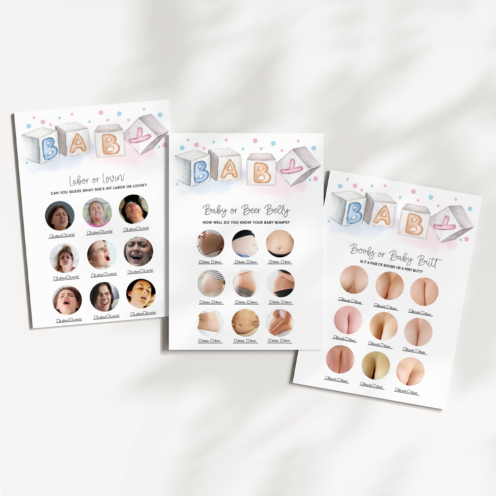 Minimalist Gender Reveal Game Bundle: Baby Blocks & Bubbles