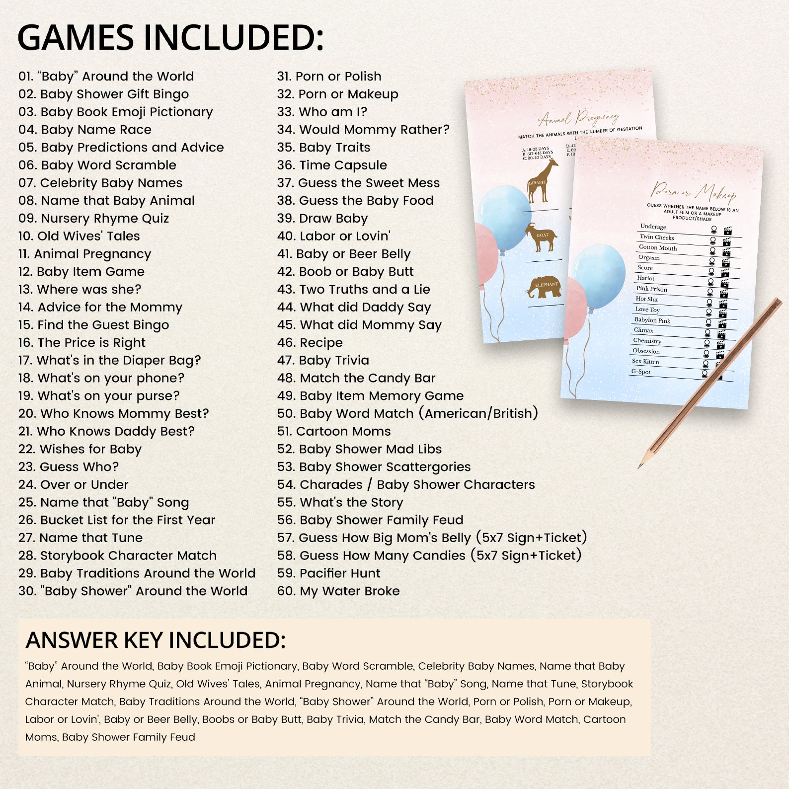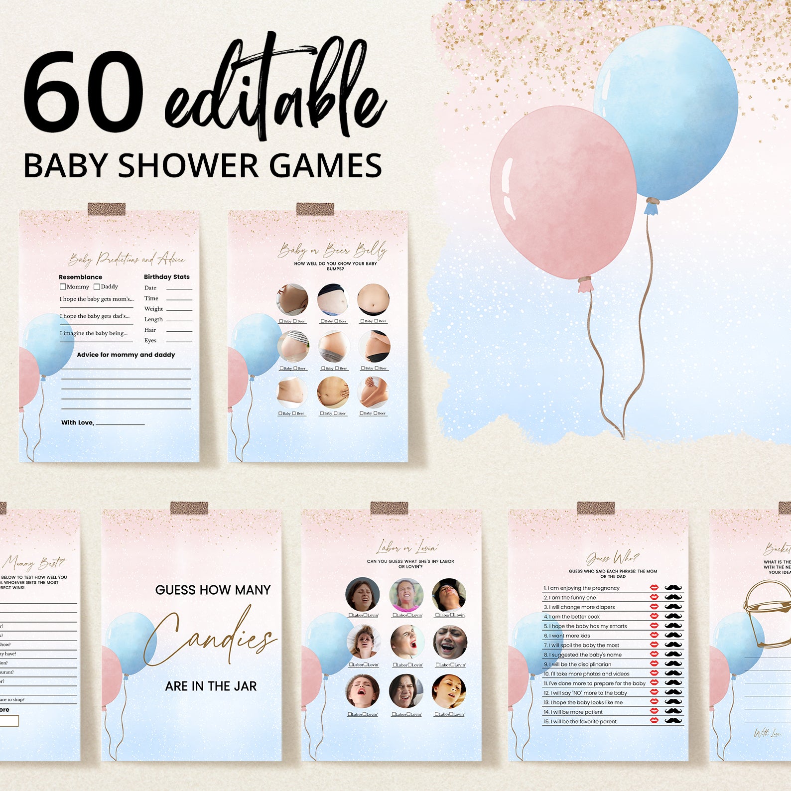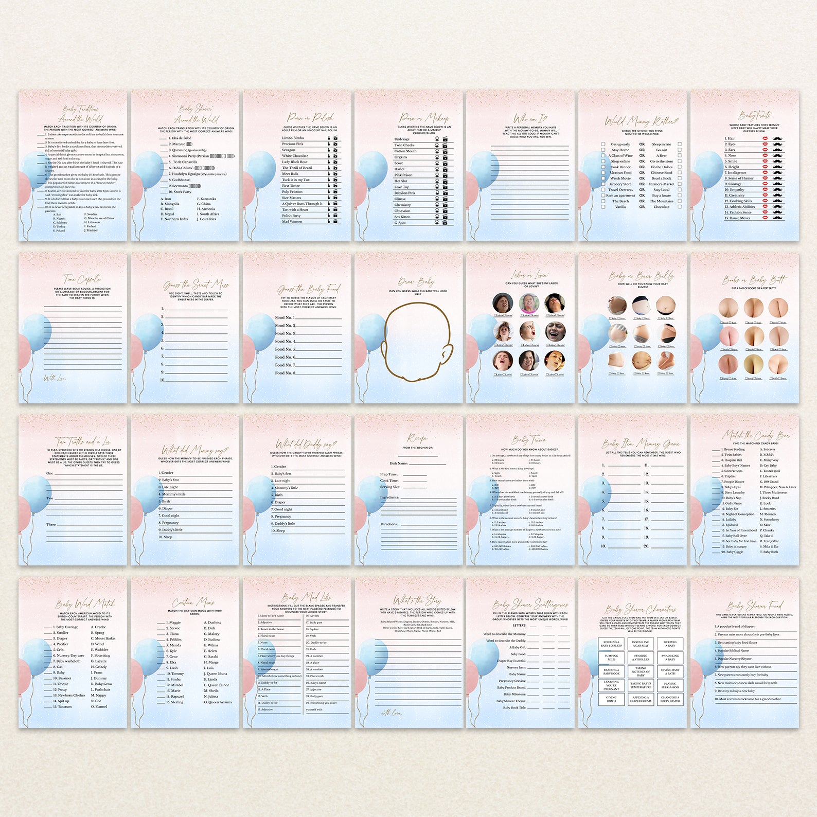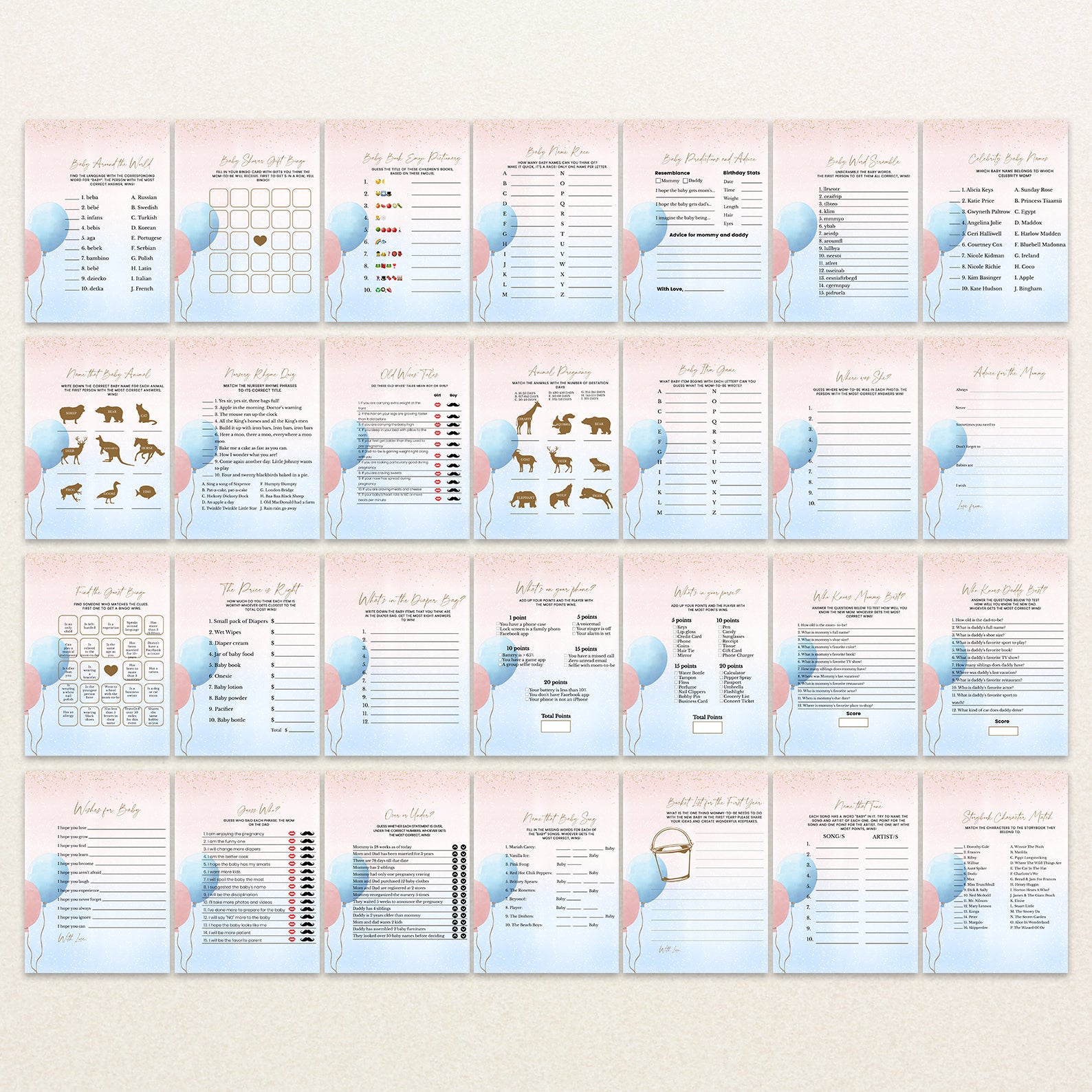 Celebrate the excitement of your upcoming arrival with our "Balloon Reveal" Gender Reveal Game Bundle! This delightful bundle includes 60 interactive games, perfect for adding fun and excitement to your celebration. Inspired by our stunning gender reveal invitation, featuring charming pink and blue balloons, these games will keep your guests entertained as they join in the thrill of discovering whether it’s a boy or a girl. Customizable and easy to share, this bundle ensures your gender reveal party is unforgettable!