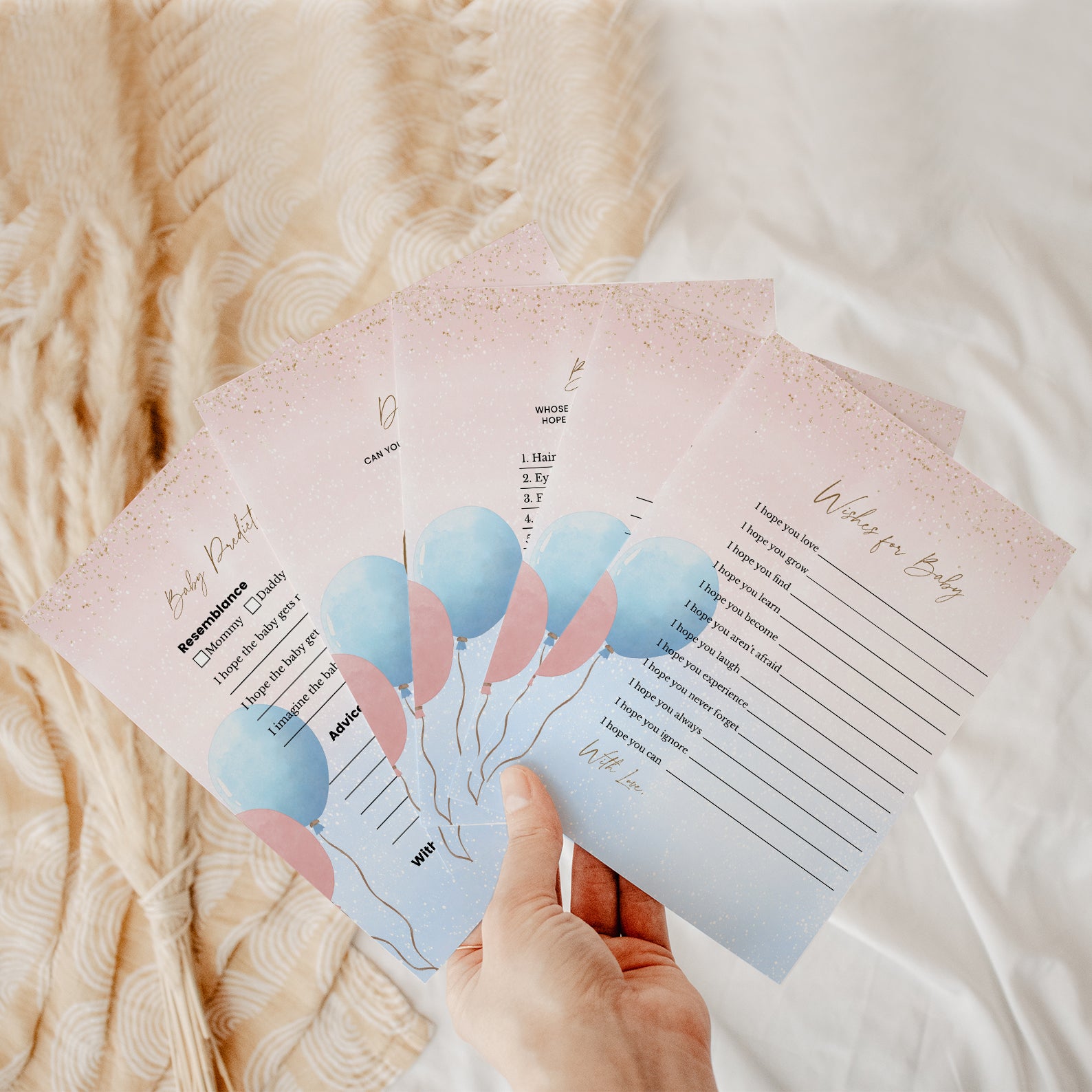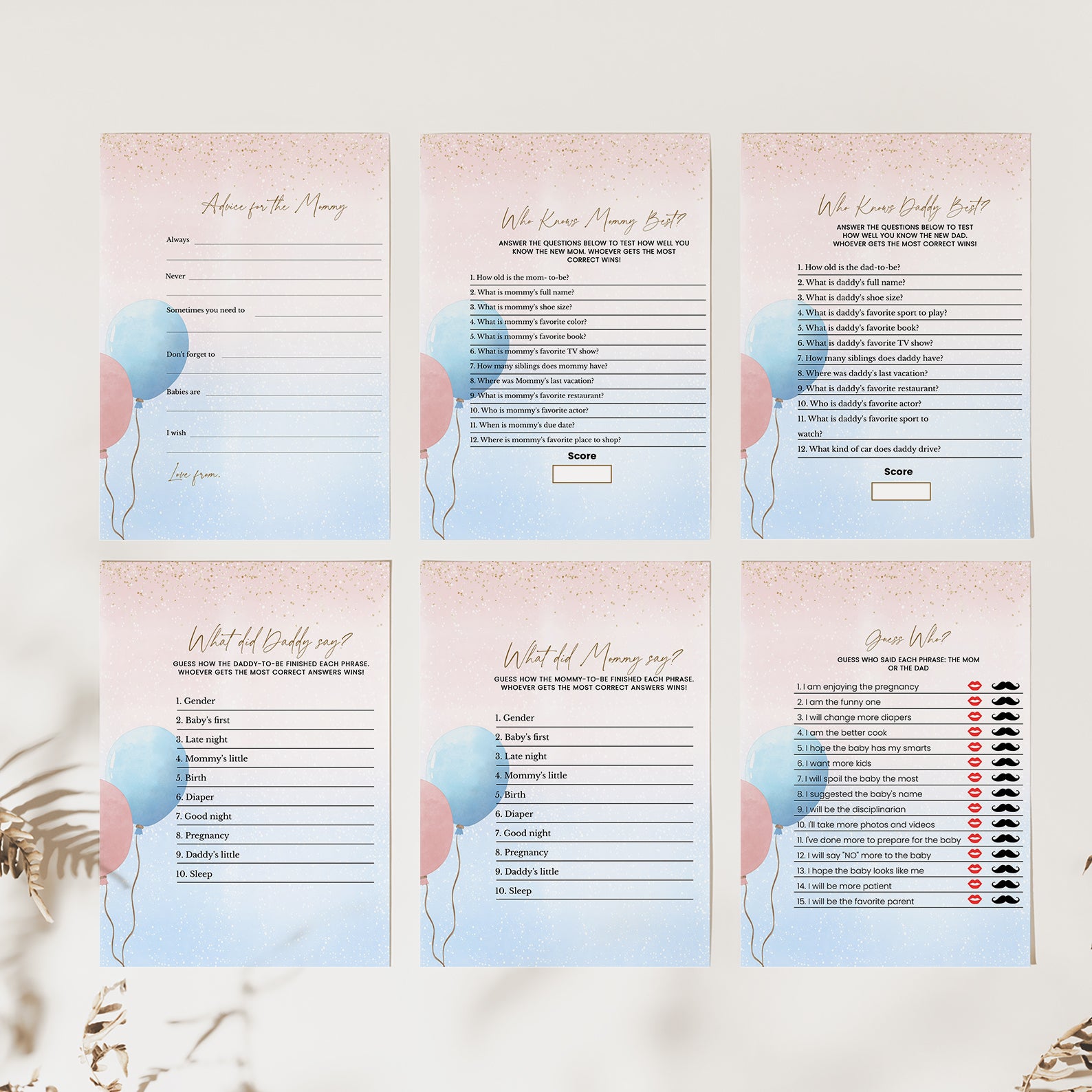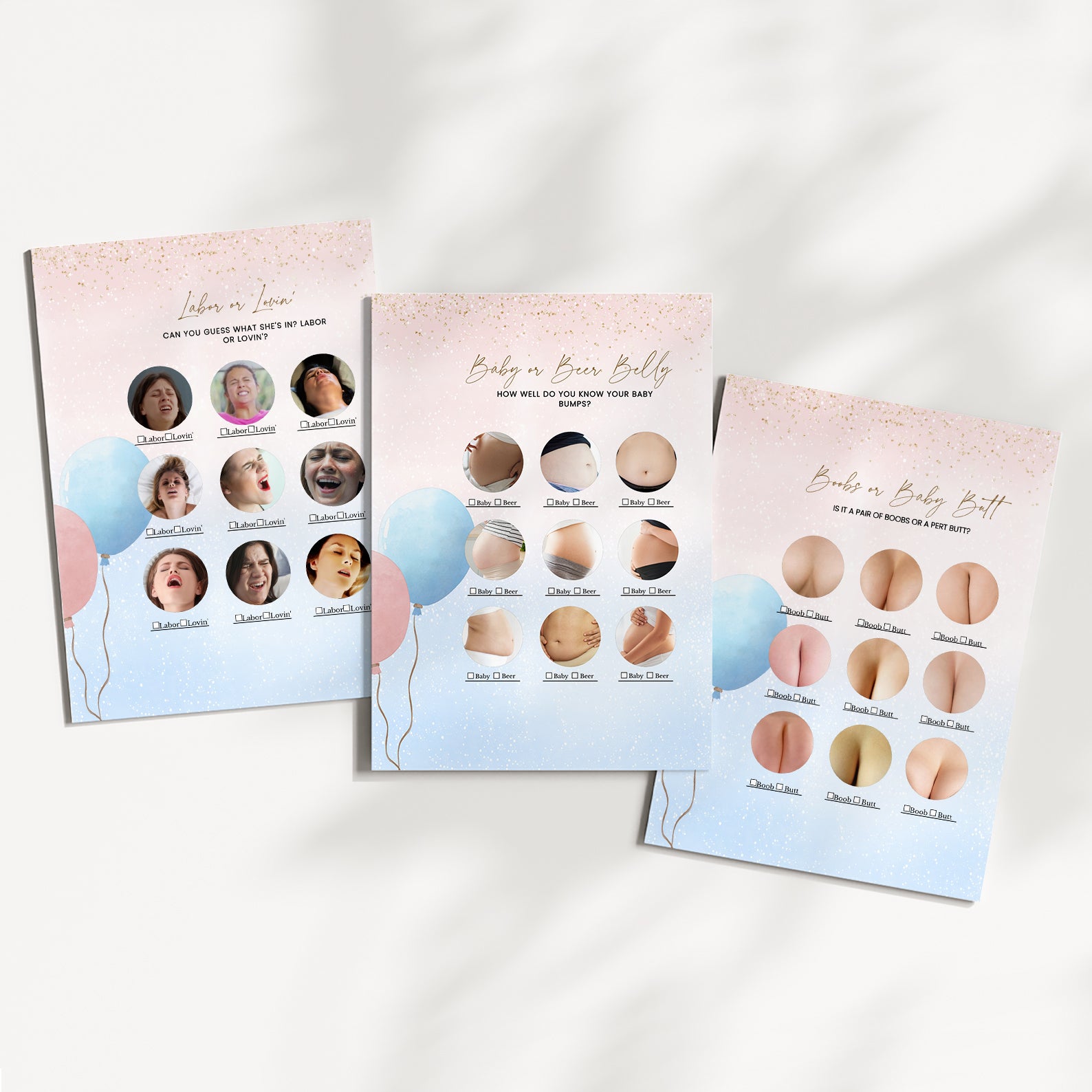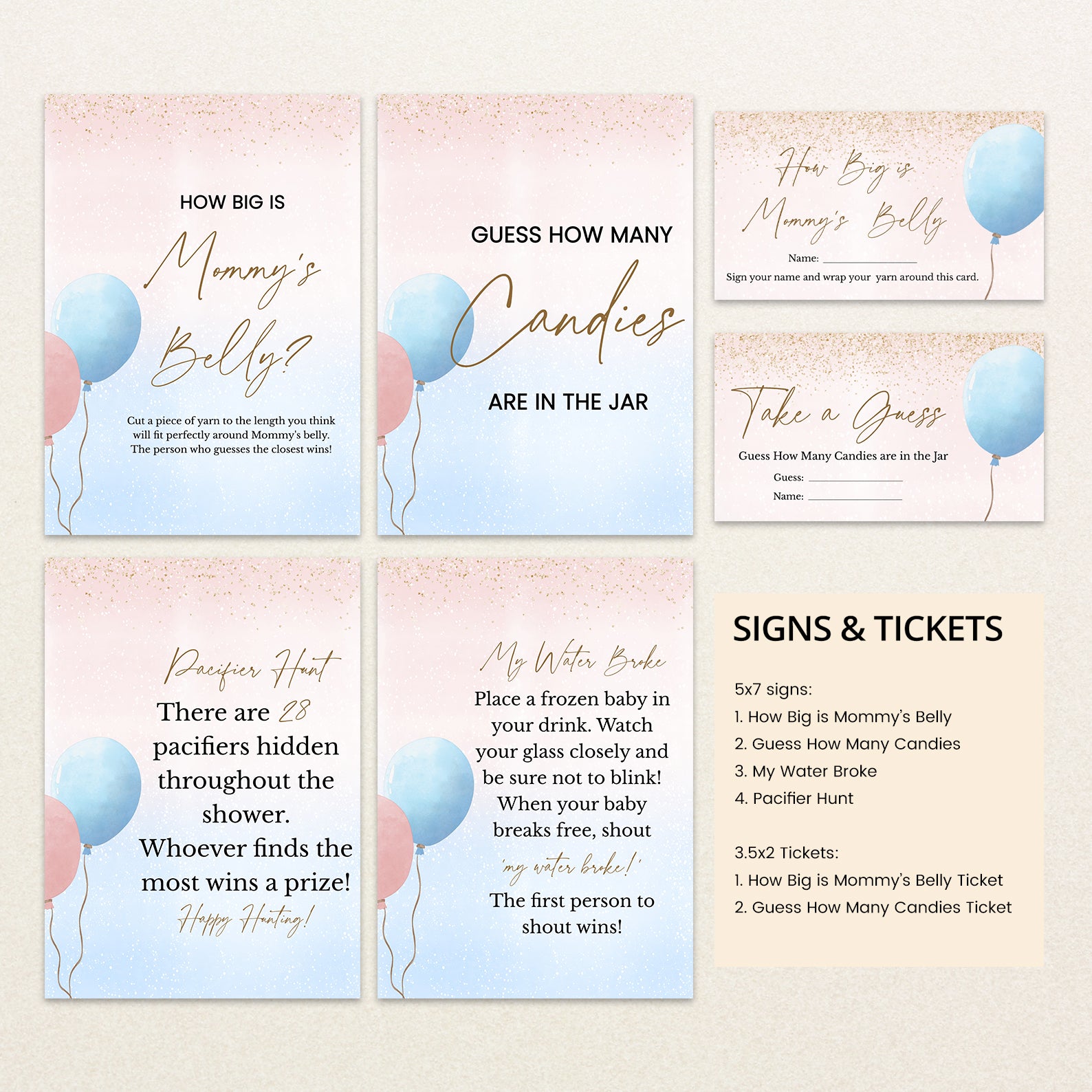 - Purchase this Evergreen Gender Reveal Game Bundle: Boy or Girl Balloon Theme template