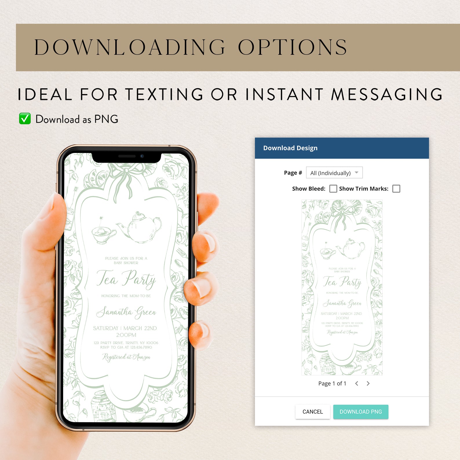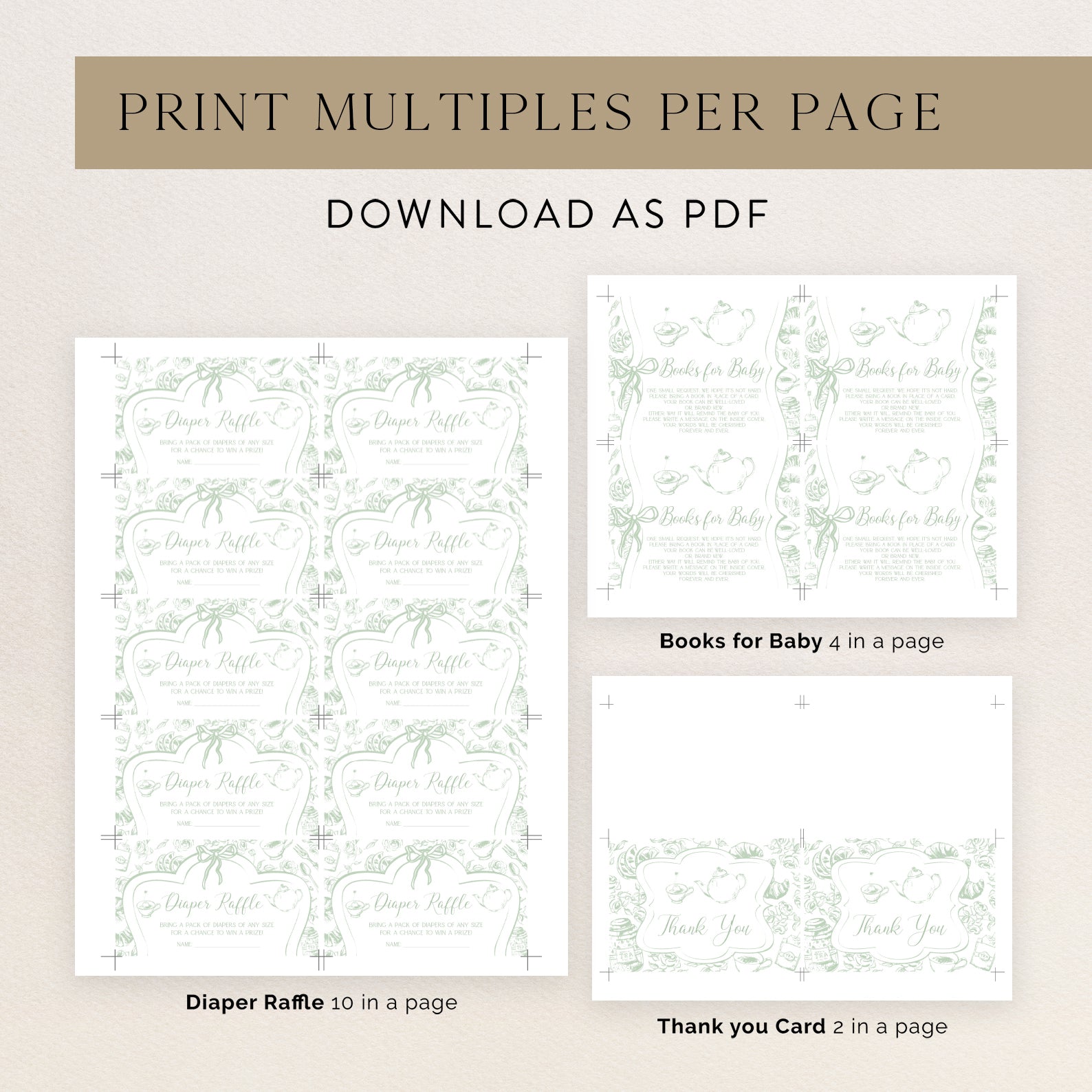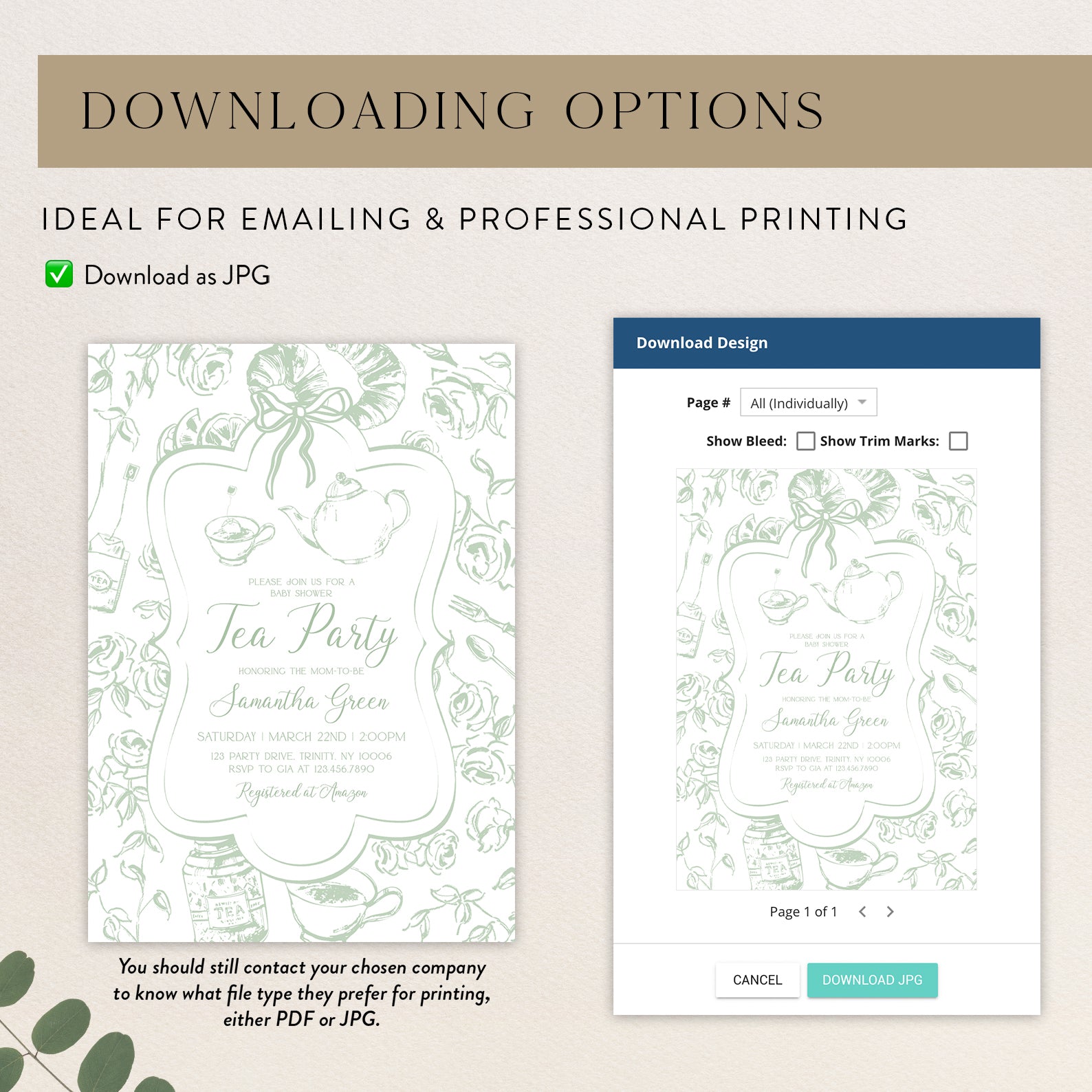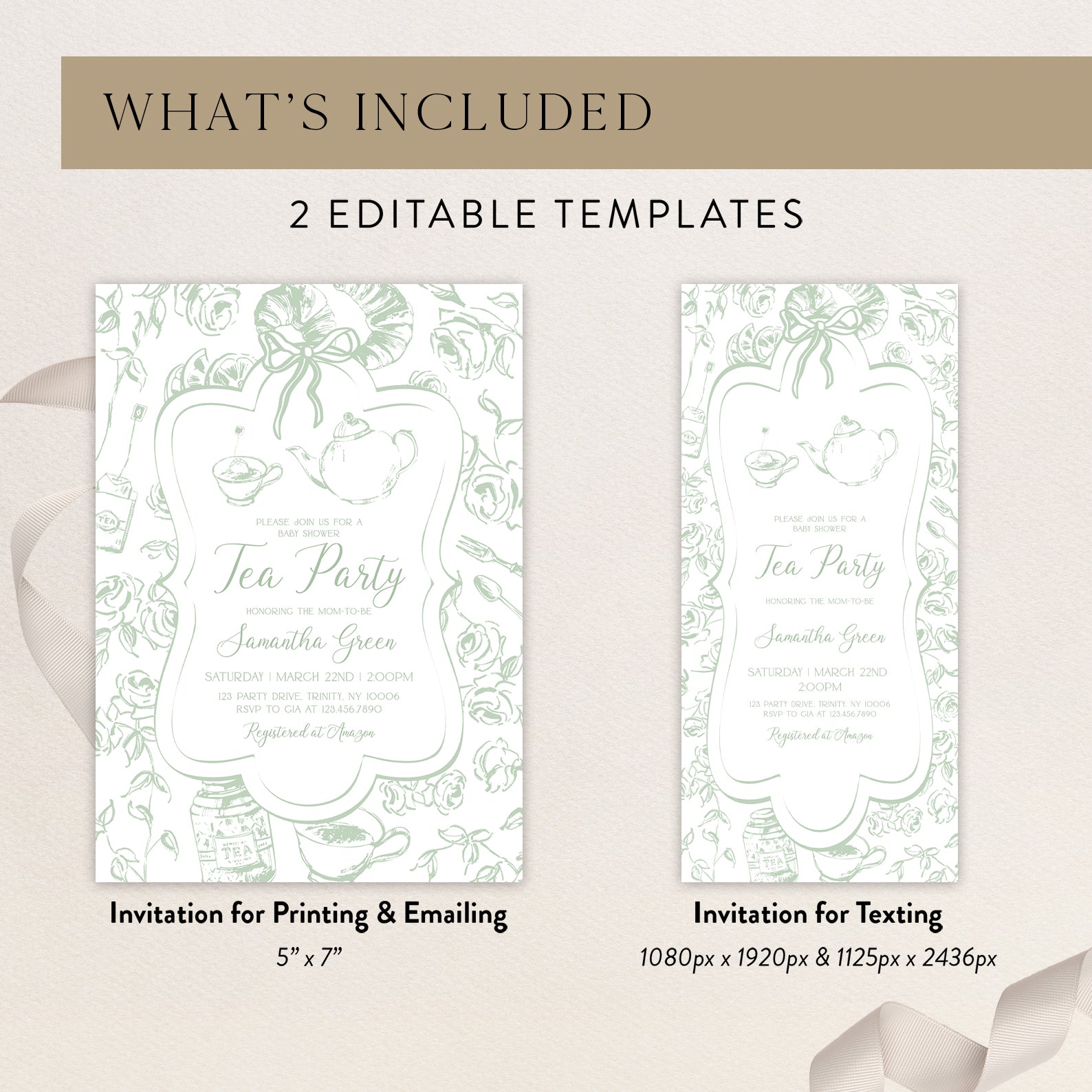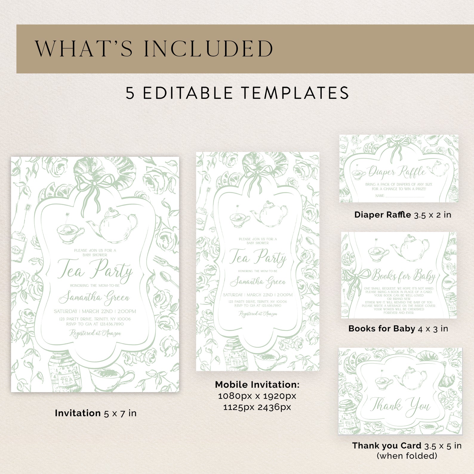 - Purchase this Green Tea Party Baby Shower Invitation Bundle with Floral Accents template