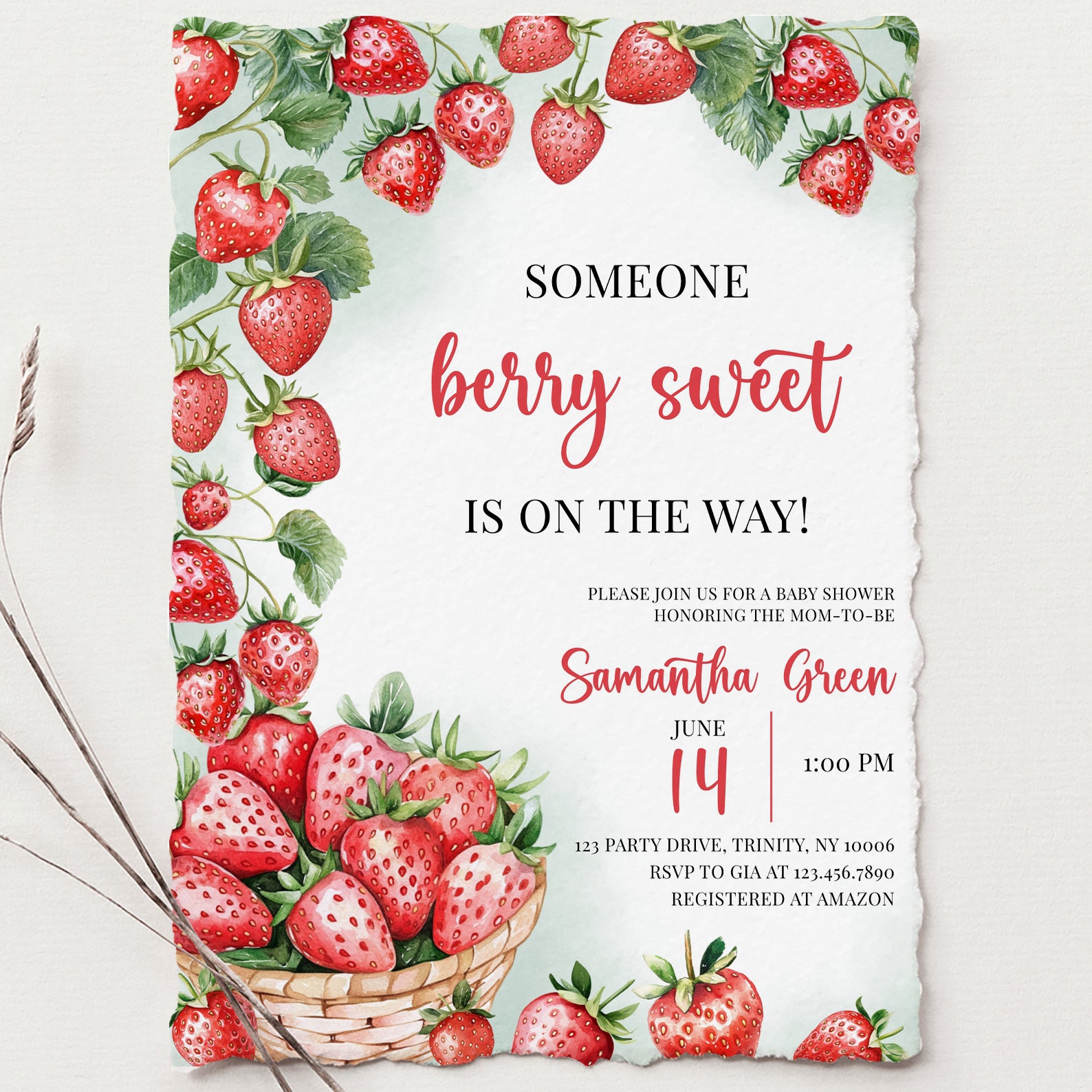 - Purchase this Berry Sweet Baby Shower Invite with Strawberry Vine Border template