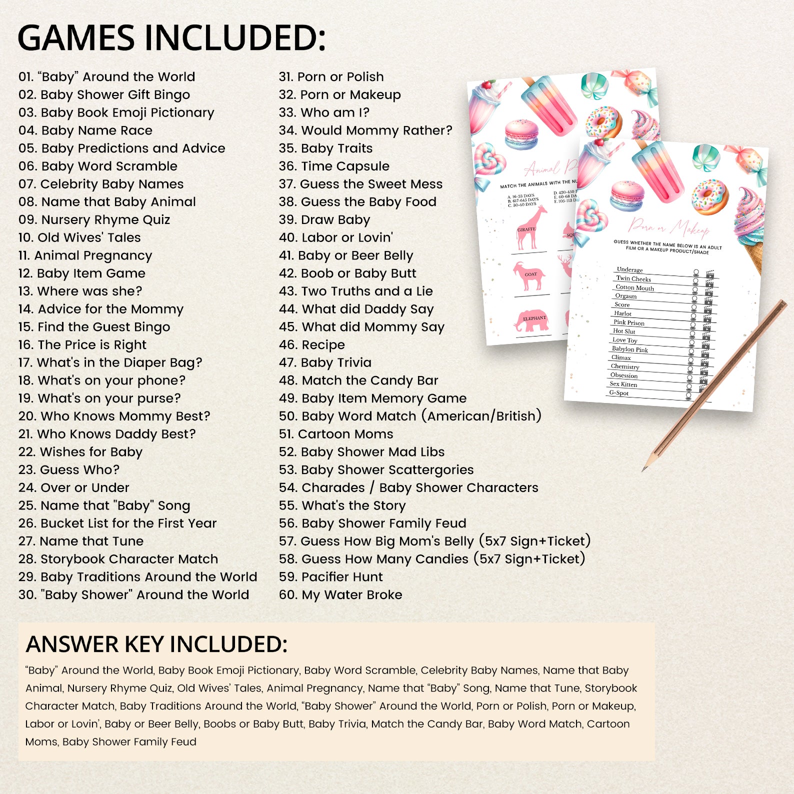 Little Sweet Baby Shower Digital Game Bundle with Sweet Treats