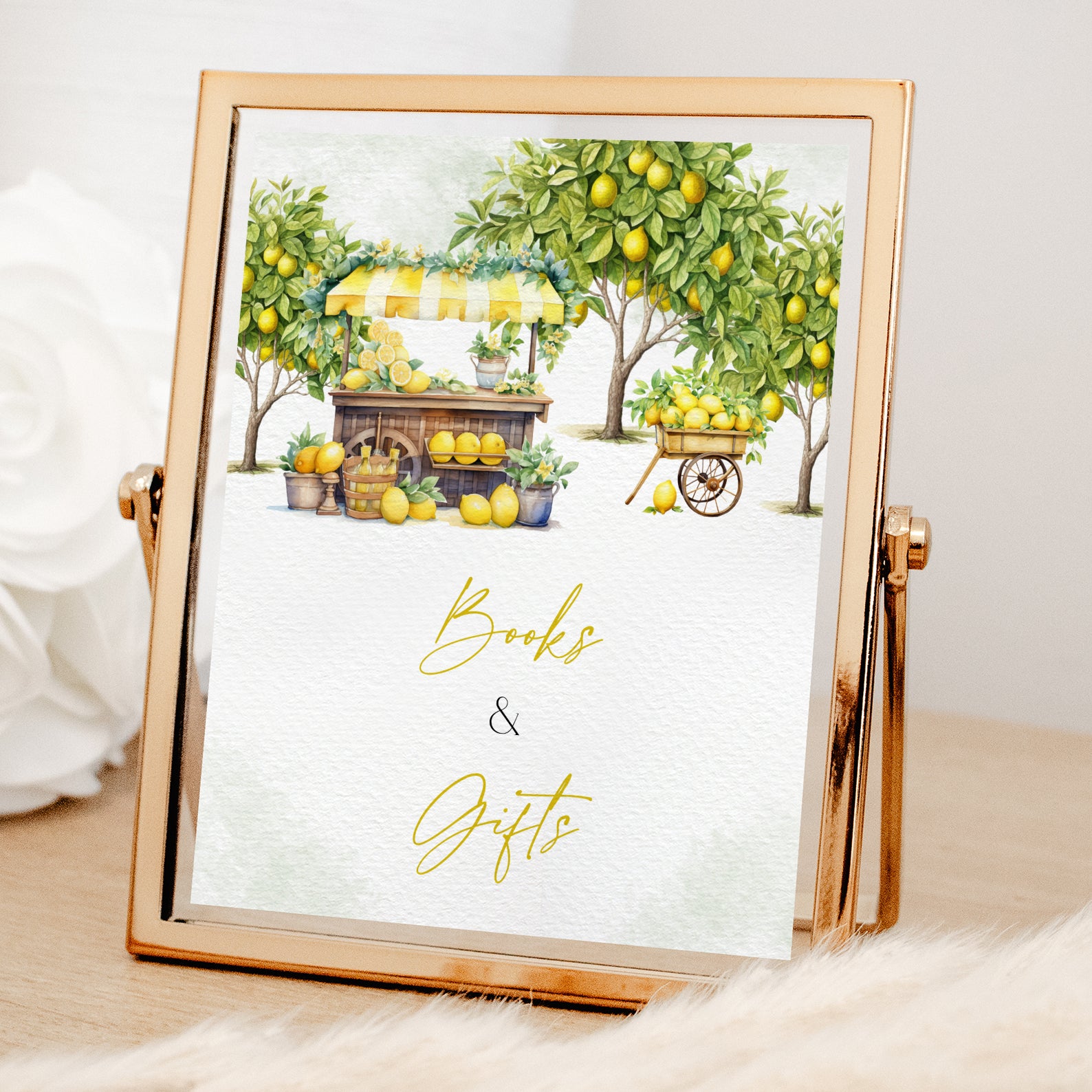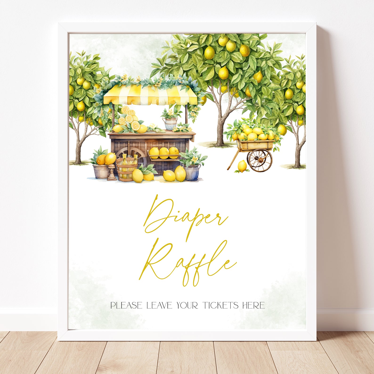 Complete your summer baby shower decor with this set of ten editable table signs, designed to complement your fresh and cheerful theme! Featuring whimsical lemon trees, a charming lemon stand, and a rustic wooden cart overflowing with fresh lemons, these signs bring a bright and inviting touch to your celebration. The set includes Balloons, Drinks, Envelope Station, Favors, Food, Late Night Diapers, Lemonade Bar, Gifts, Mom’s Advice, and Welcome, ensuring a beautifully coordinated event filled with sunny charm!