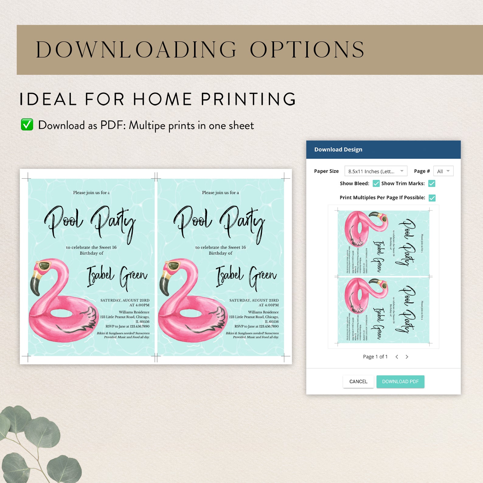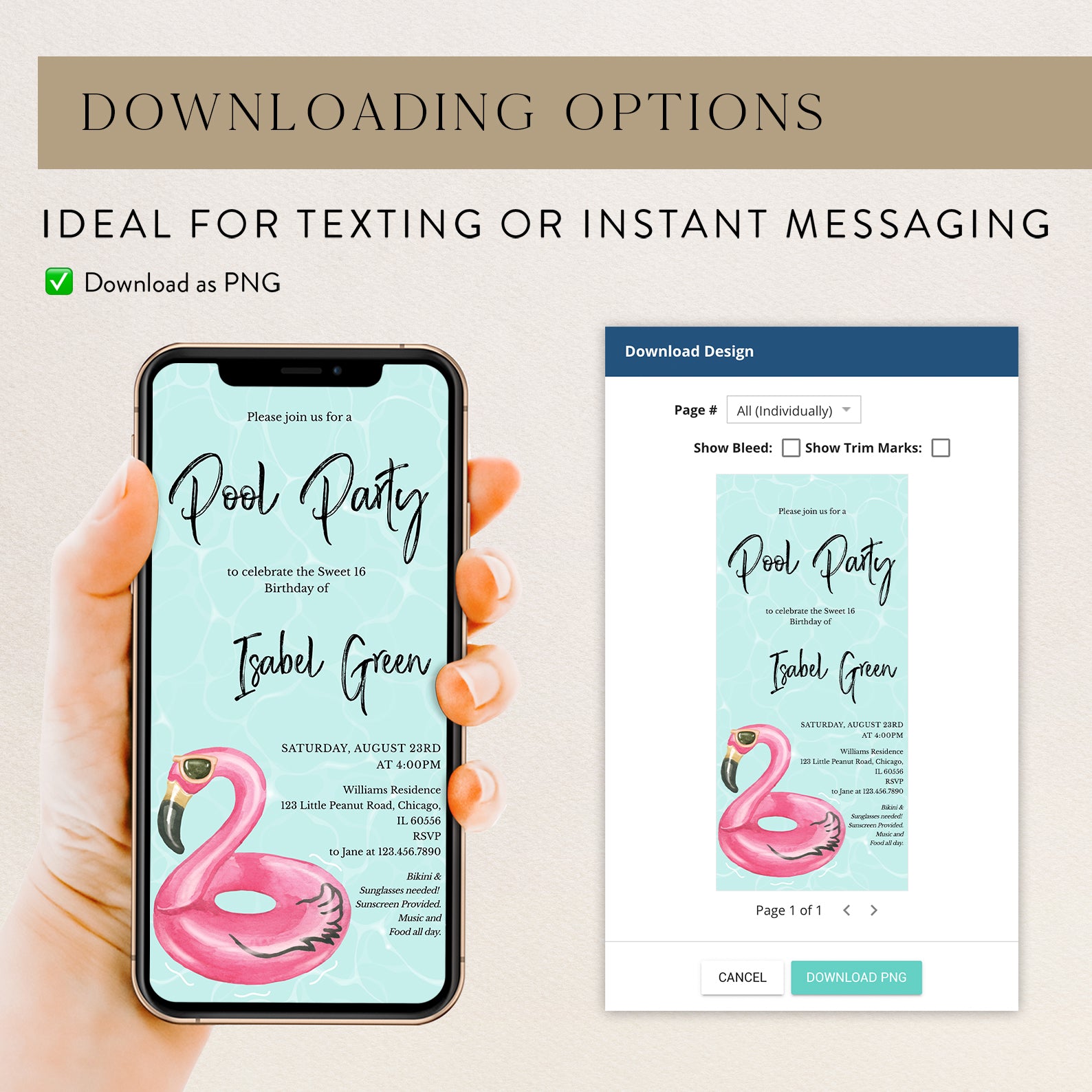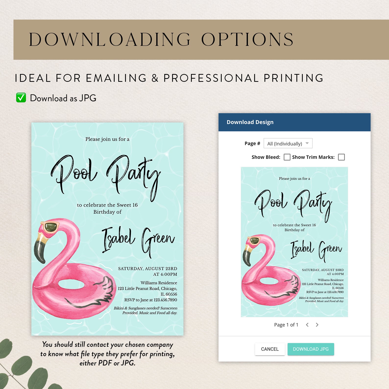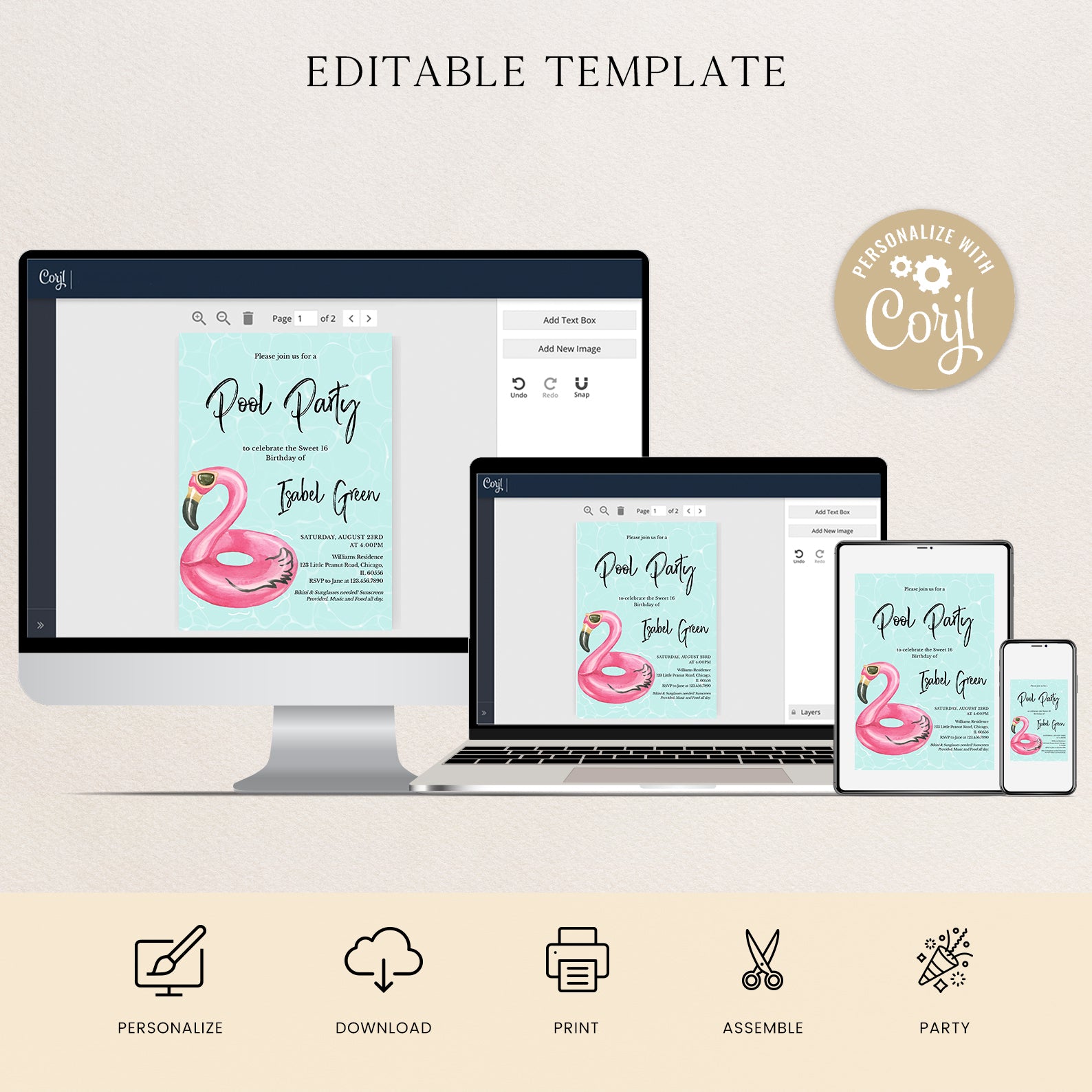 - Purchase this Pool Party Birthday Digital Invitation with Pink Flamingo Float template