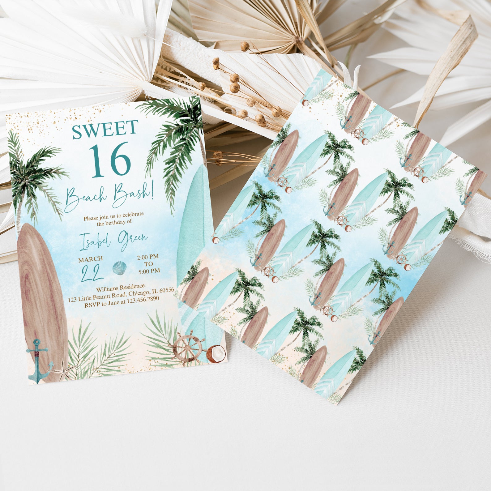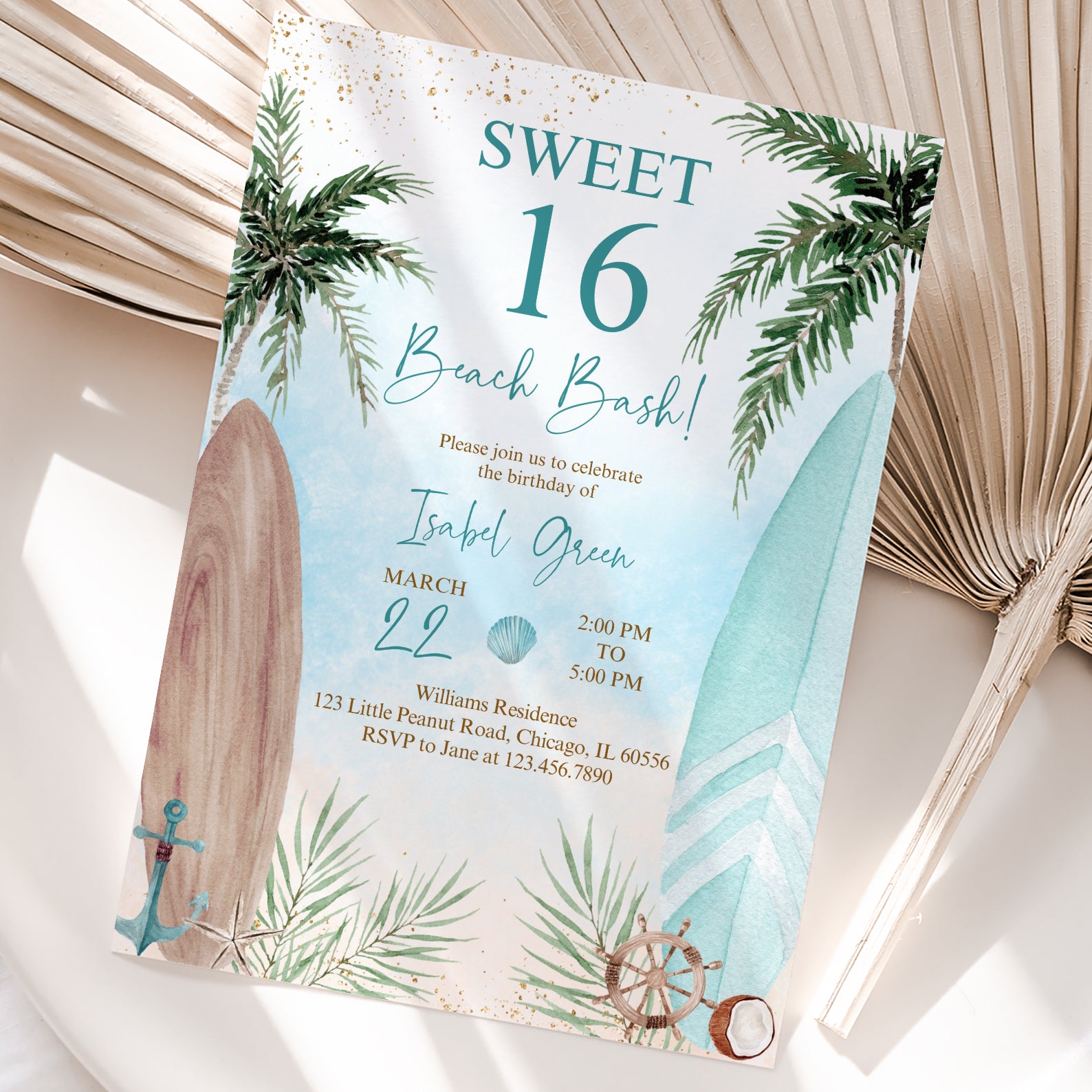 Sweet 16 Beach Bash Invitation: Tropical Surf Party Theme