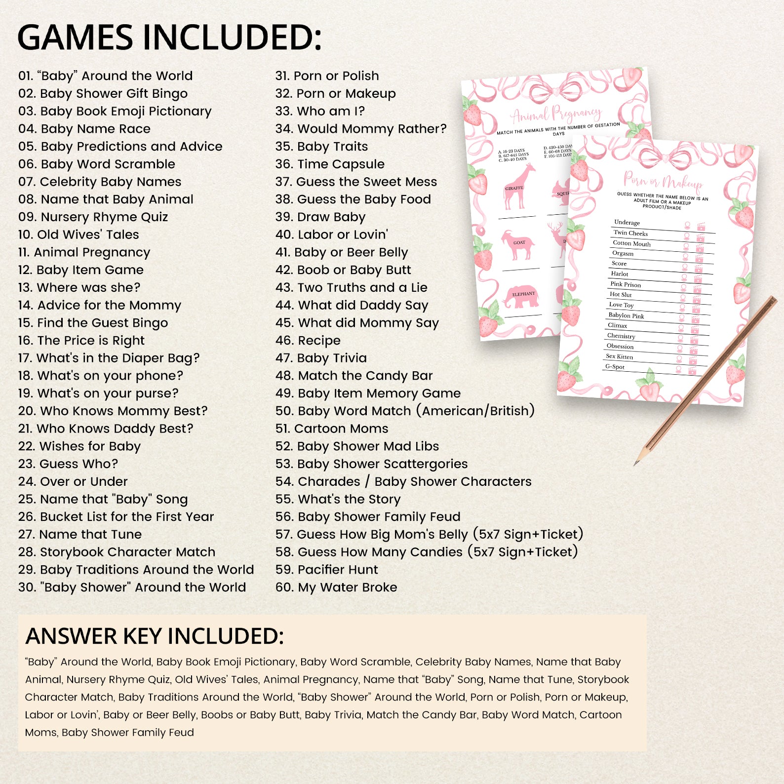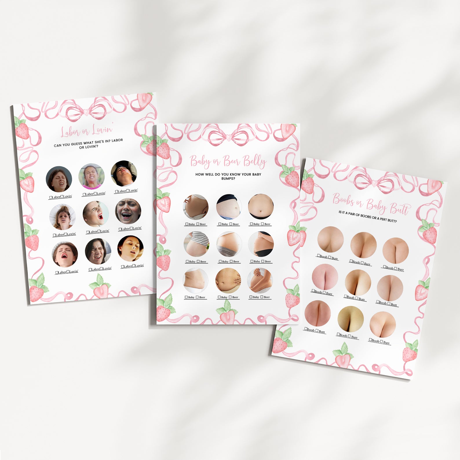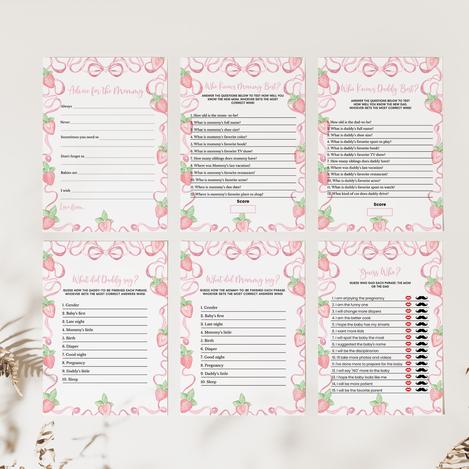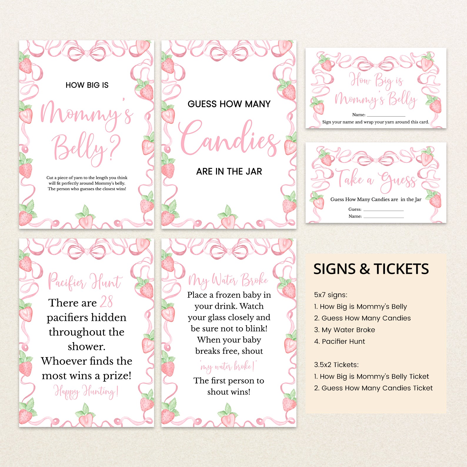 - Purchase this Berry Sweet Baby Shower Game Bundle with Pink Berries & Ribbons template