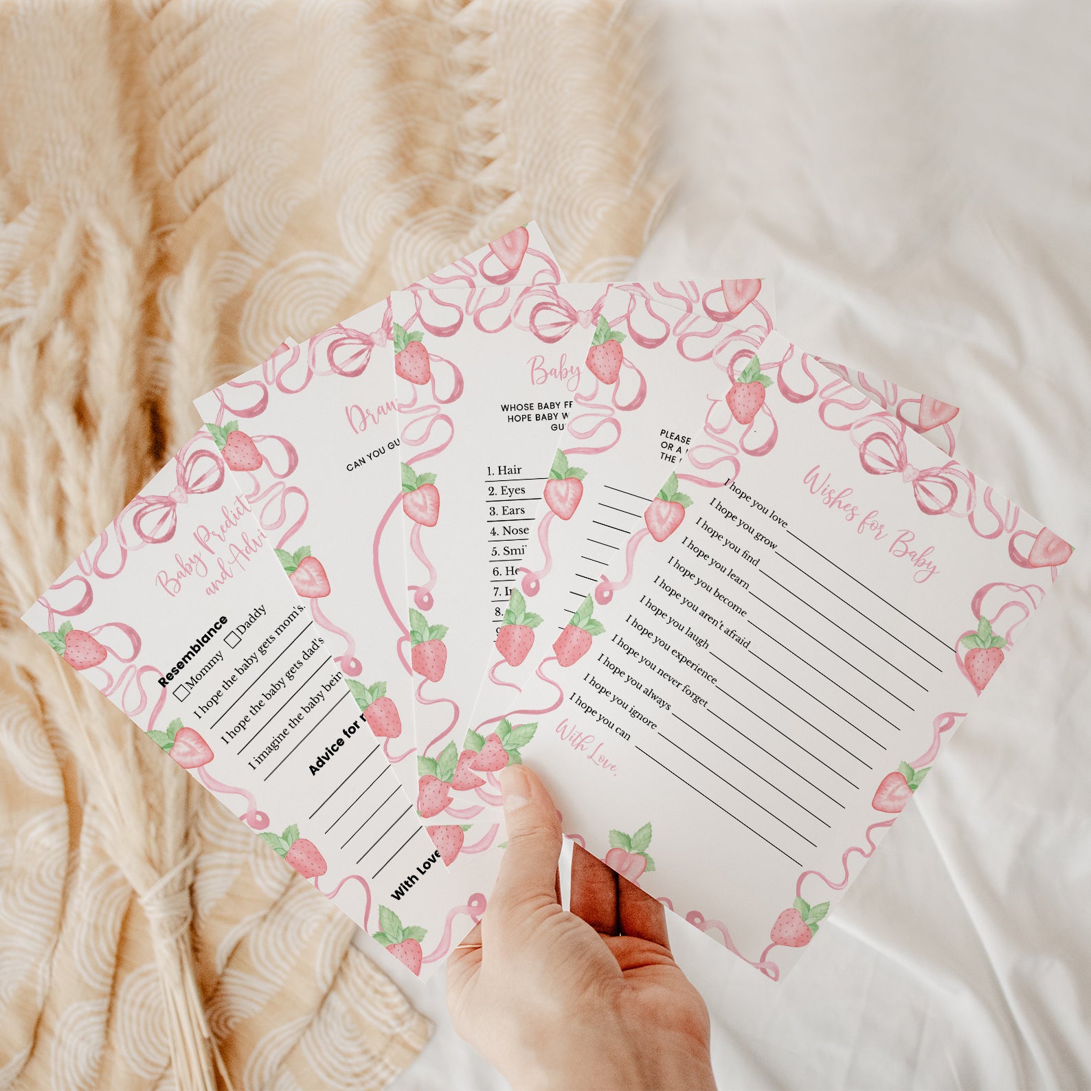 Berry Sweet Baby Shower Game Bundle with Pink Berries & Ribbons