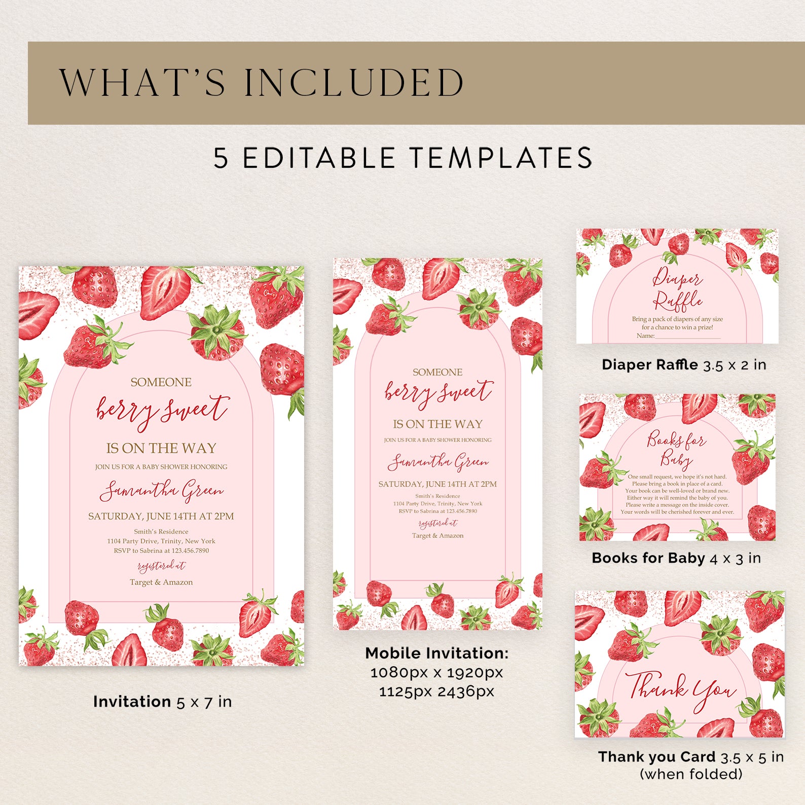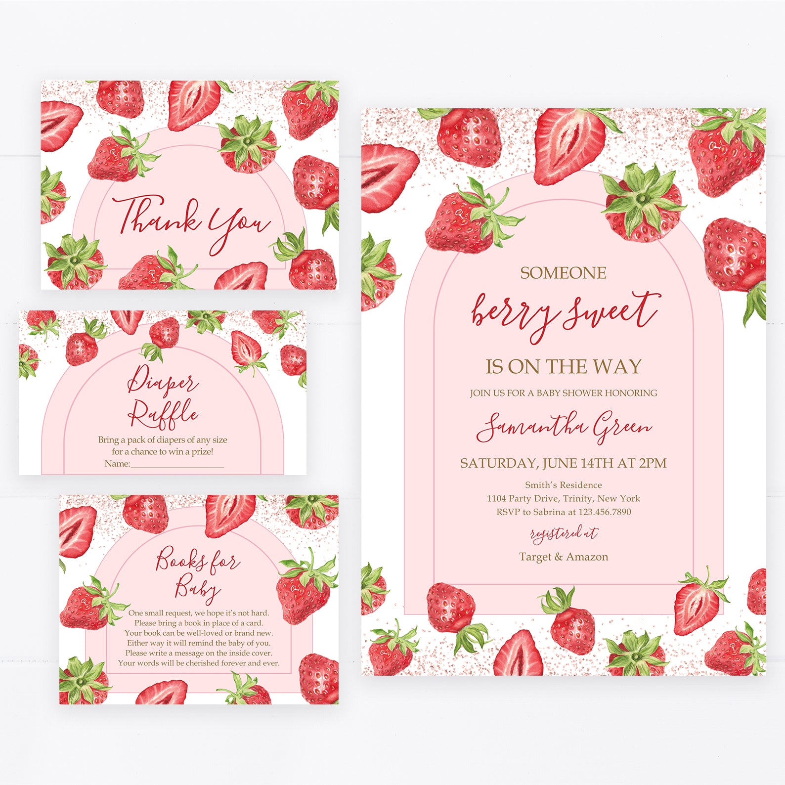 - Purchase this Berry Sweet Baby Shower Invite Bundle: Fresh Strawberries & Red Accents template