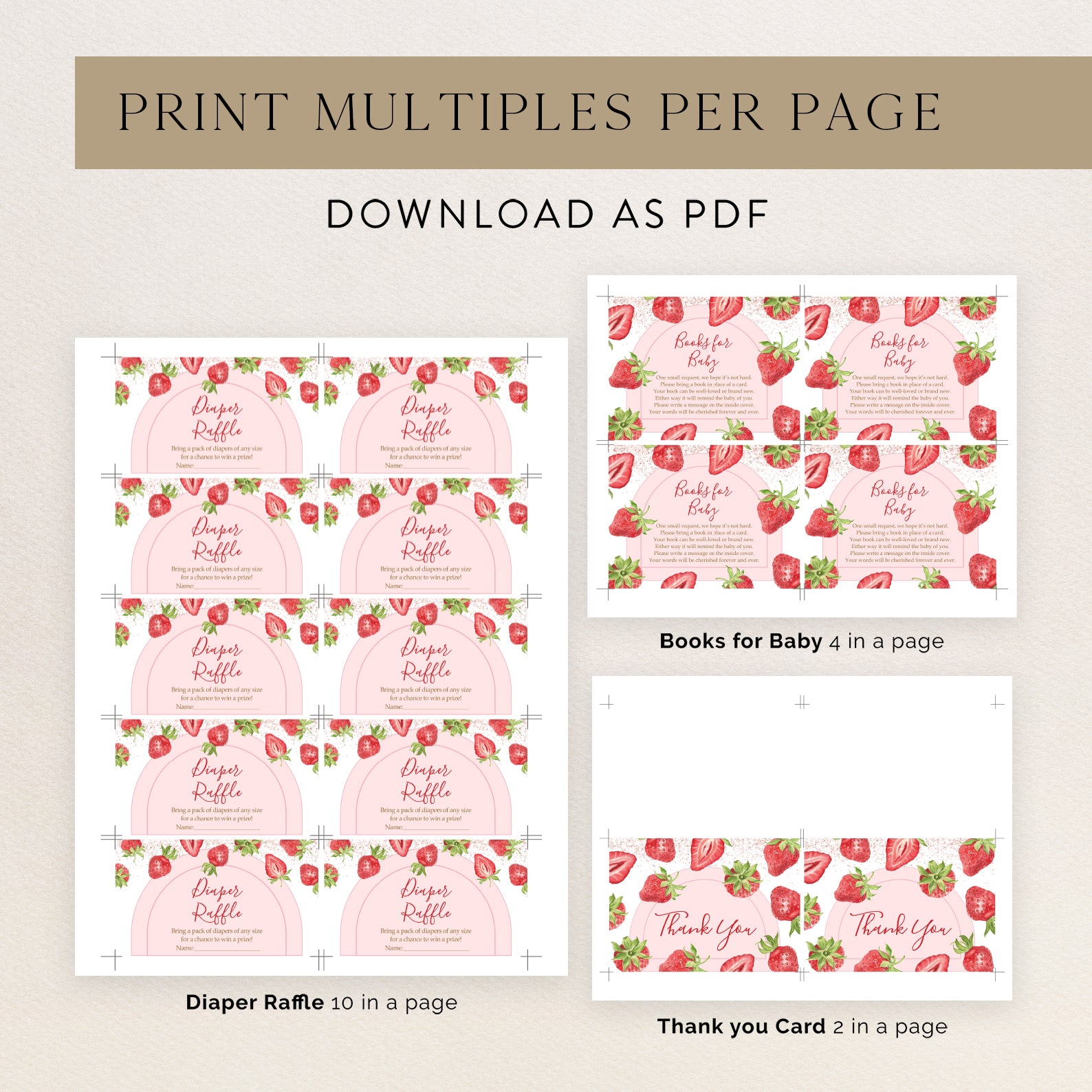 Celebrate your little one with our "Someone Berry Sweet is on the Way" baby shower bundle! This charming set includes an invitation, mobile invite, diaper raffle, books for baby, and thank you card. Featuring fresh strawberries, red accents, and a pink arch, it’s the perfect way to invite guests to your sweet summer celebration!