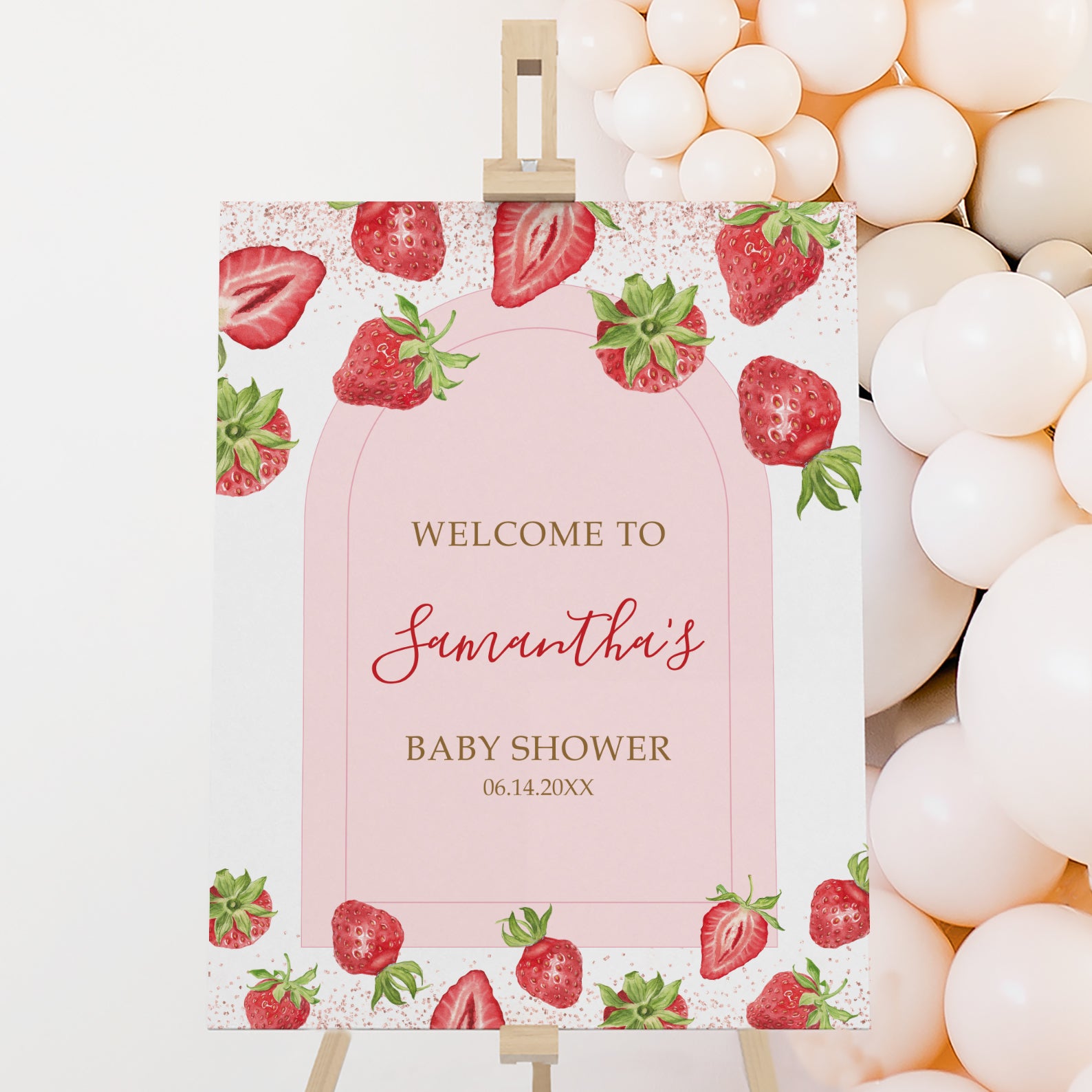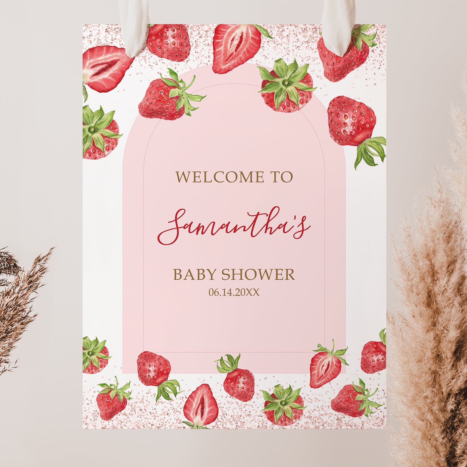 - Purchase this Berry Sweet Baby Shower Welcome Sign: Fresh Strawberries & Red Accents template