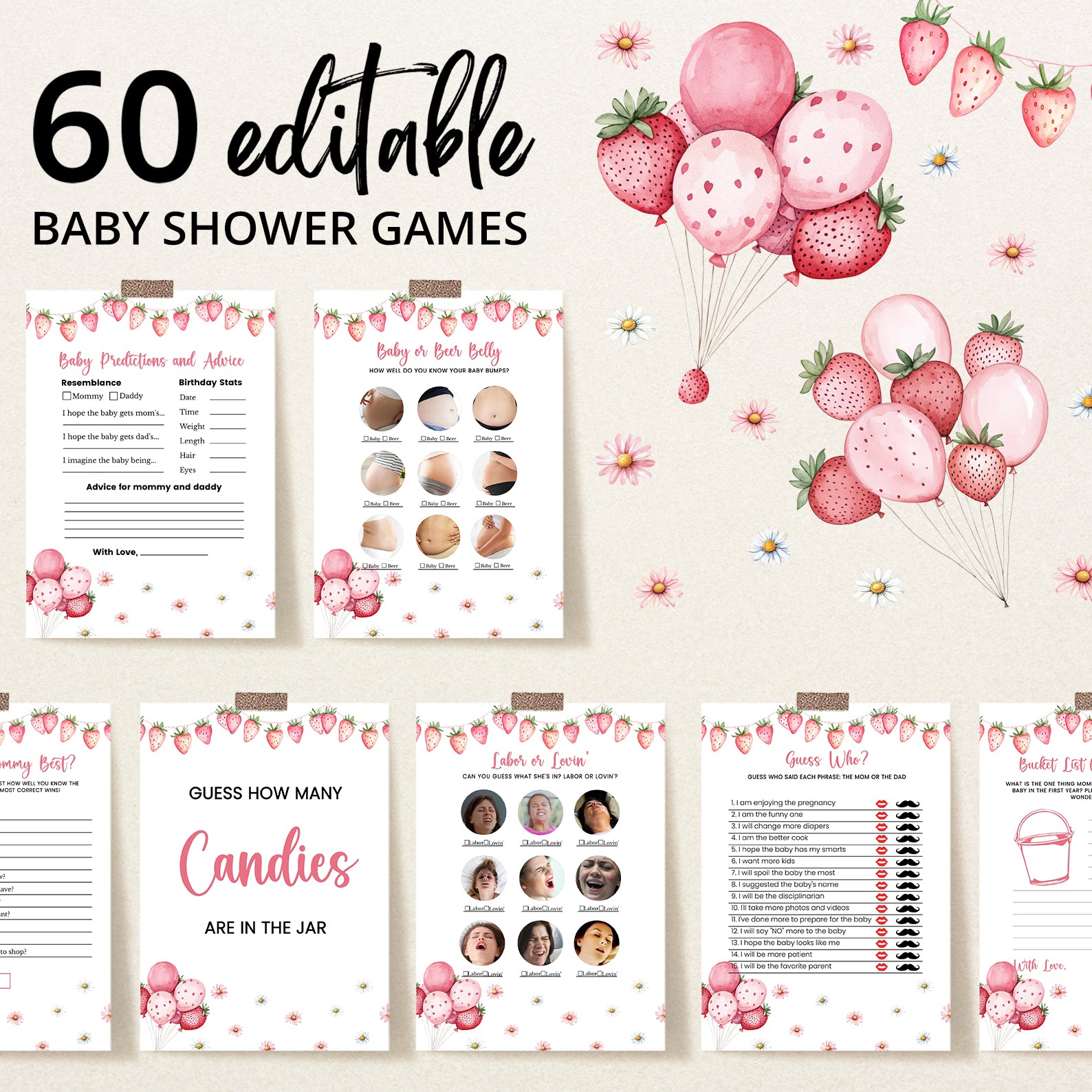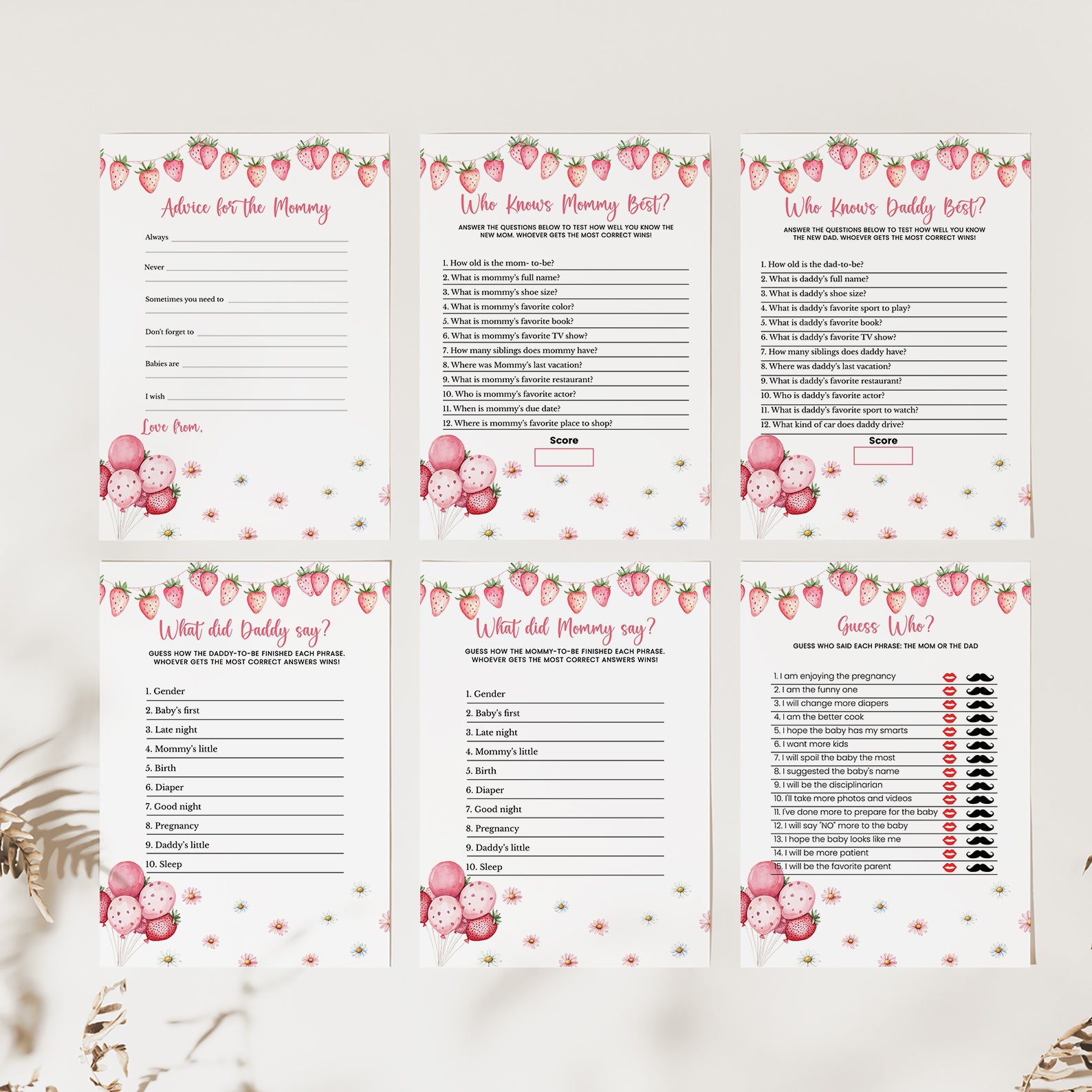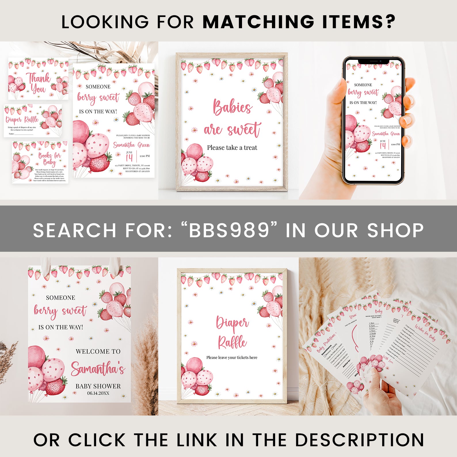 - Purchase this Berry Sweet Pink Baby Shower Game Bundle with Balloons & Daisies template