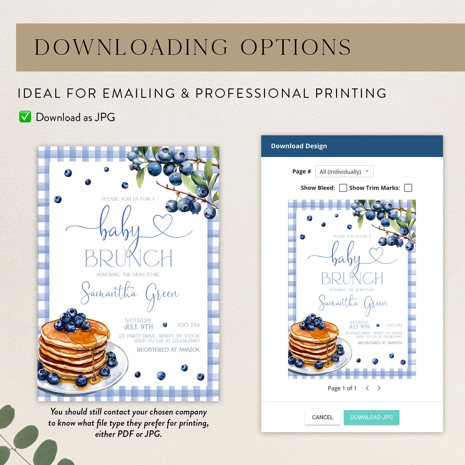 - Purchase this Blueberry Baby Brunch Invite: Summer Baby Shower template