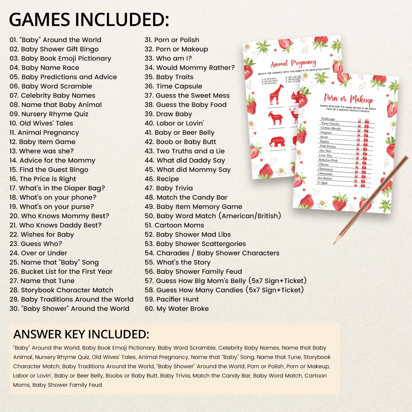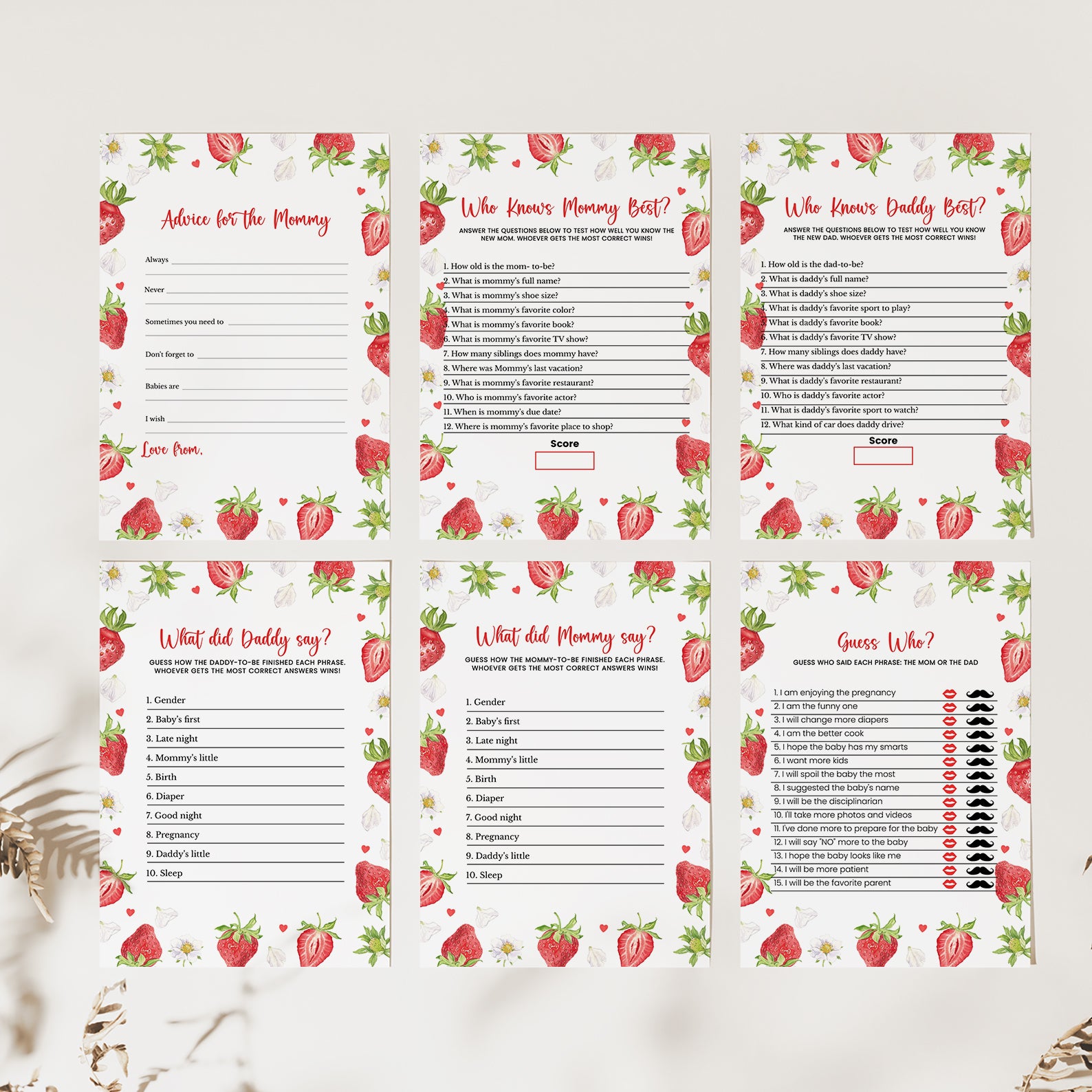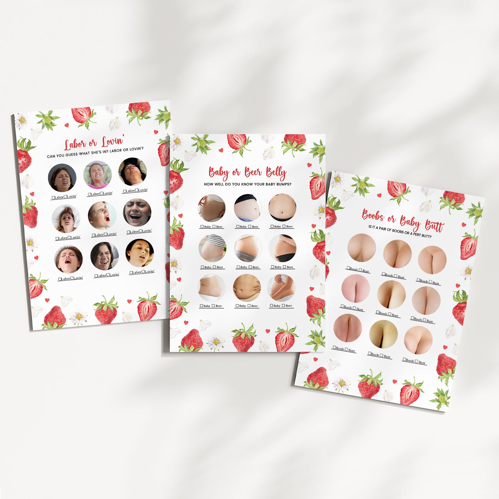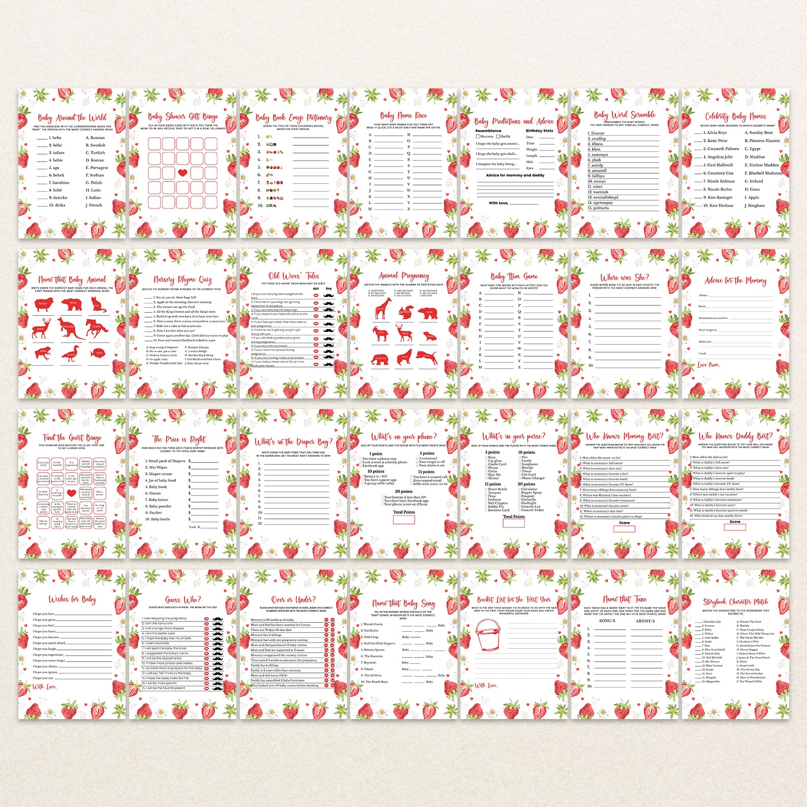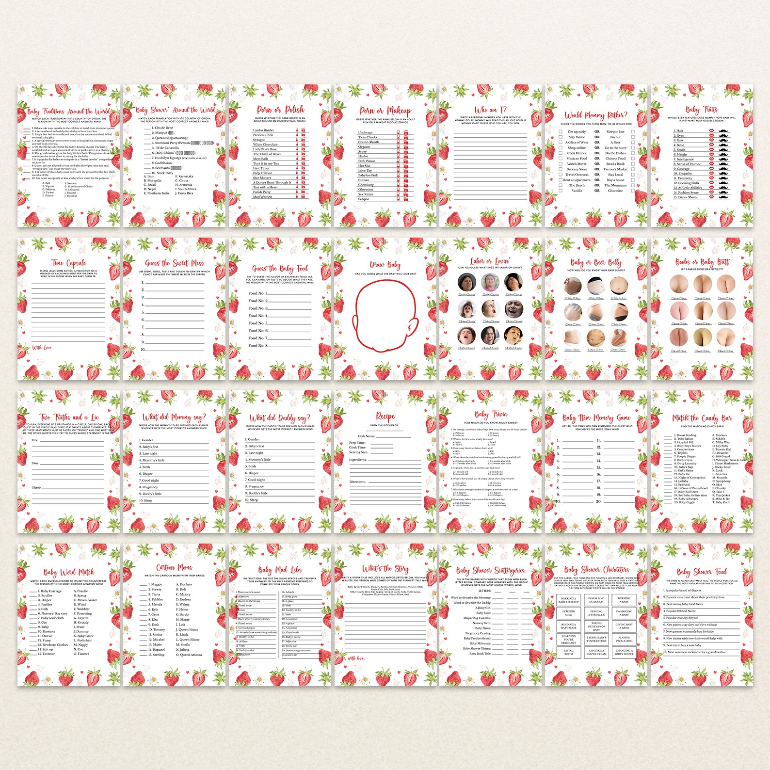 Strawberry Baby Shower Digital Game Bundle: A Berry Sweet Day