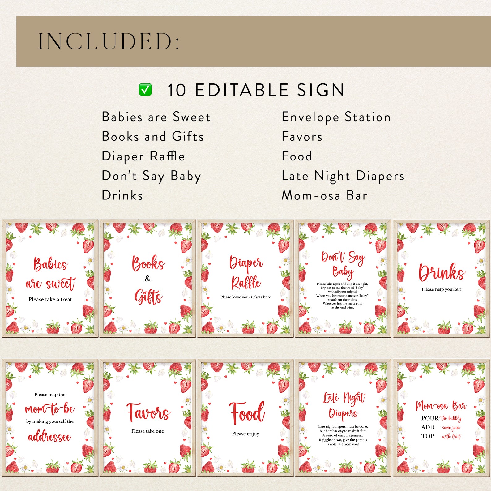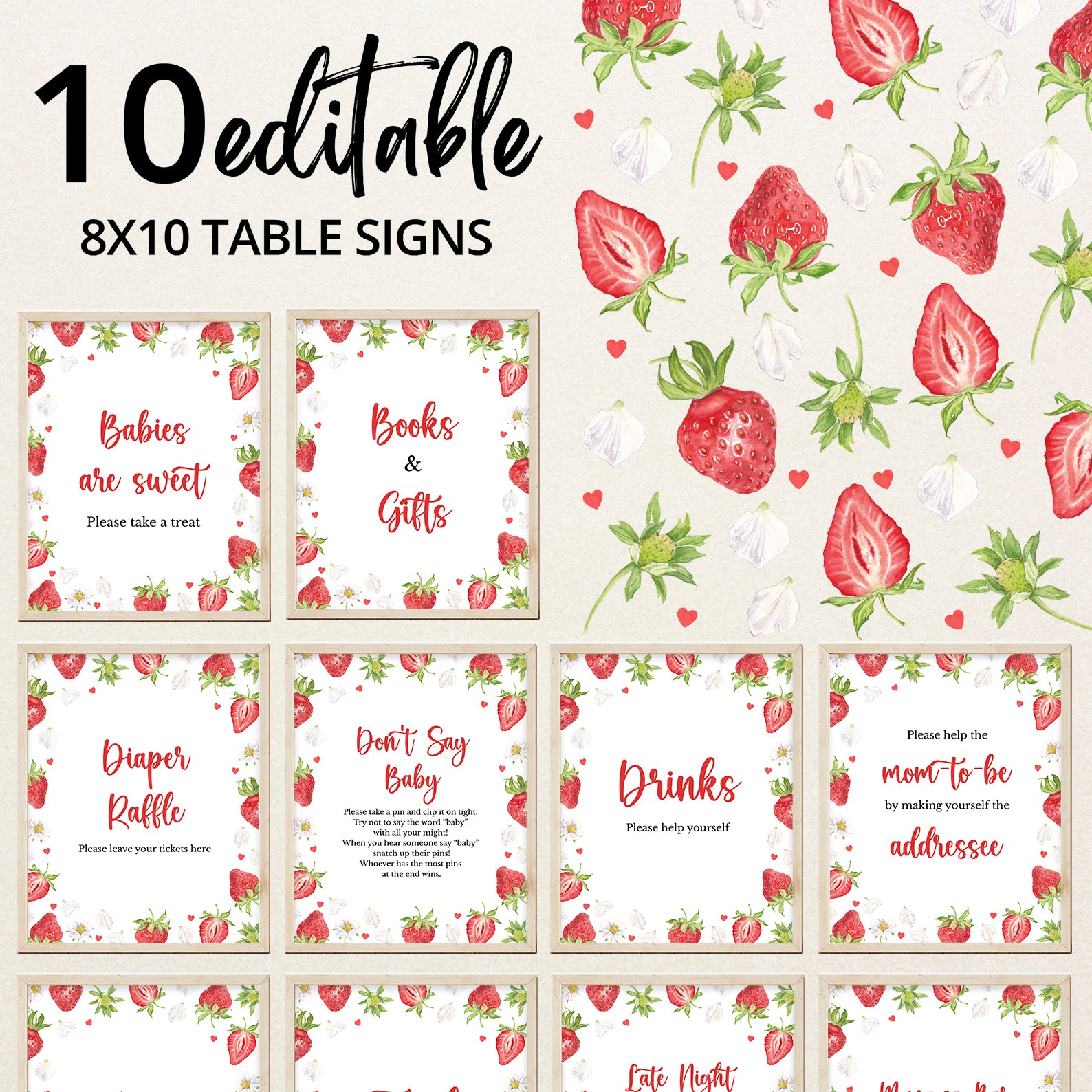 - Purchase this Strawberry Baby Shower Digital Table Sign: A Berry Sweet Day template