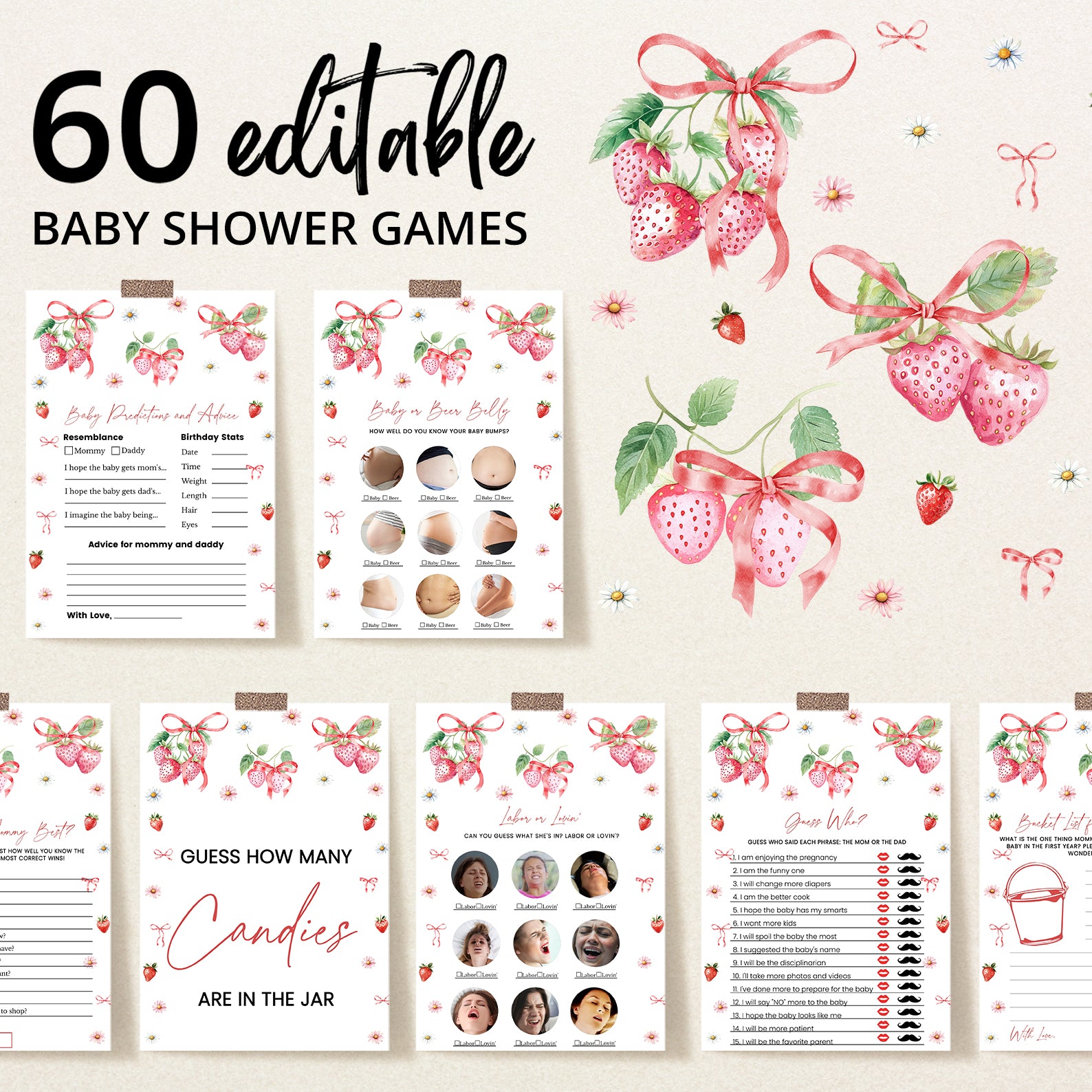 Make your baby shower even sweeter with our 60 editable baby shower games to complement your "Someone Berry Sweet is on the Way" theme! Designed with the same vibrant strawberries and playful daisies that adorn your invitation, this bundle brings an extra layer of fun to your celebration. Fully customizable, these games are perfect for keeping your guests entertained and making lasting memories. Whether you're hosting a small gathering or a large bash, this game collection adds a sweet touch to your special day!