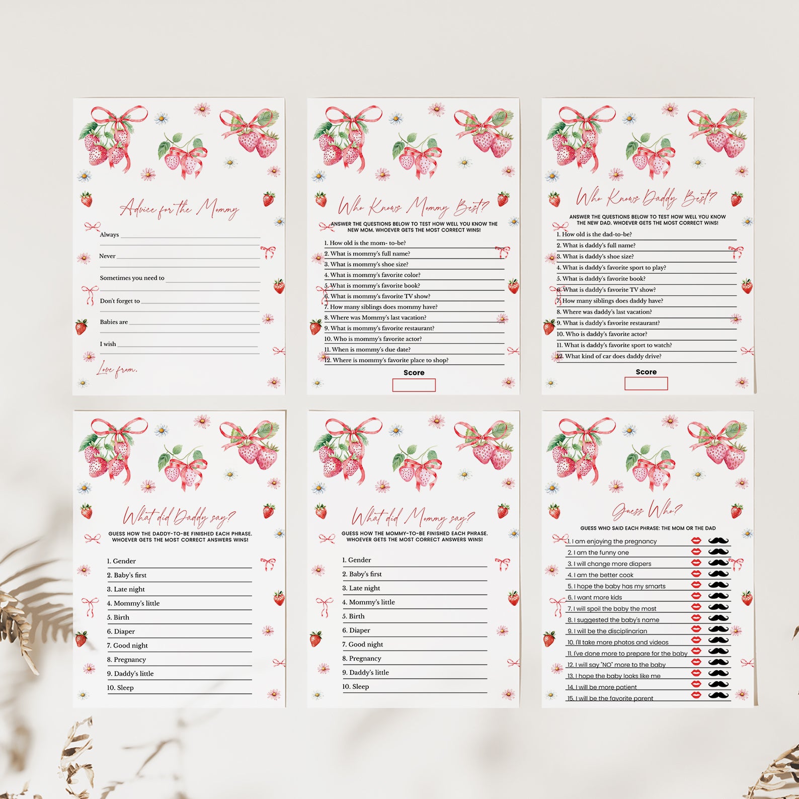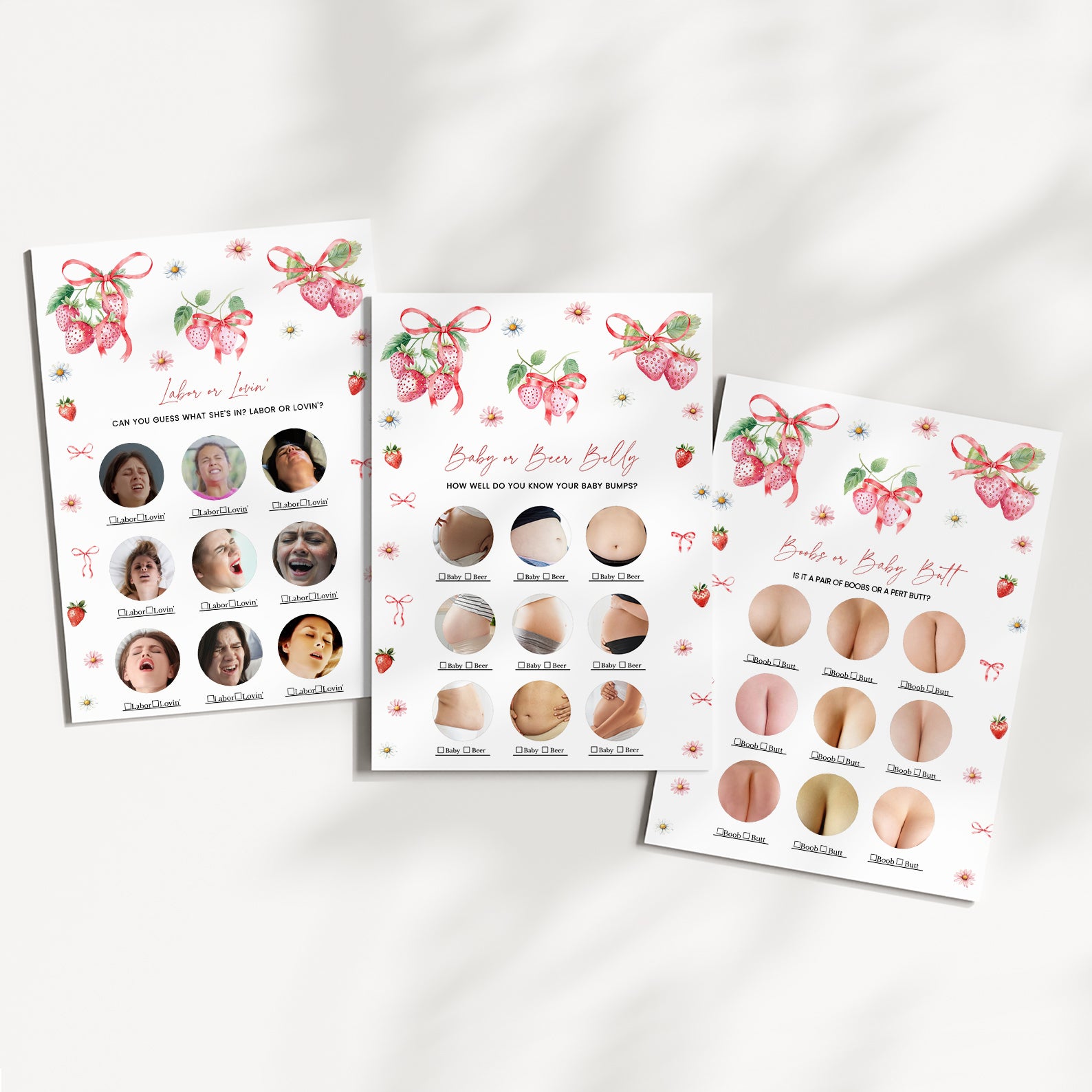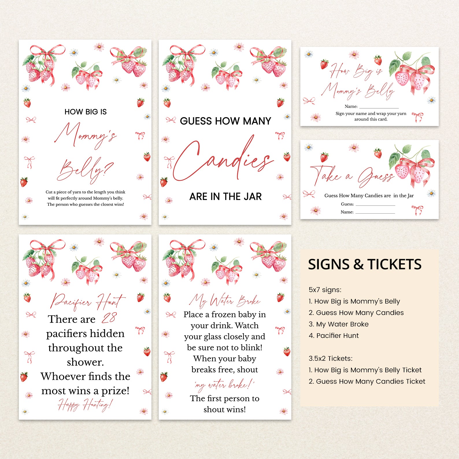Summer Baby Shower Game Bundle: Strawberries, Ribbon & Daisies