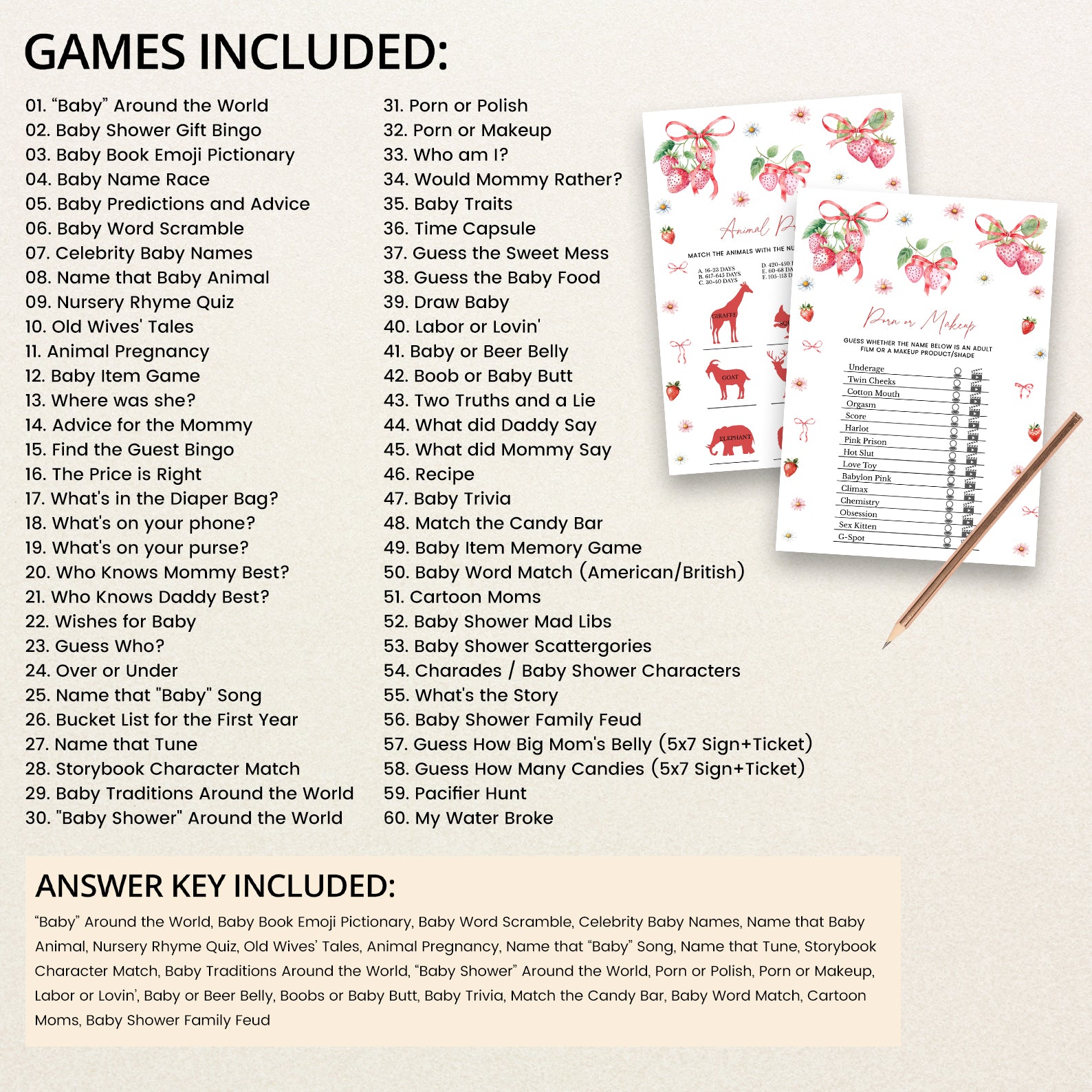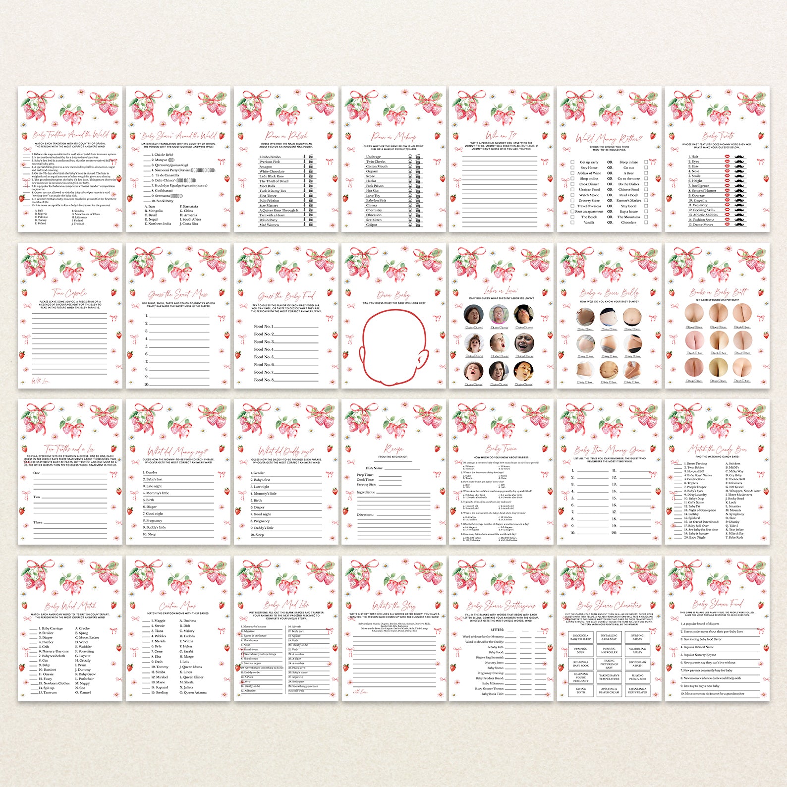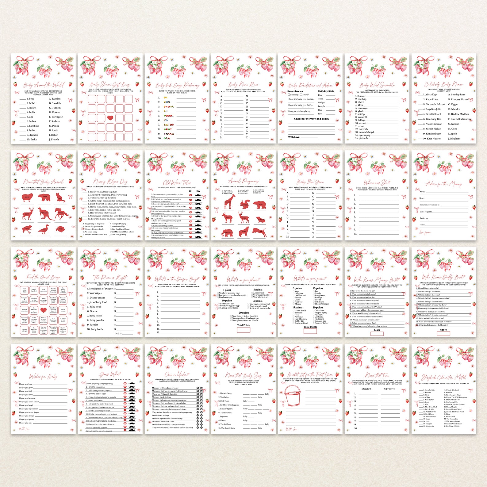 Summer Baby Shower Game Bundle: Strawberries, Ribbon & Daisies