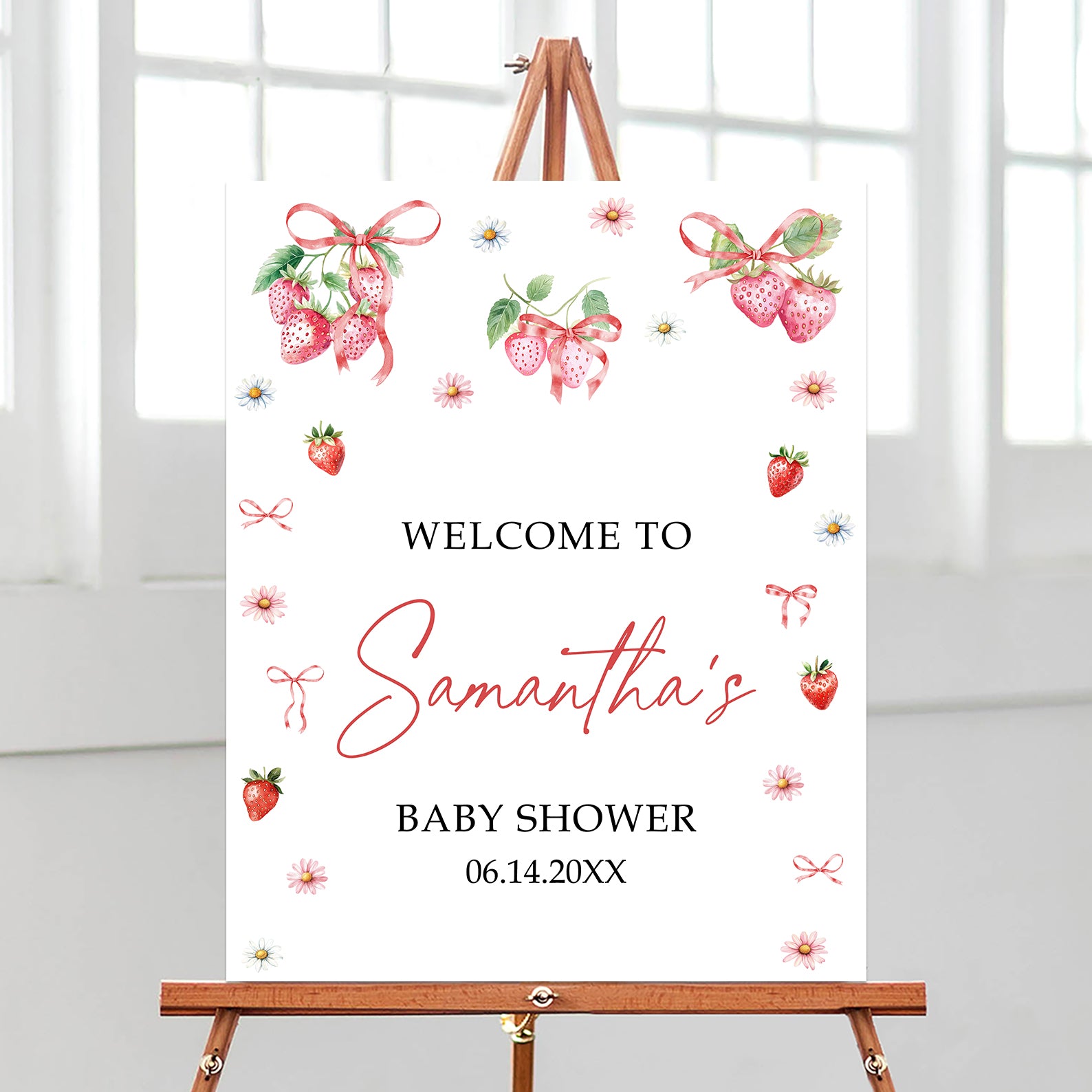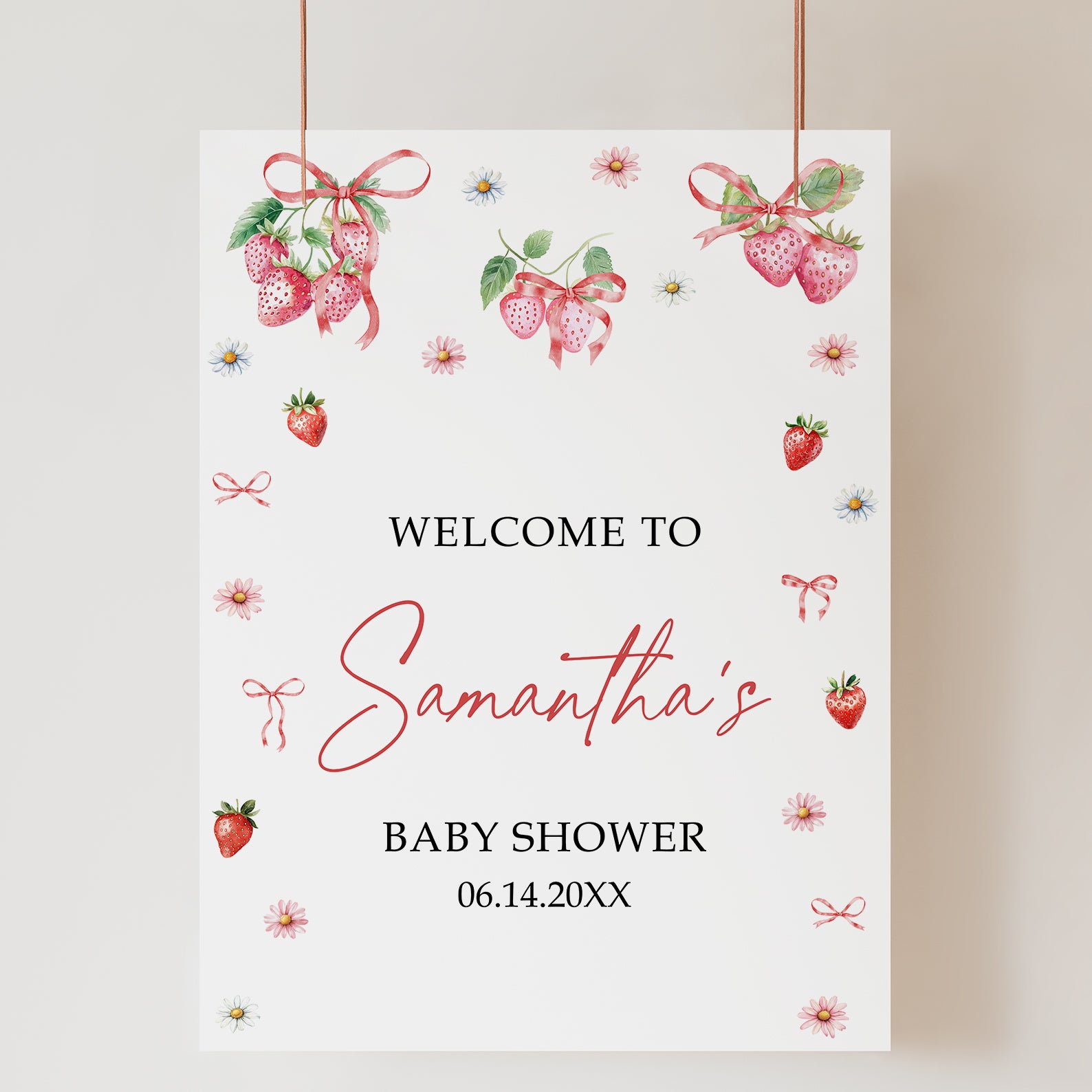 - Purchase this Summer Baby Shower Welcome Sign: Strawberries, Ribbon & Daisies template