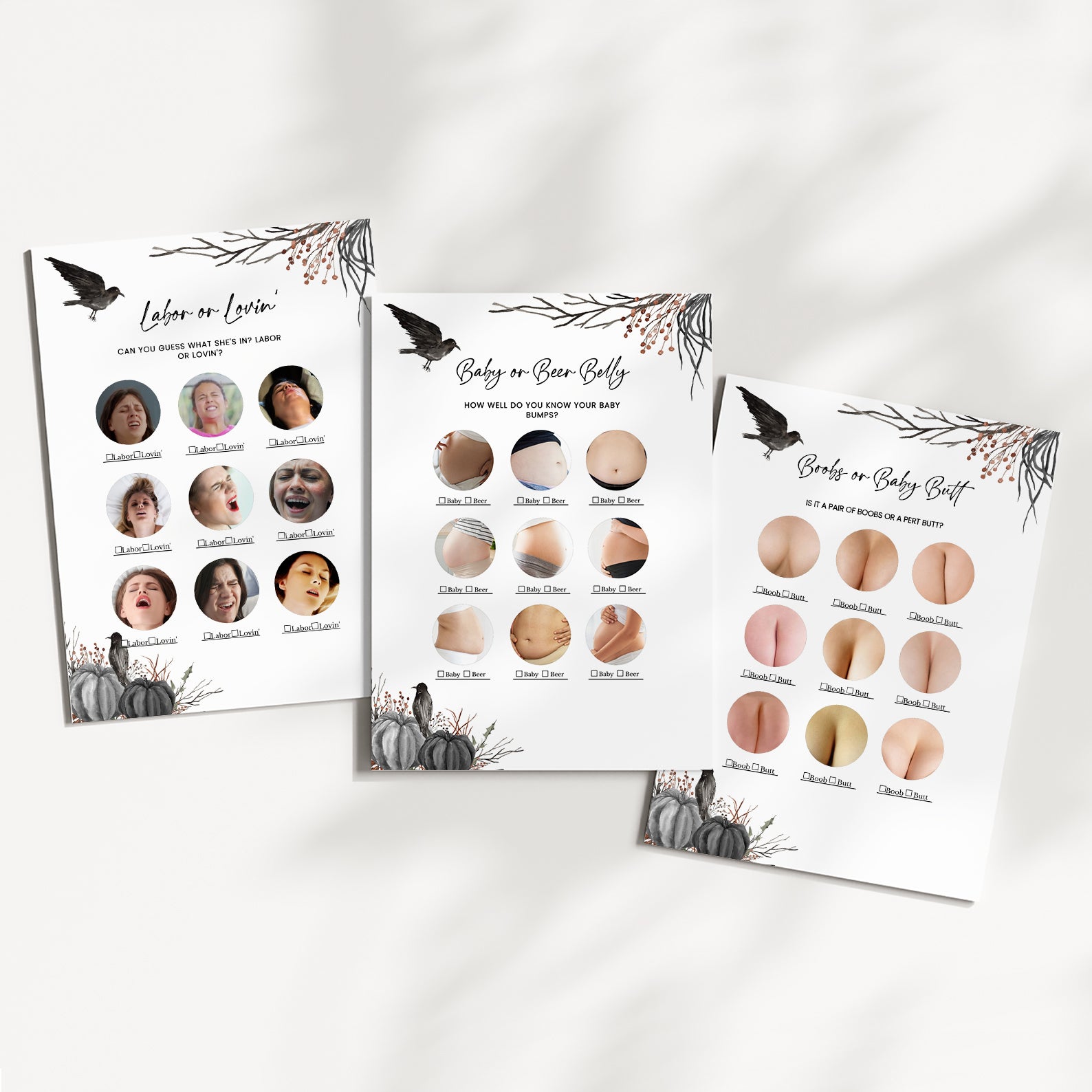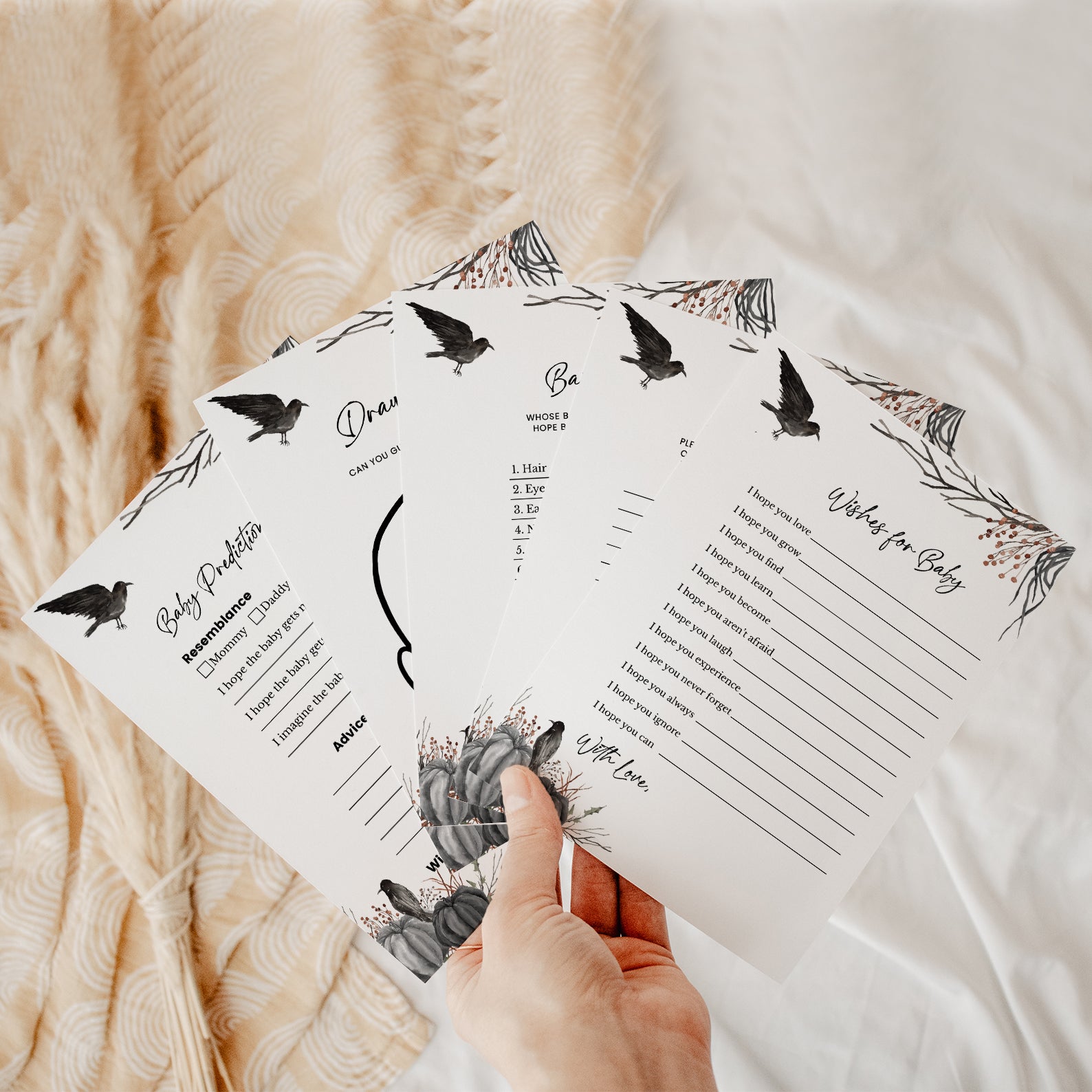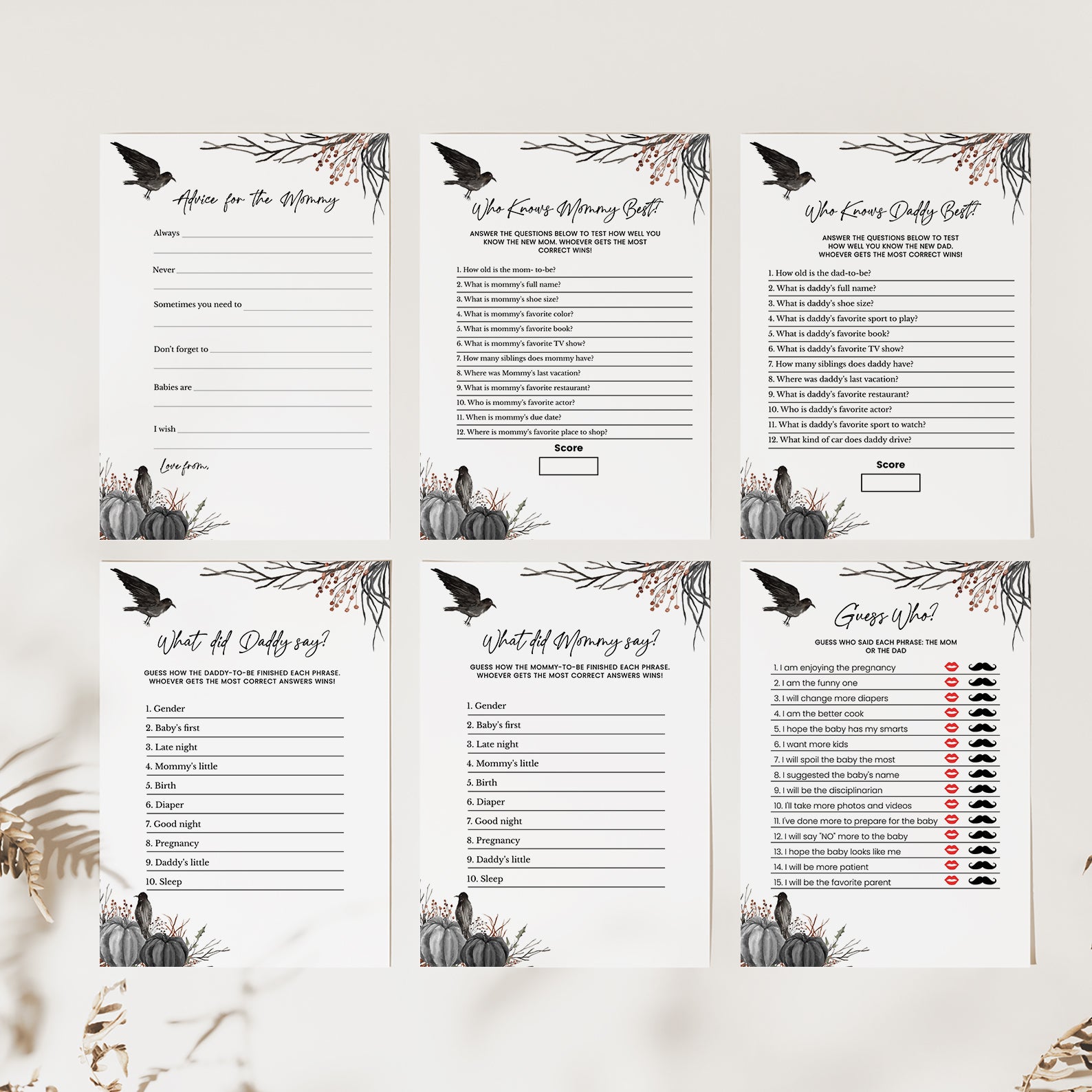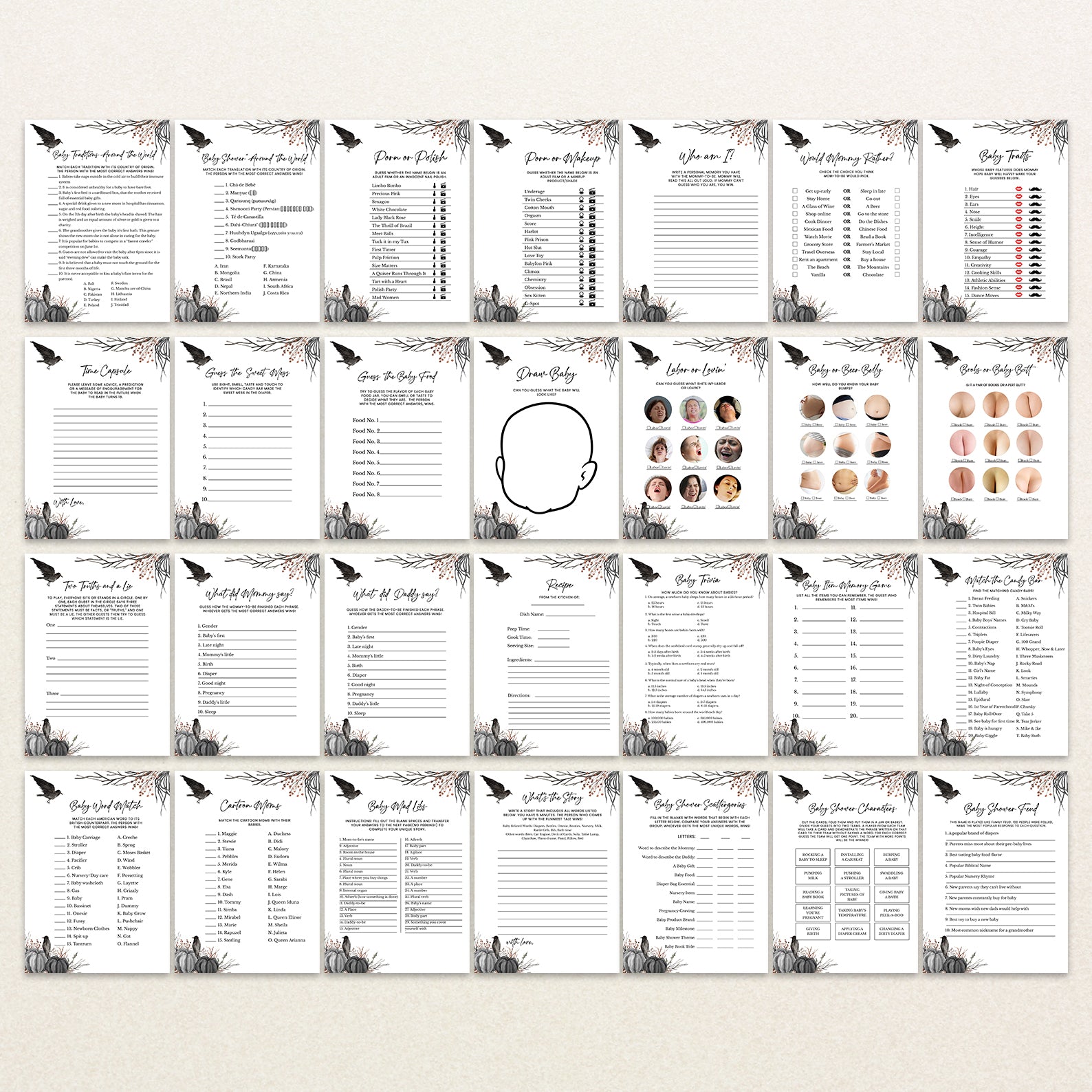 Minimal Halloween Digital Baby Shower Game Bundle: Crow & Pumpkin