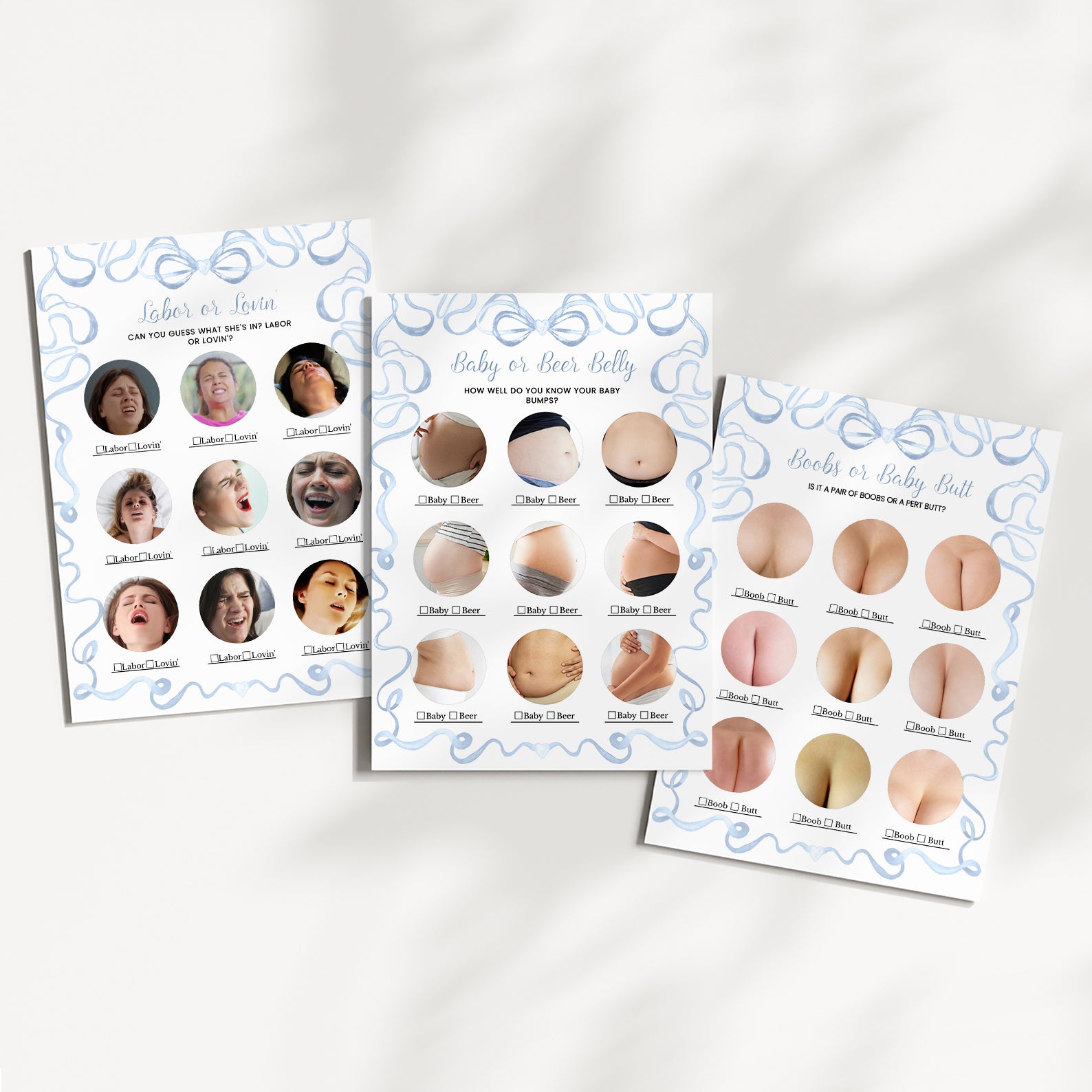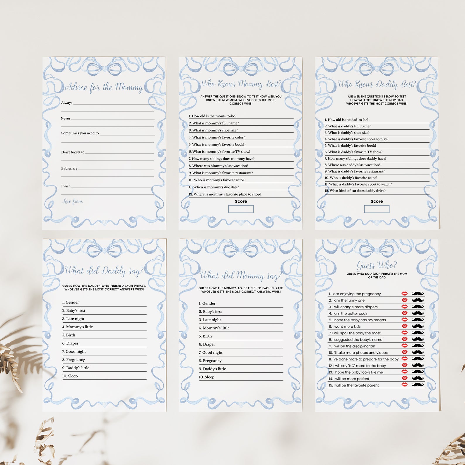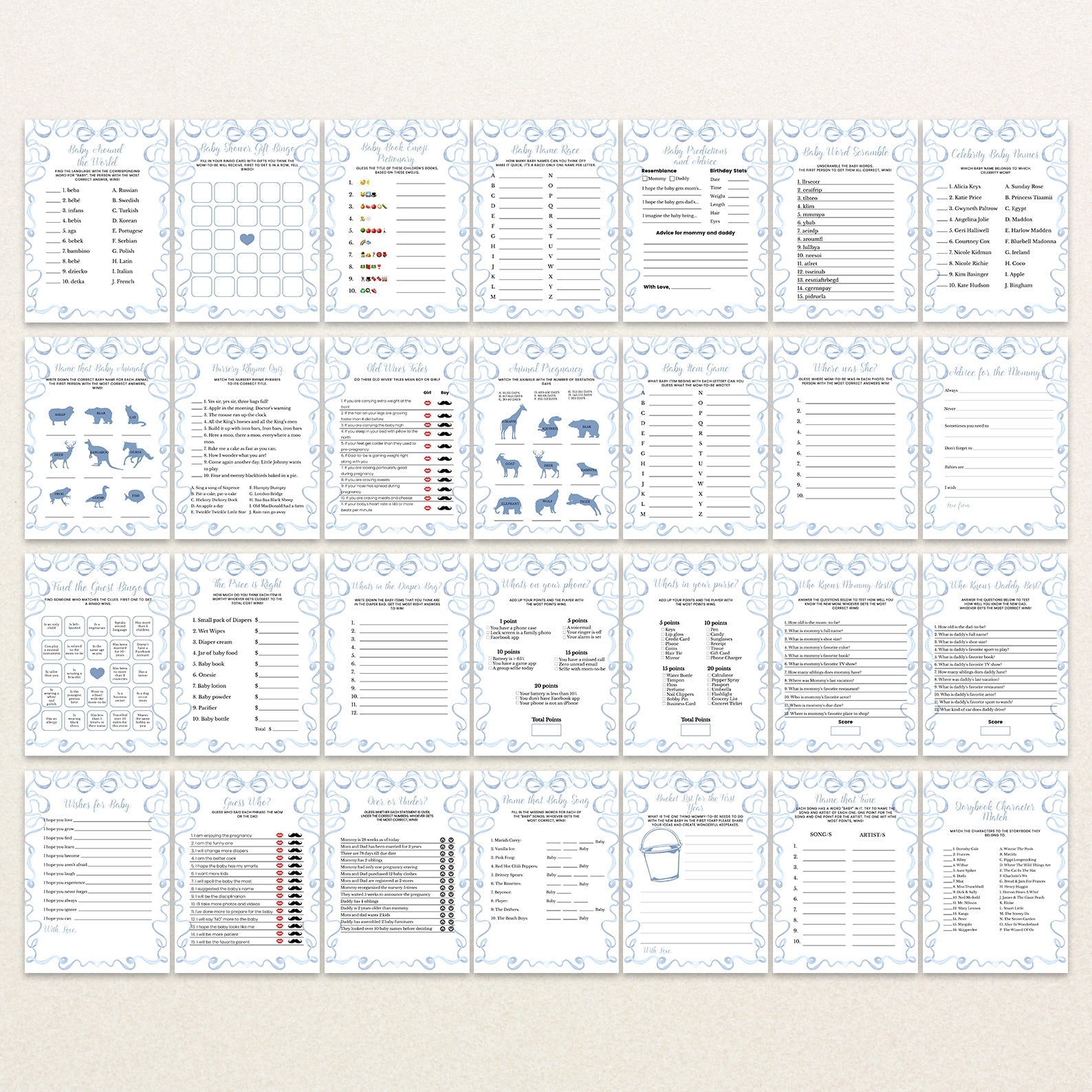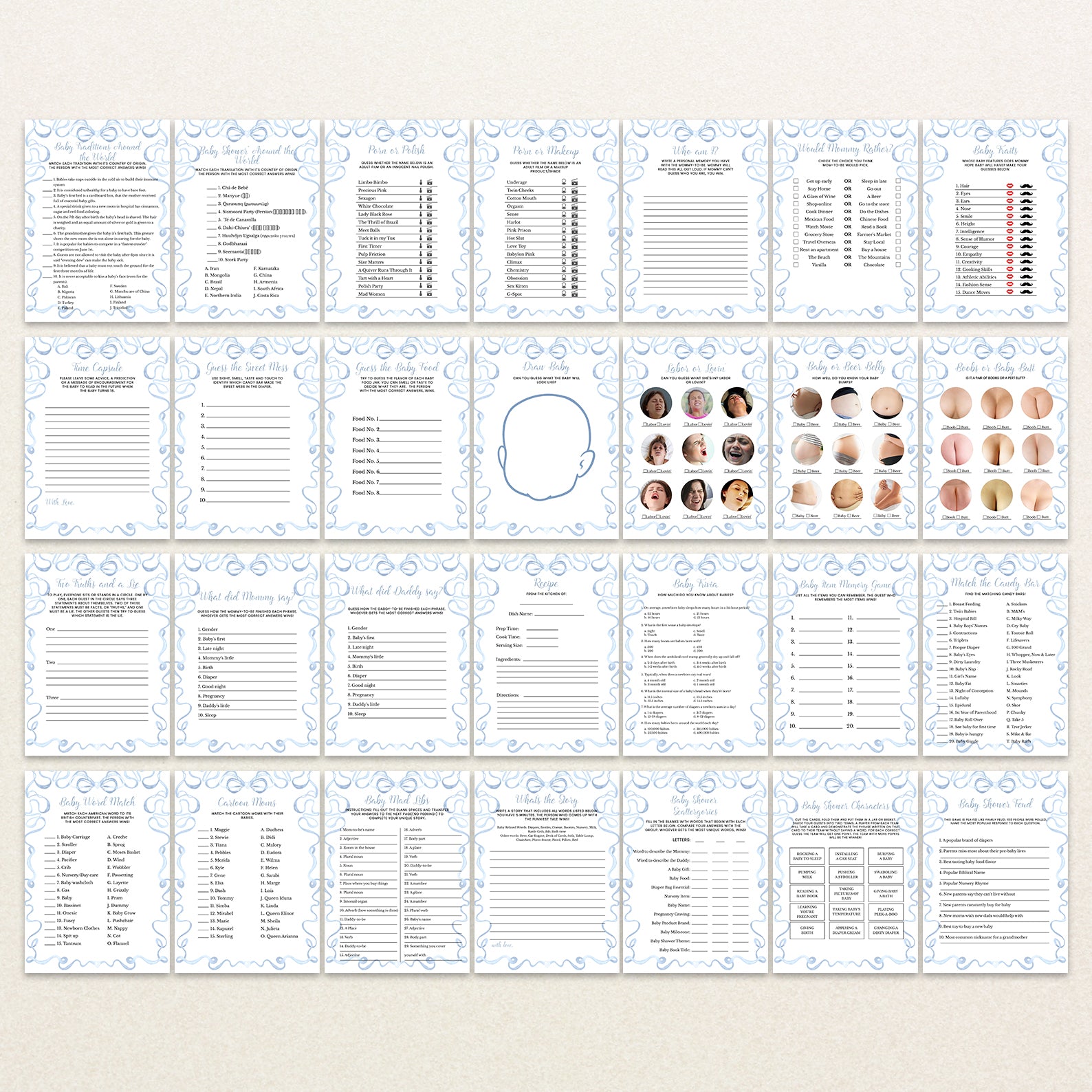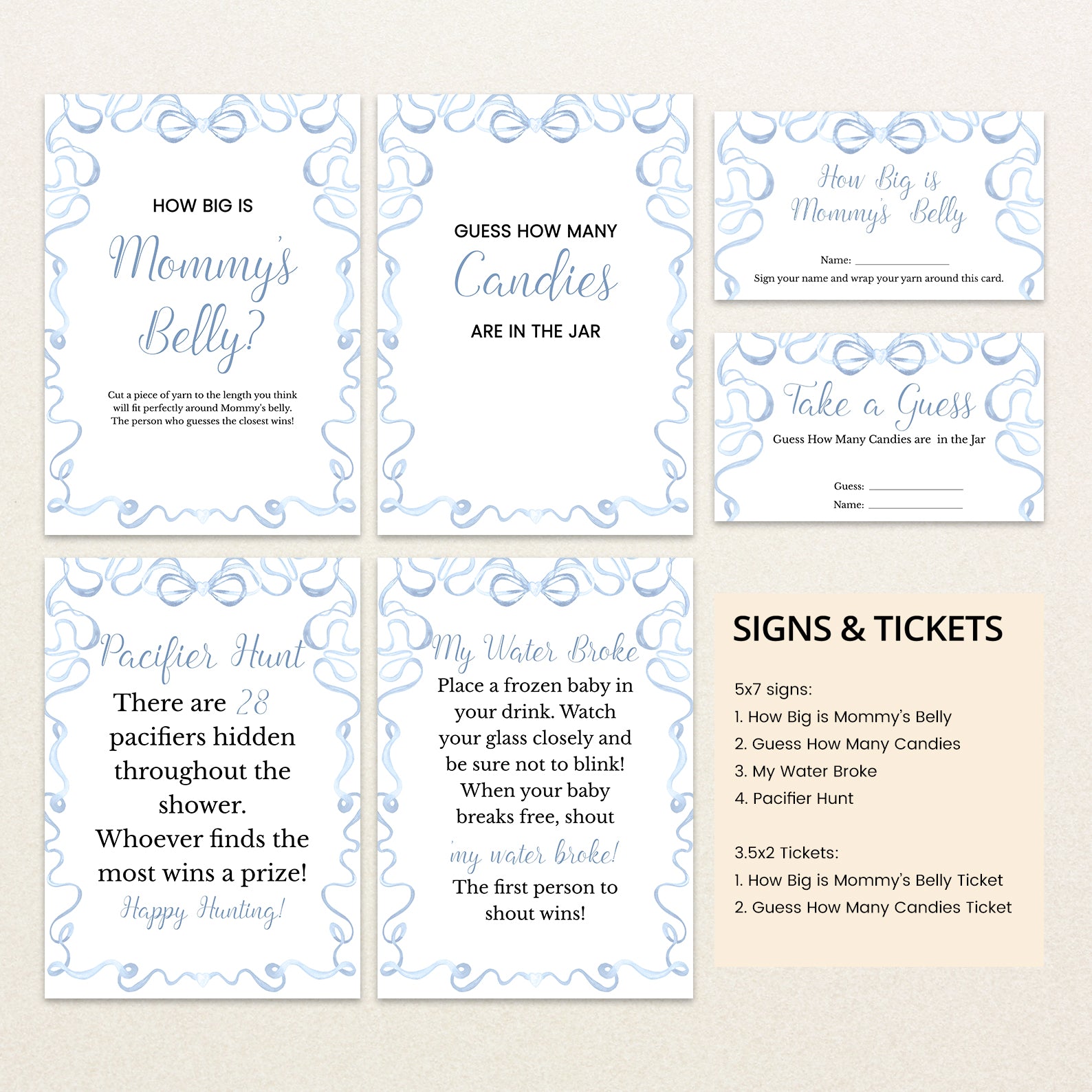 Blue Baby Shower Game Bundle with Wavy Border & Ribbon Top