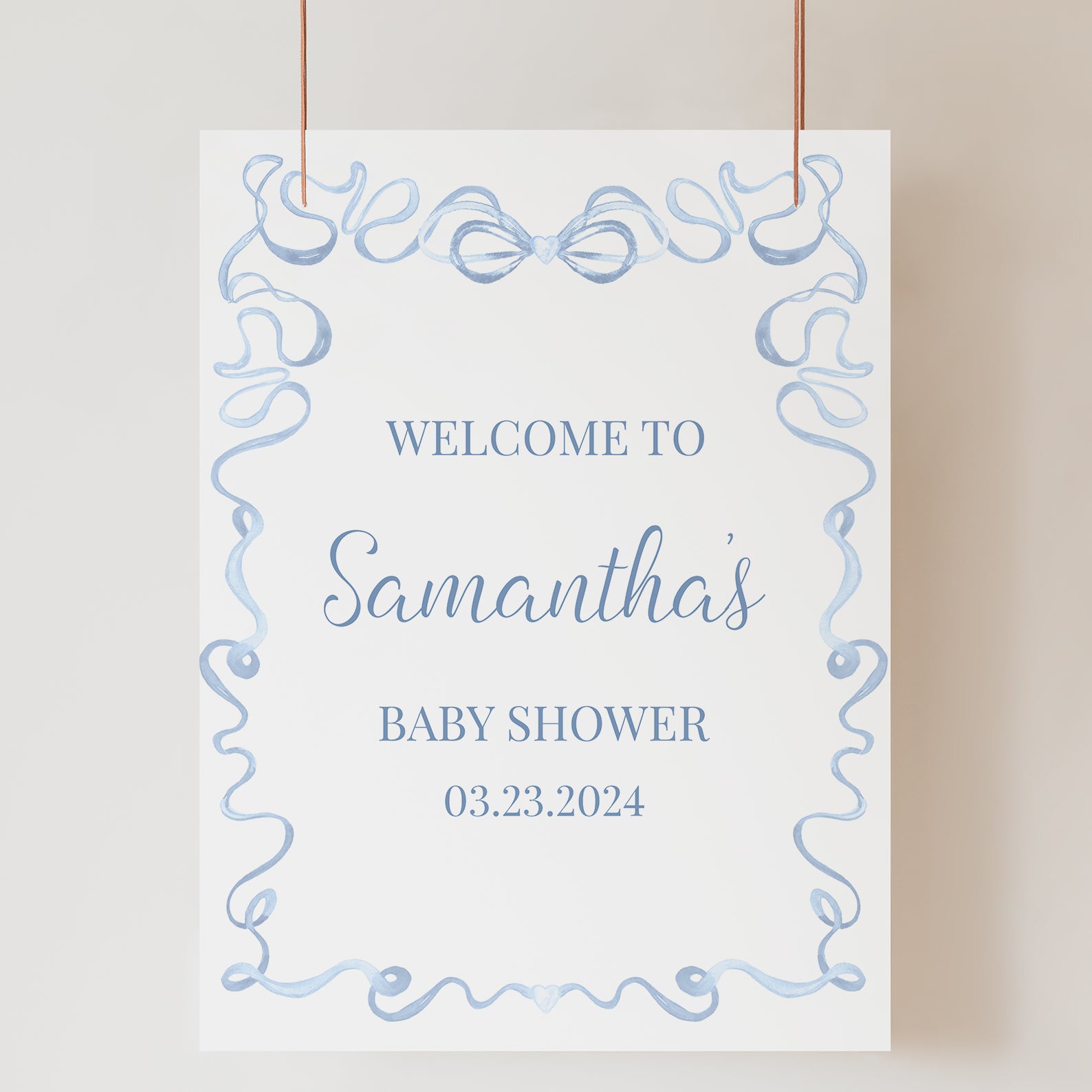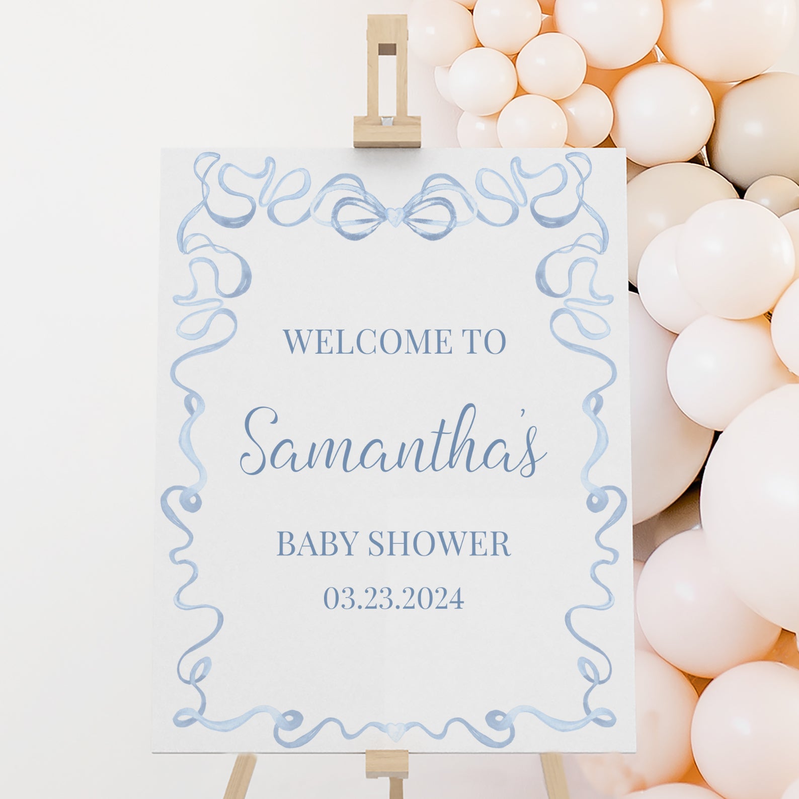 - Purchase this Blue Baby Shower Welcome Sign with Wavy Border & Ribbon Top template