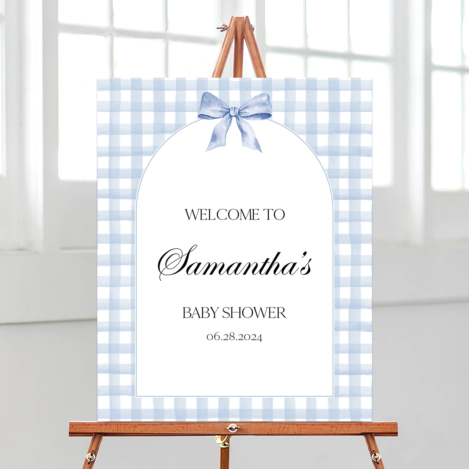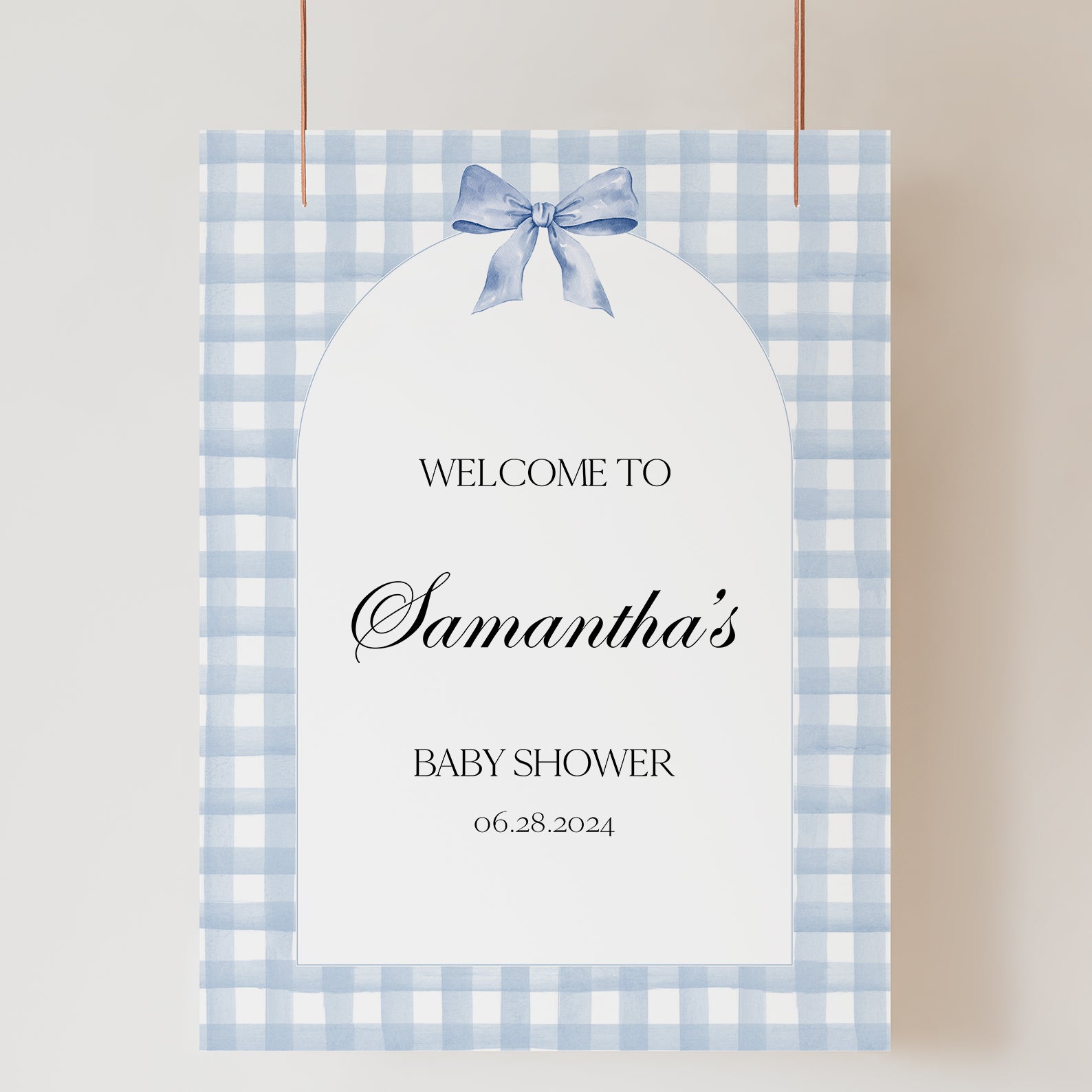 - Purchase this Blue Plaid Baby Shower Welcome Sign with Arch & Ribbon Design template