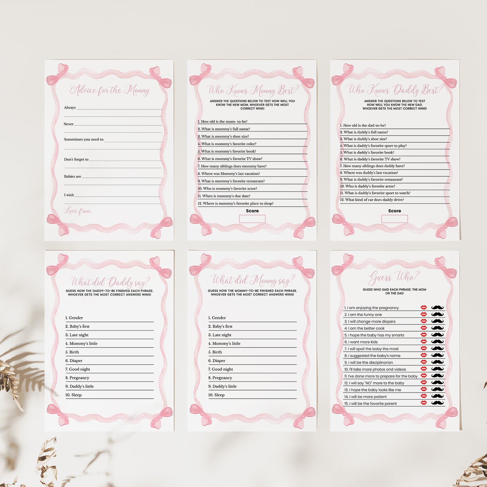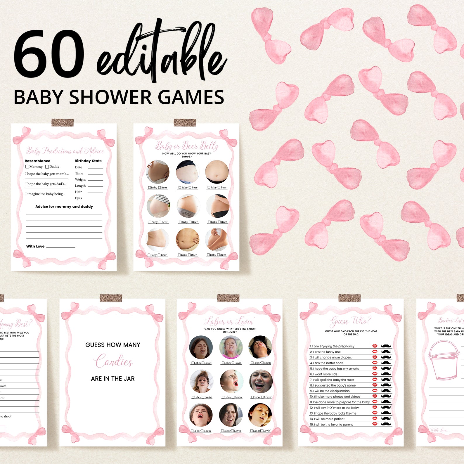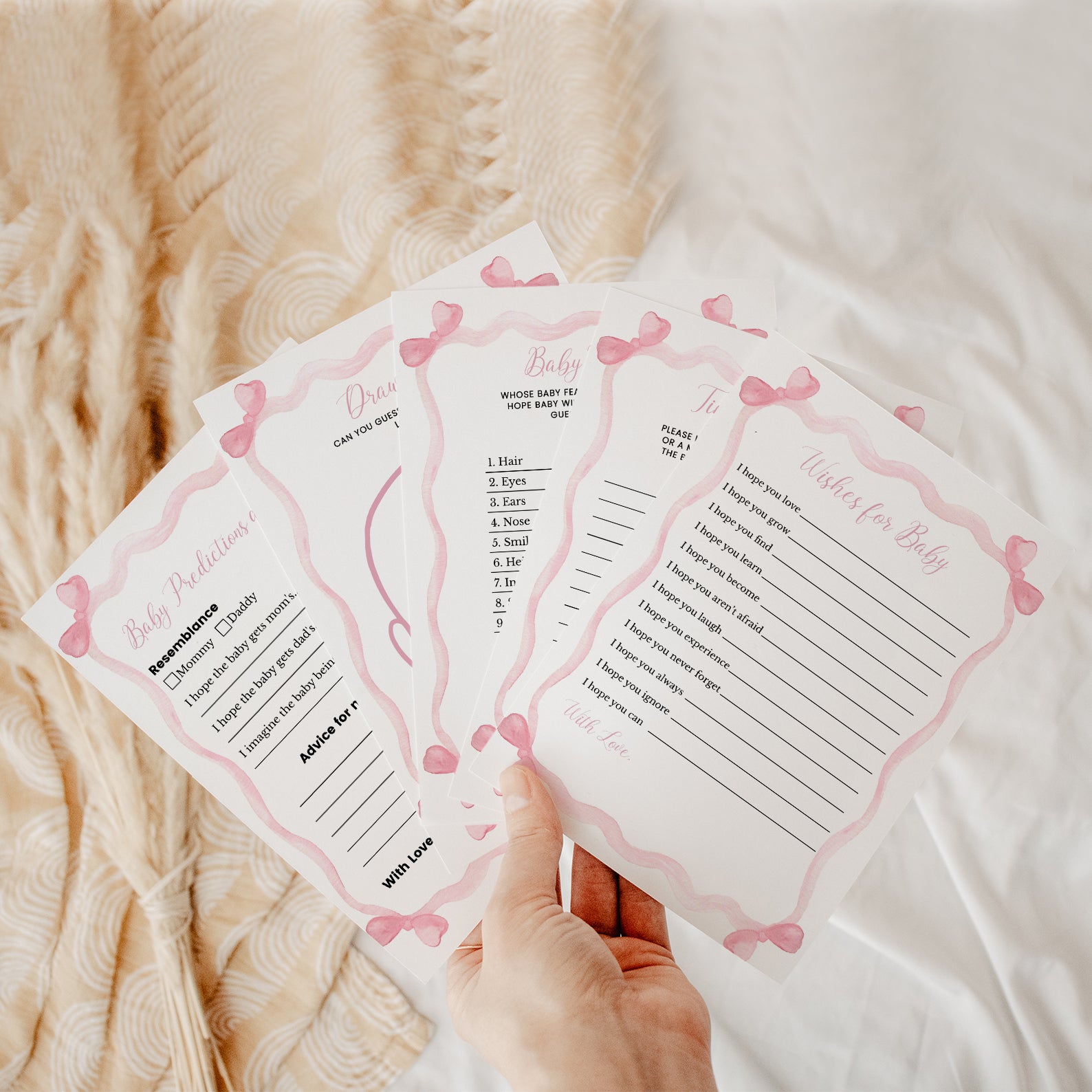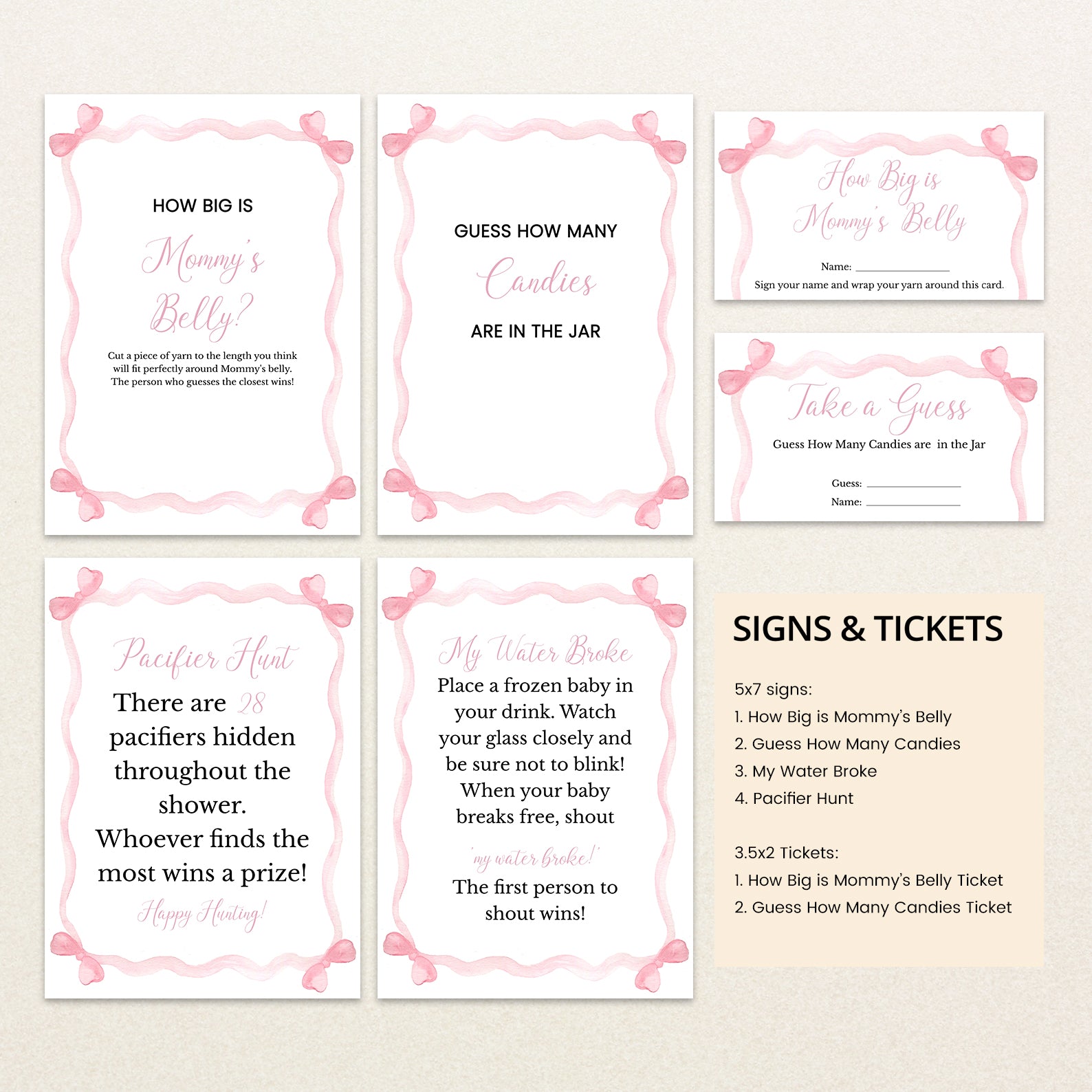 - Purchase this Minimalist Pink Baby Shower Digital Game Bundle with Ribbons template