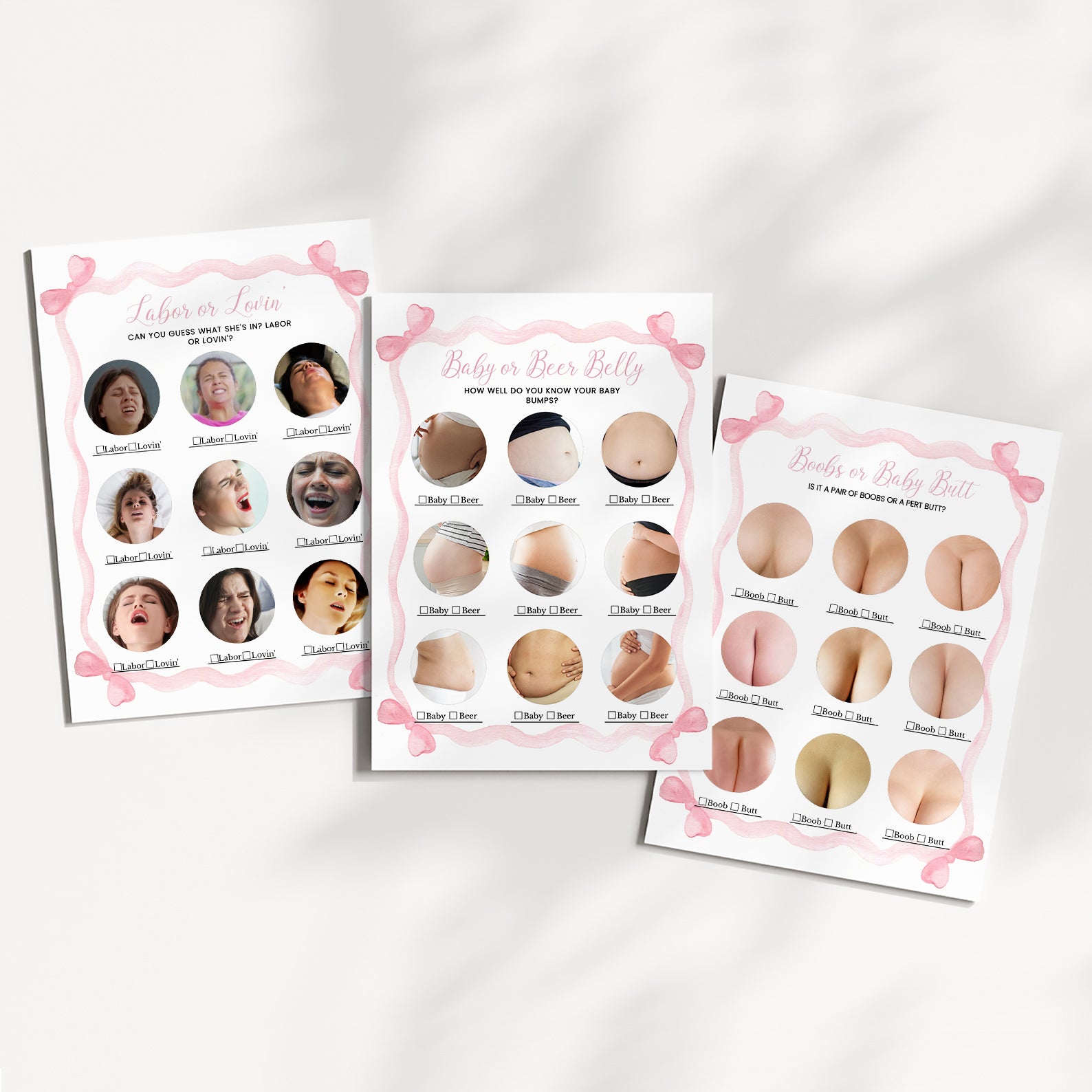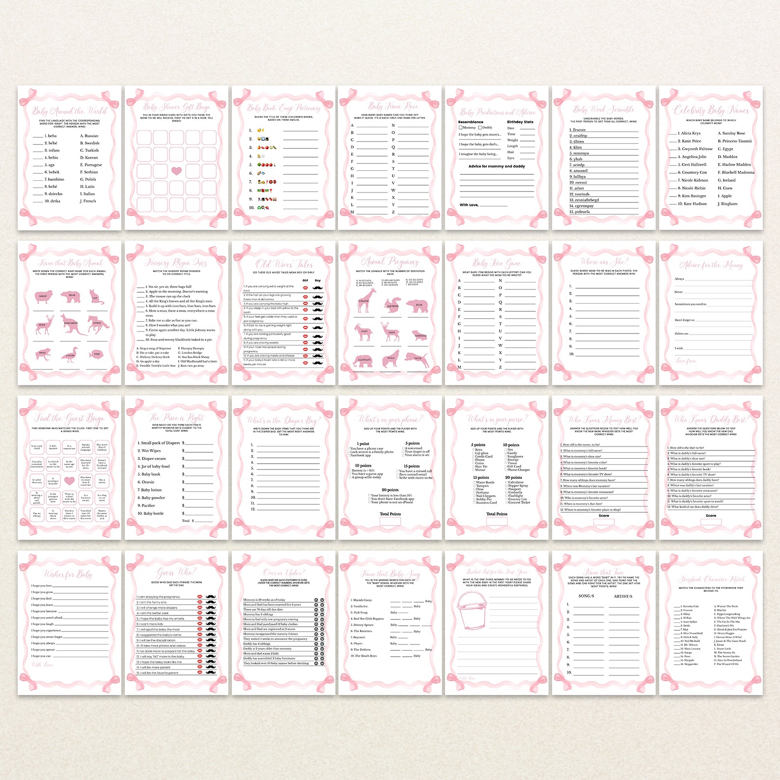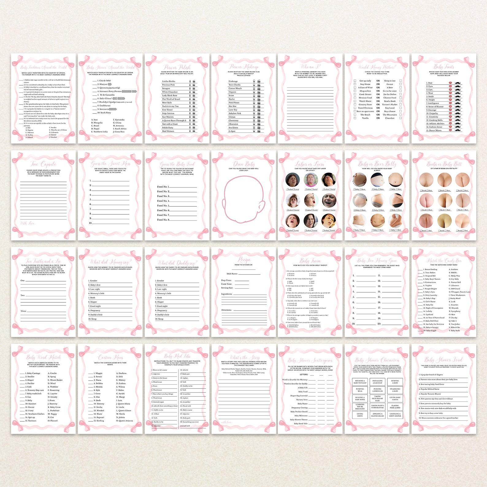 Minimalist Pink Baby Shower Digital Game Bundle with Ribbons