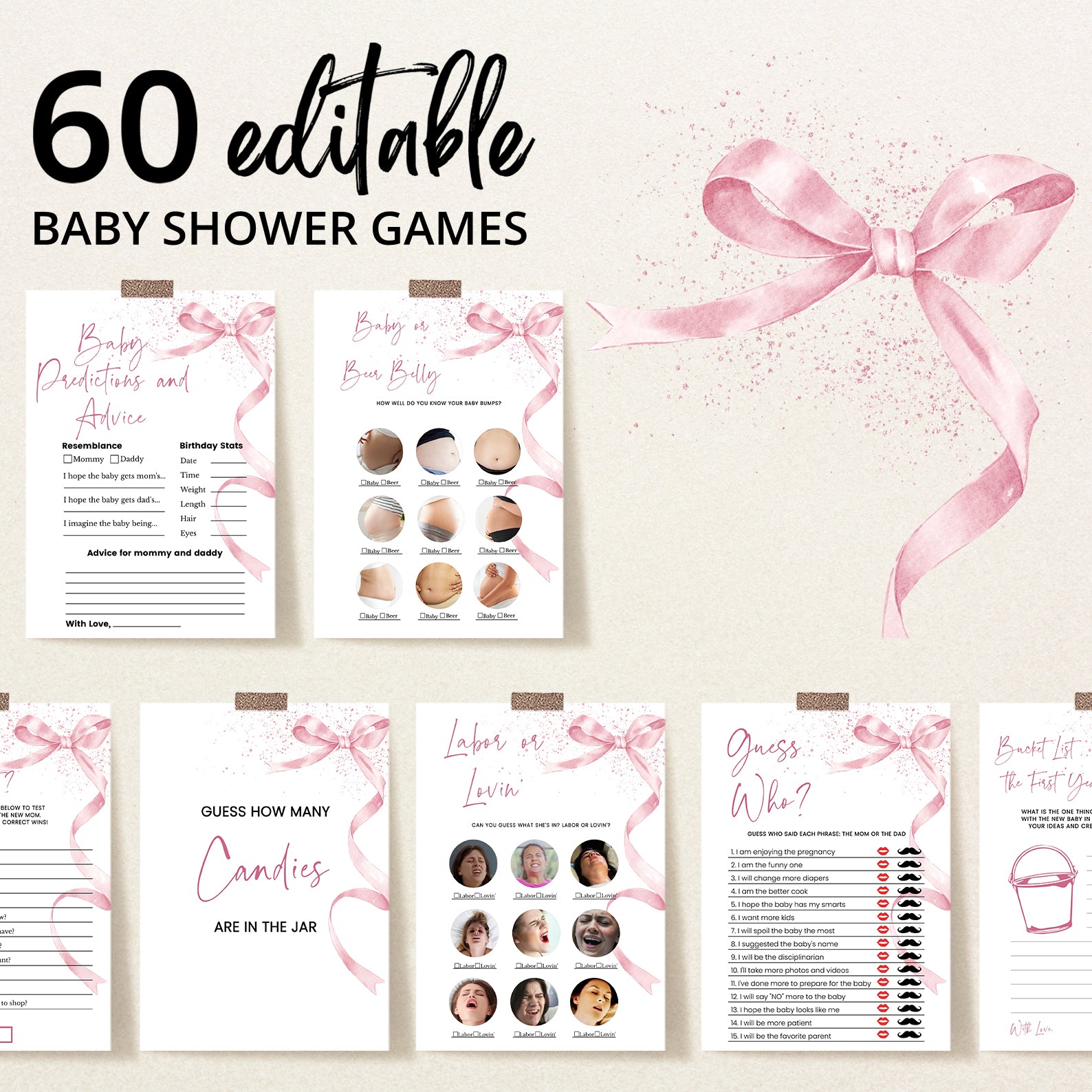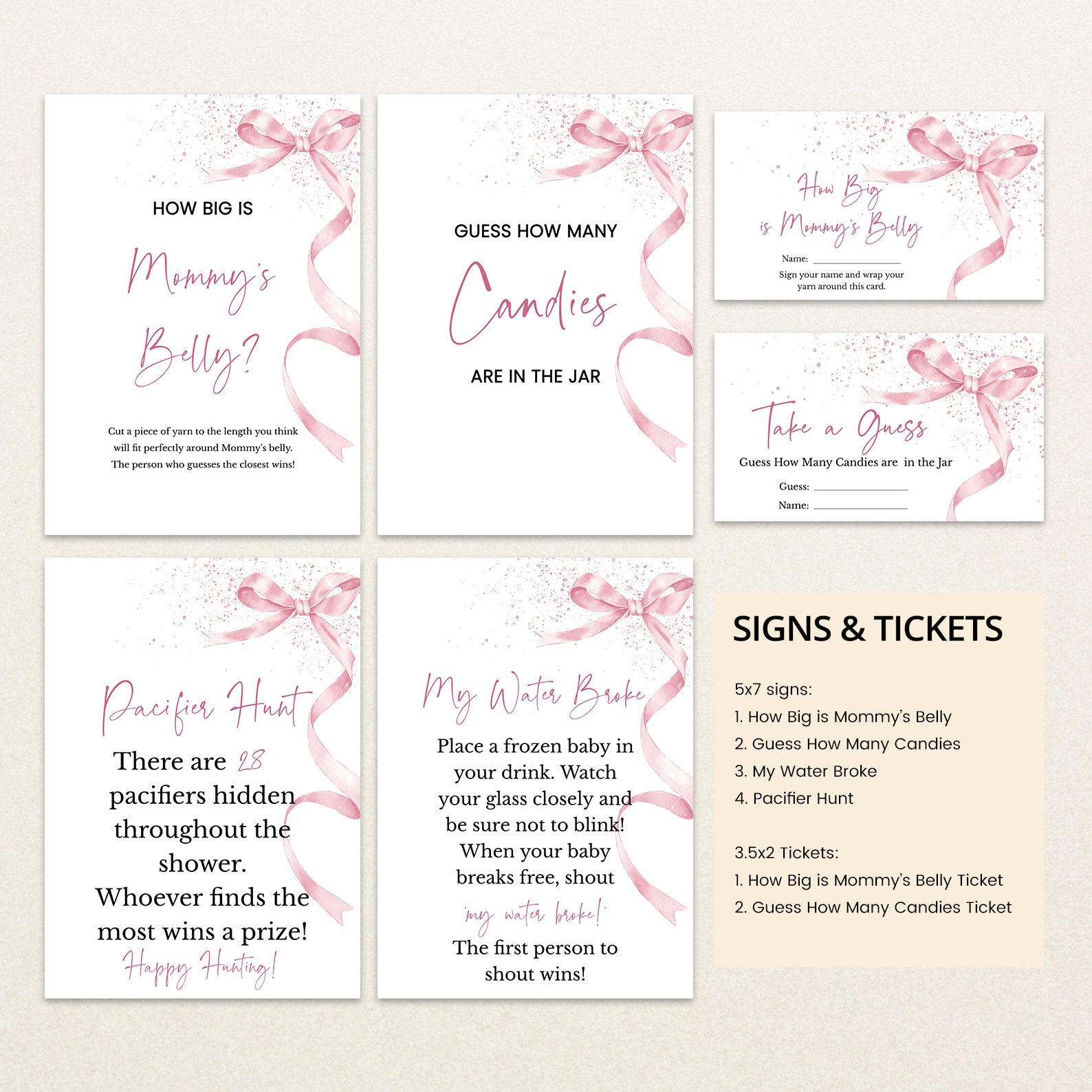 - Purchase this Pink Ribbon Baby Shower Digital Game Bundle - Minimalist Style template