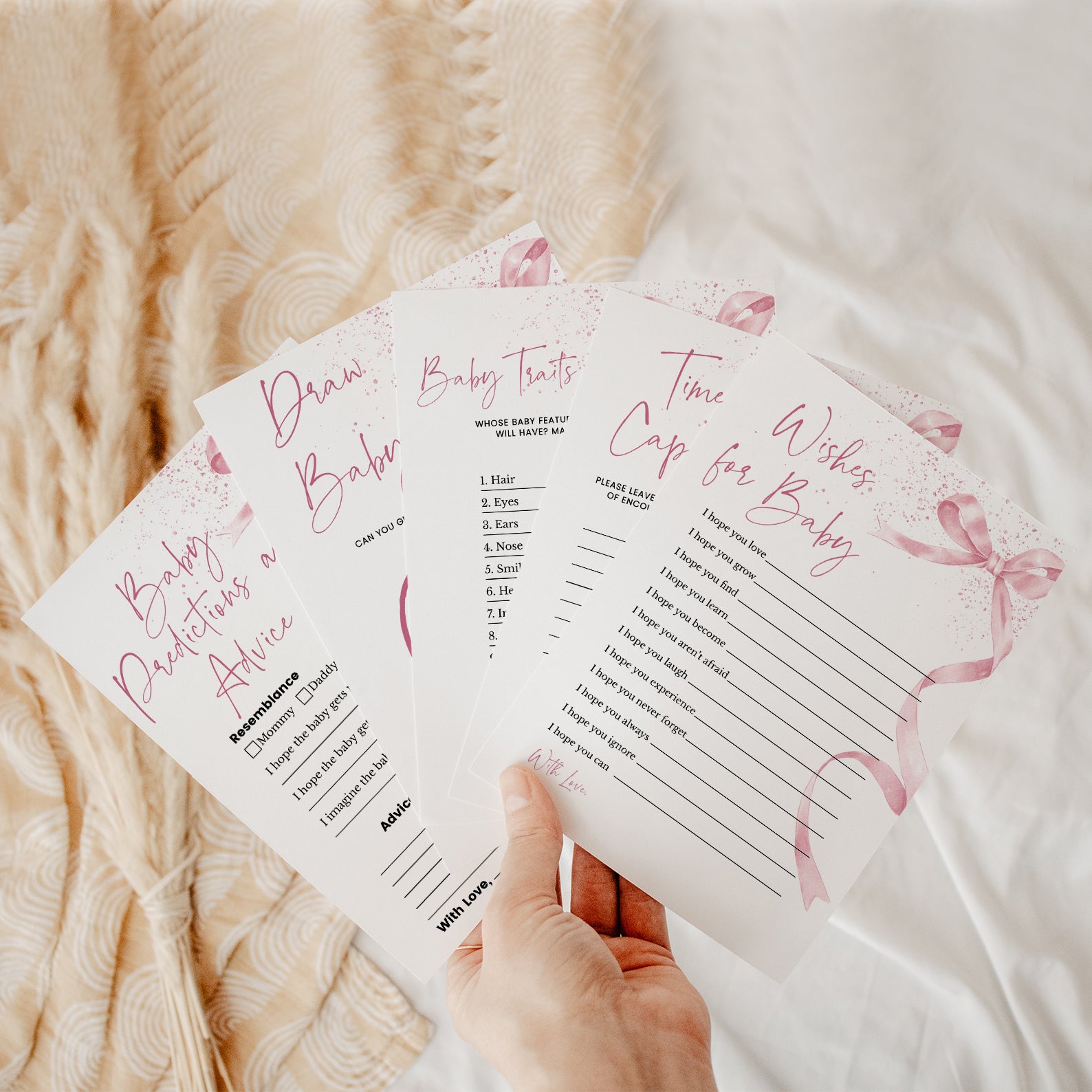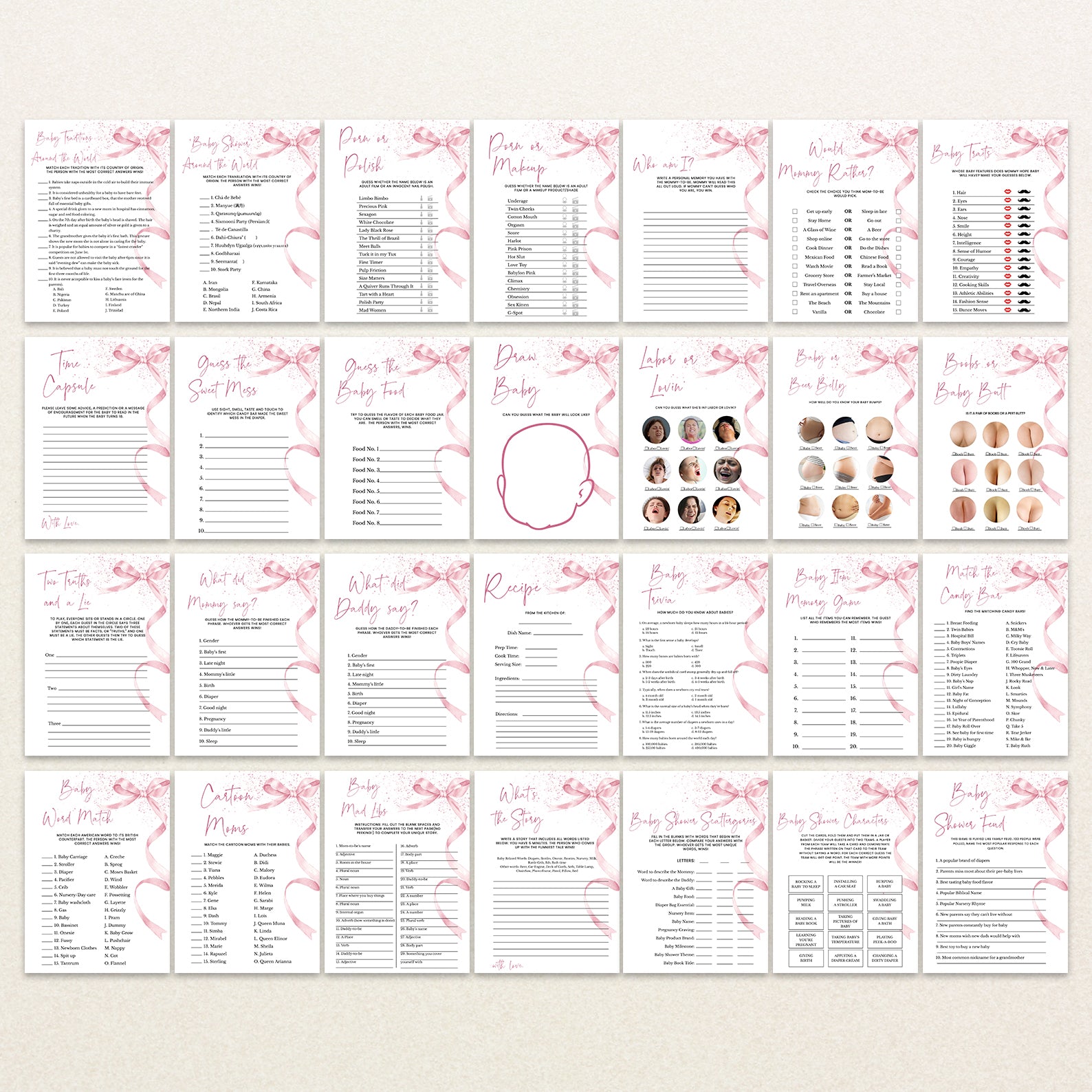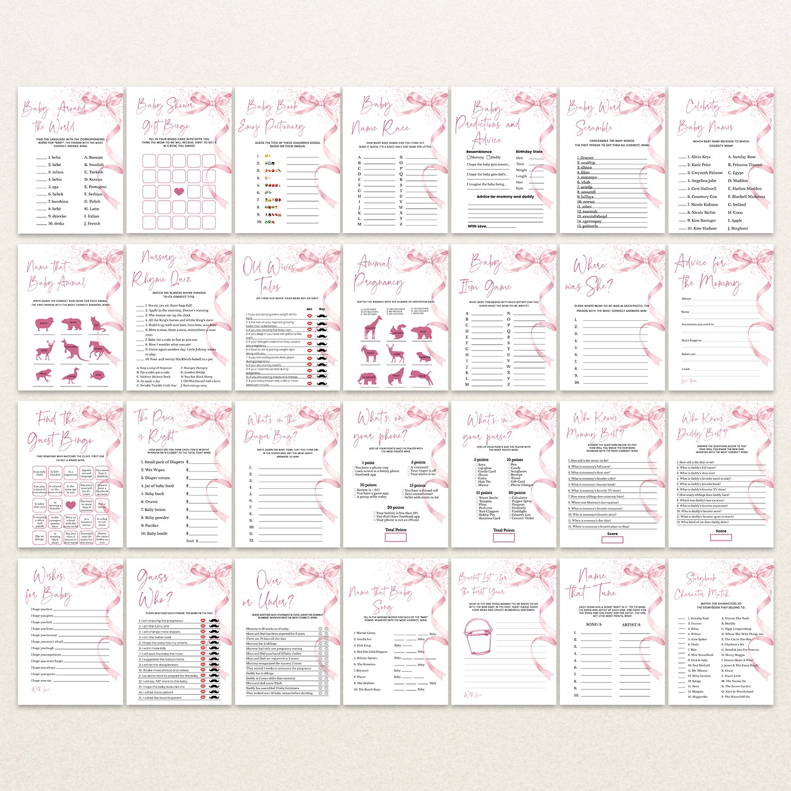 Pink Ribbon Baby Shower Digital Game Bundle - Minimalist Style