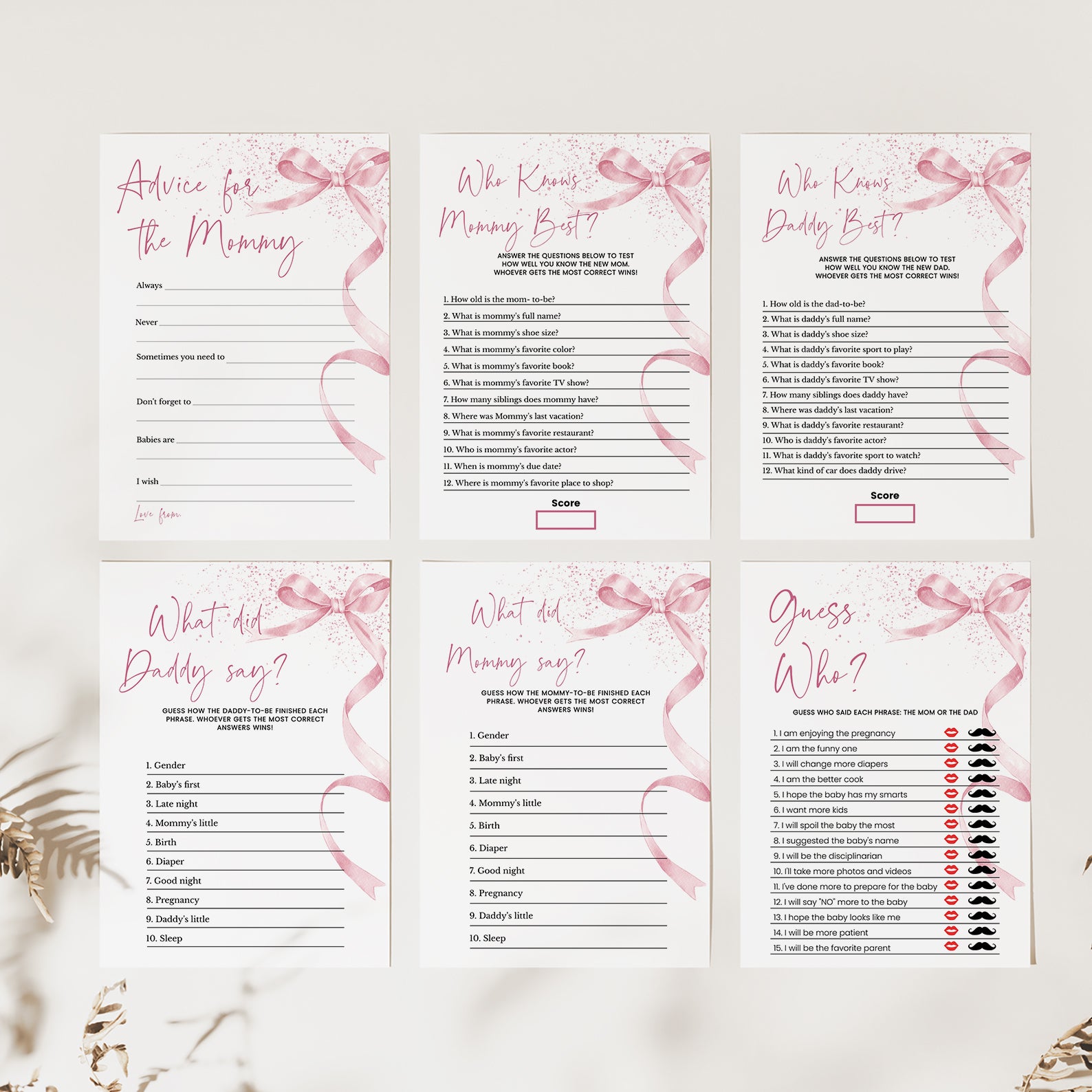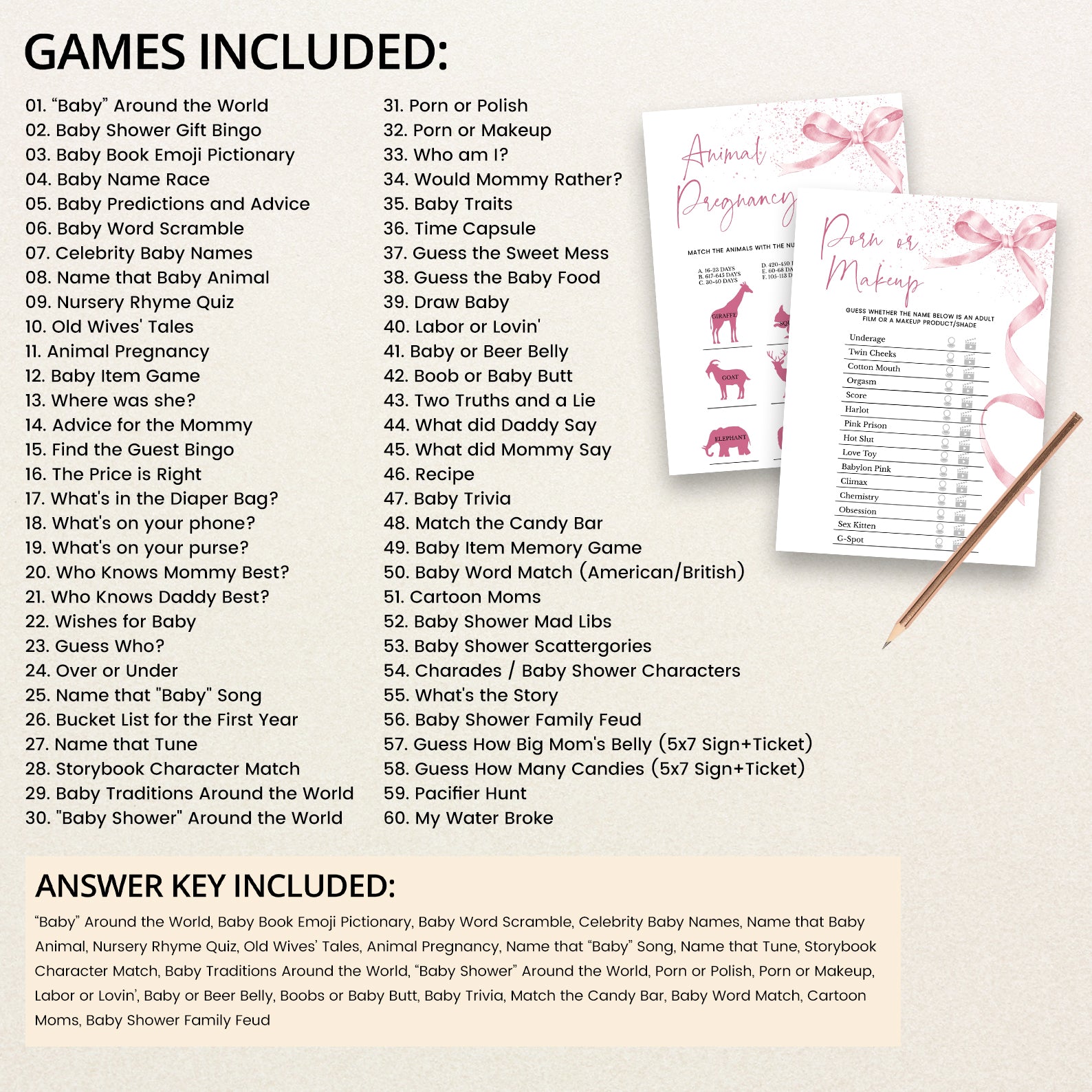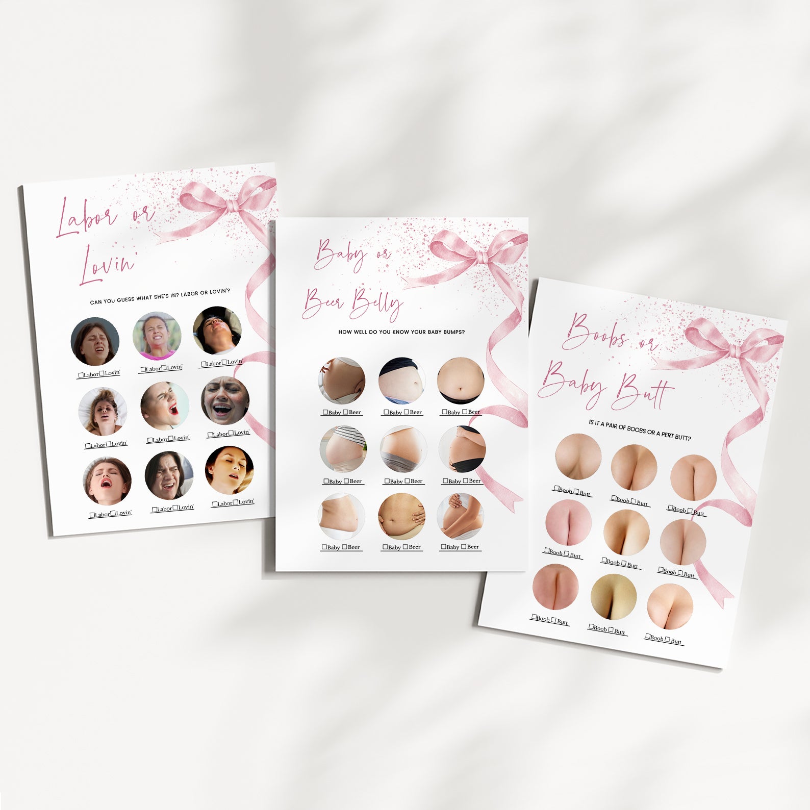 Pink Ribbon Baby Shower Digital Game Bundle - Minimalist Style