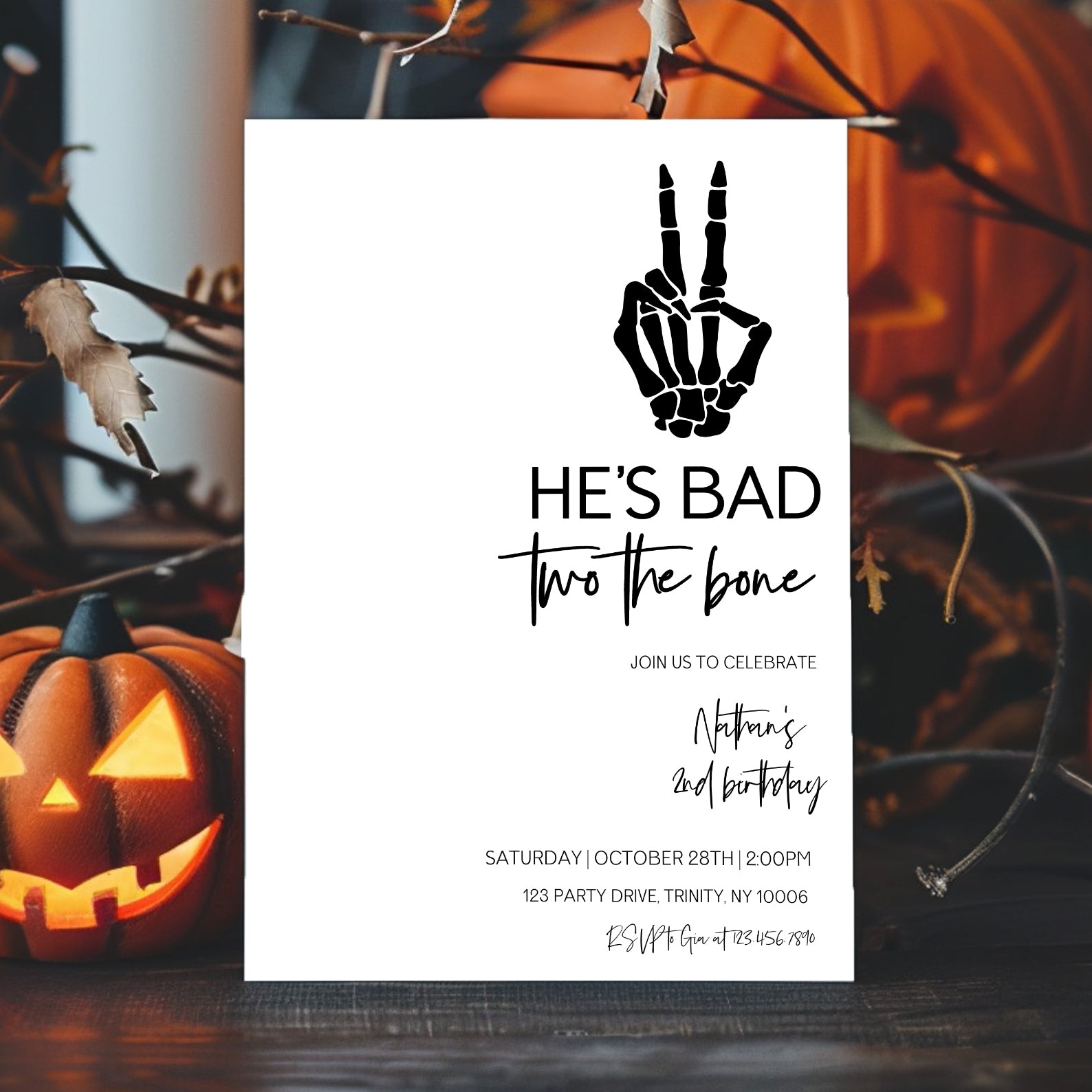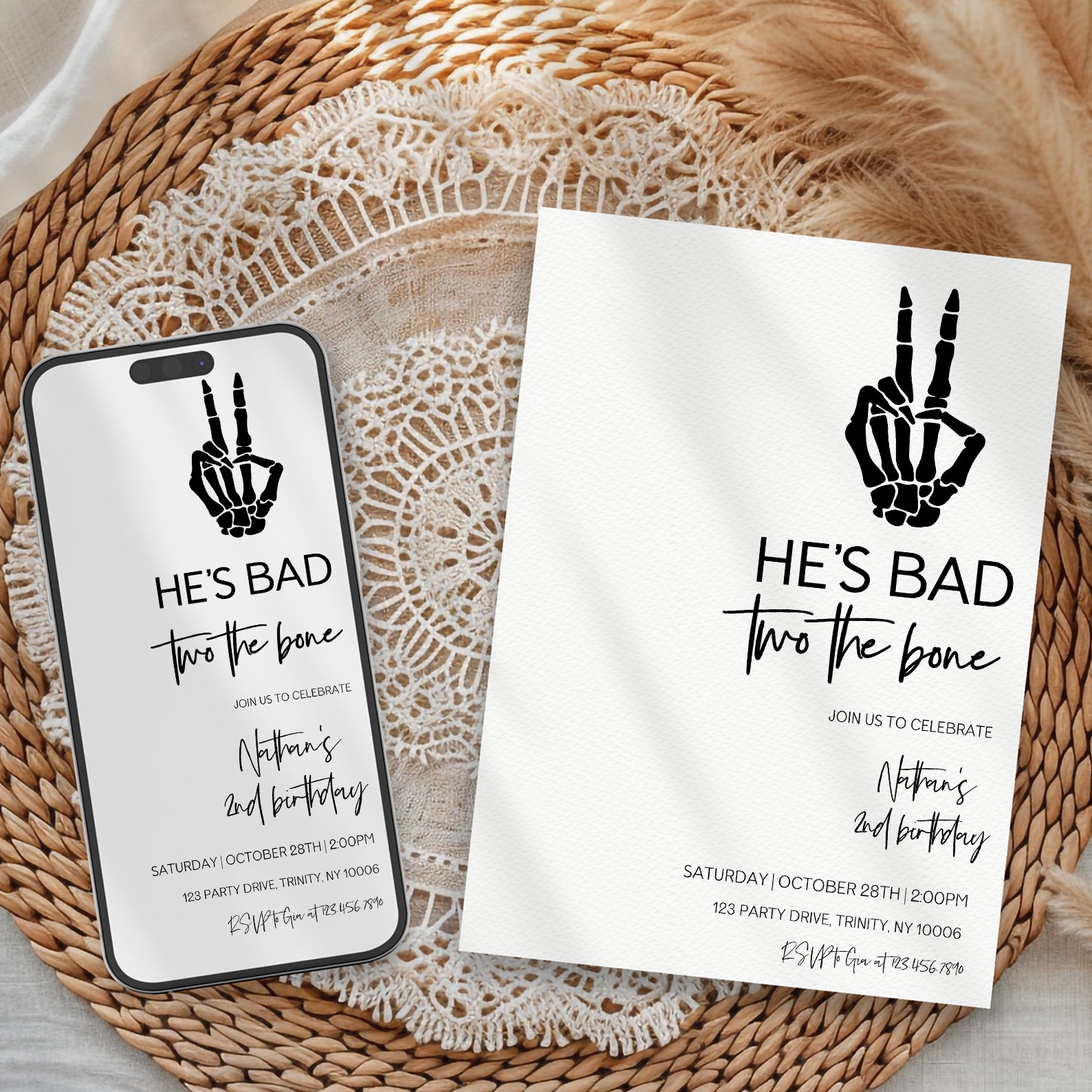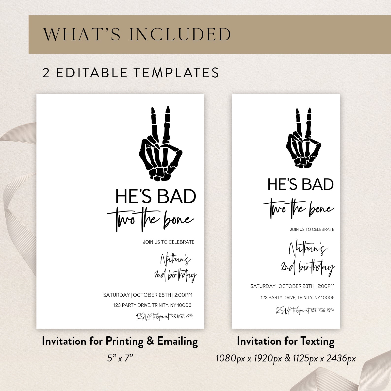 - Purchase this Bad Two the Bone Invite: 2nd Birthday Skeleton Party template