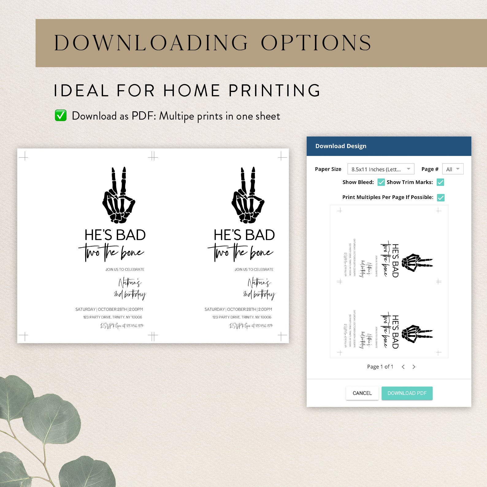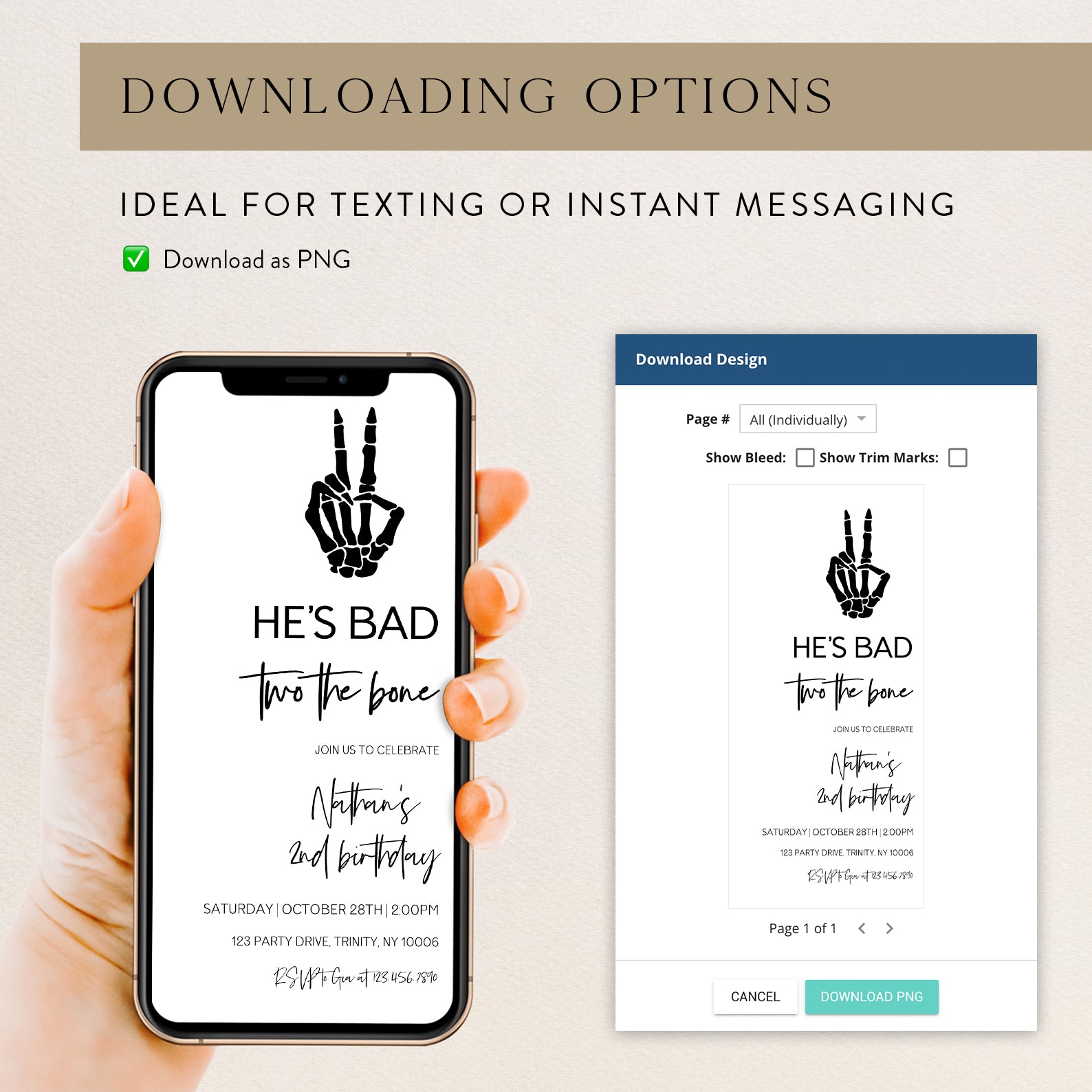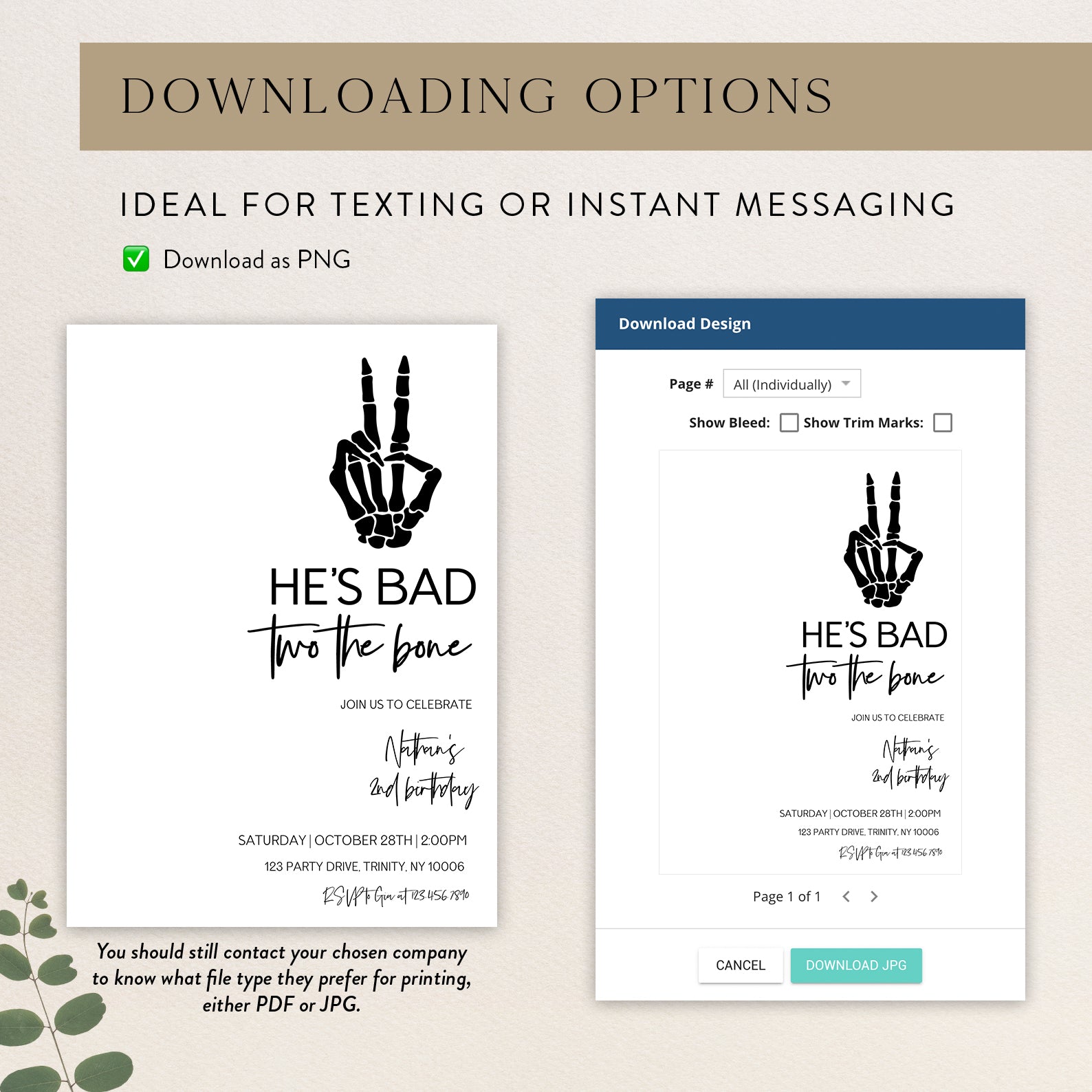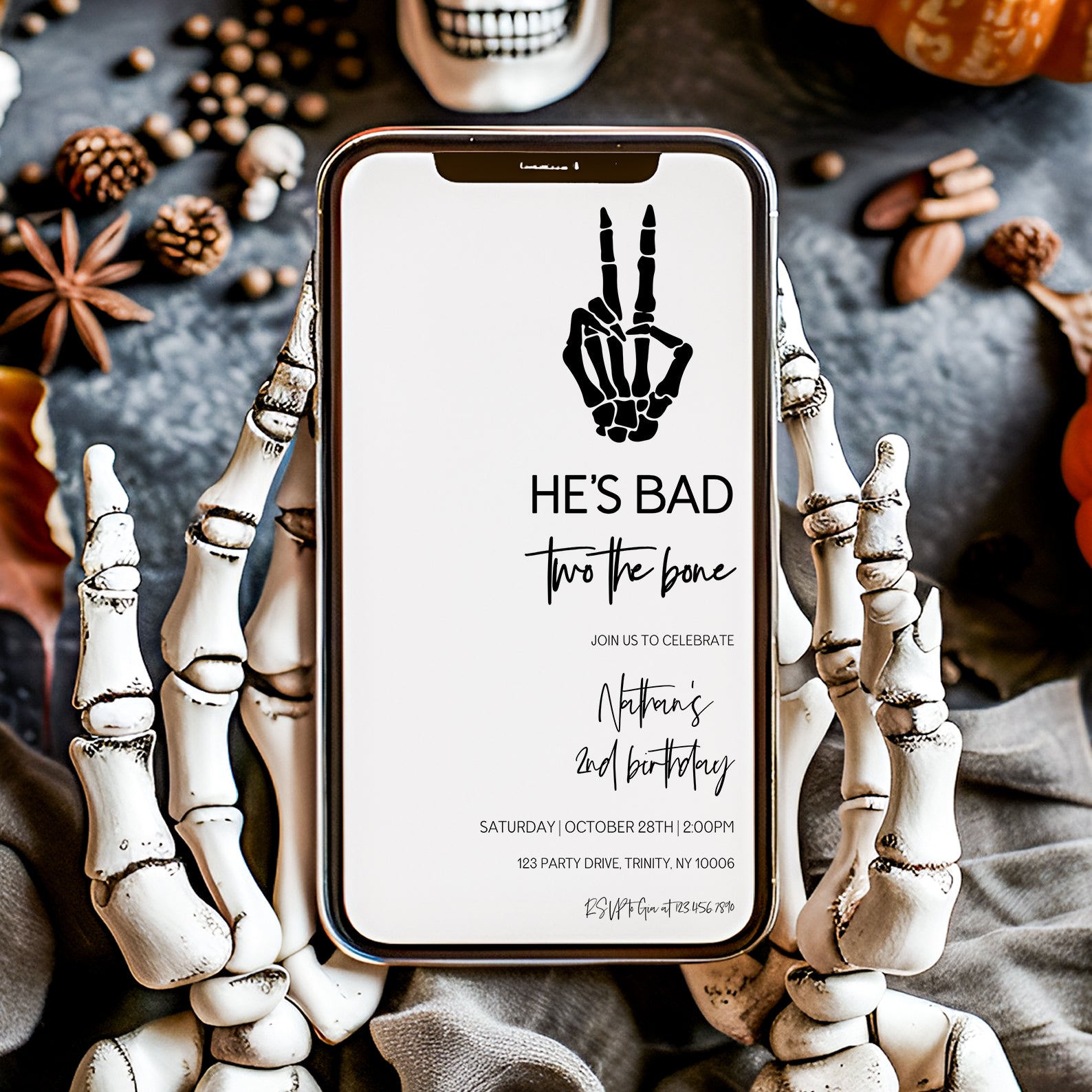 - Purchase this Bad Two the Bone Invite: 2nd Birthday Skeleton Party template