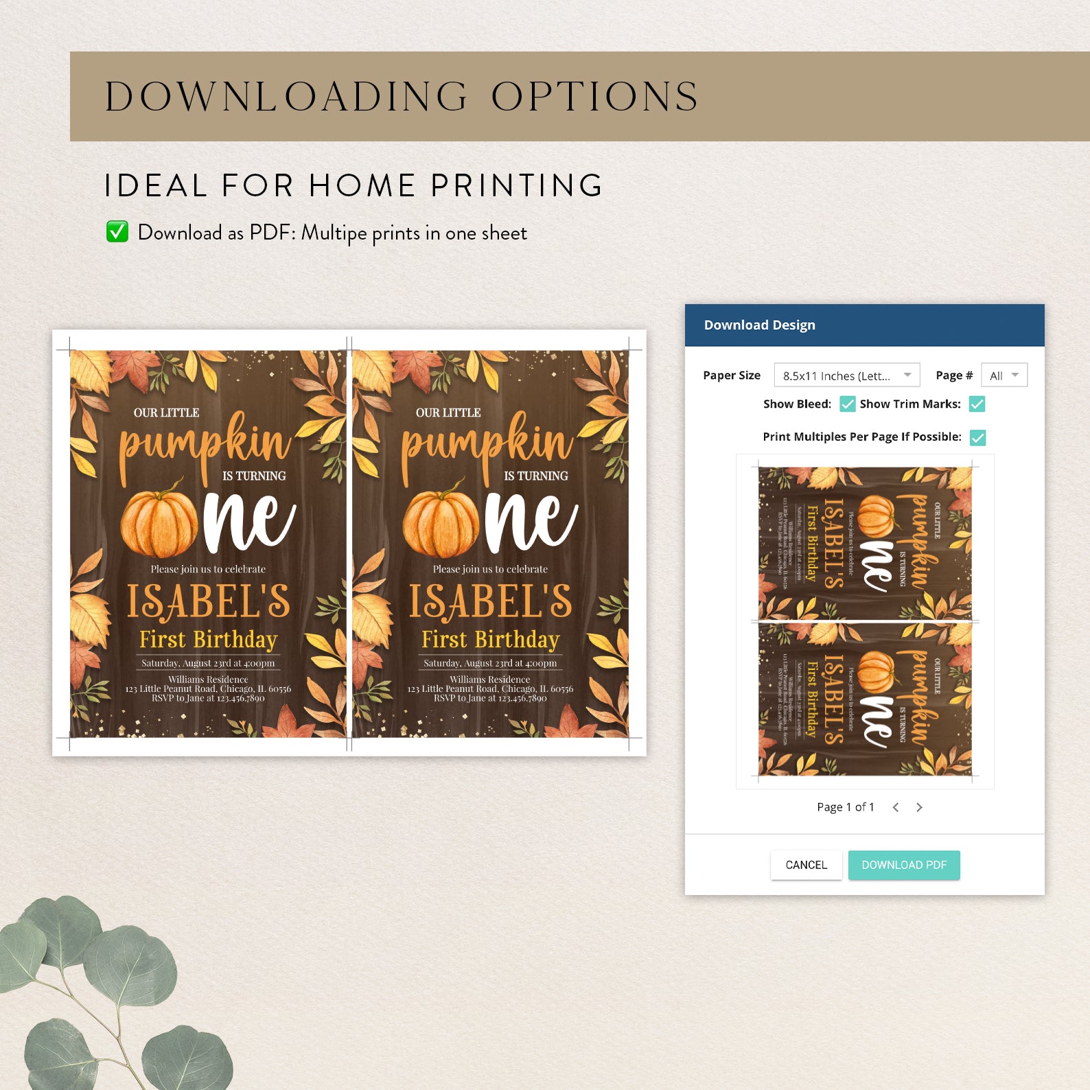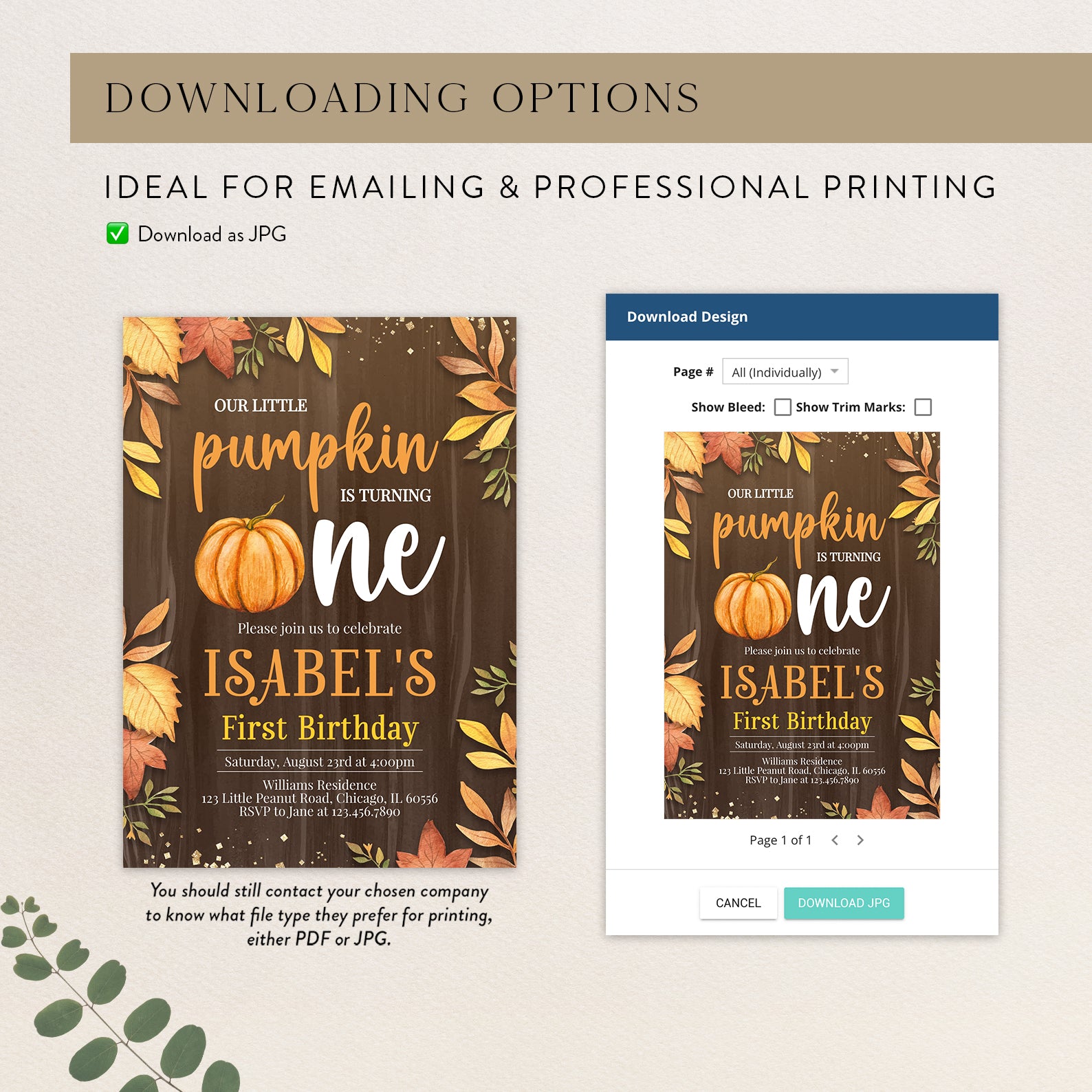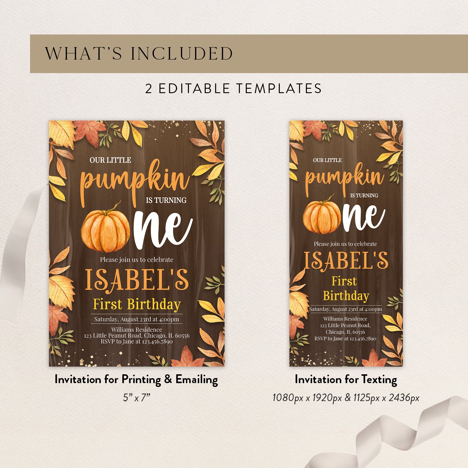 - Purchase this Little Pumpkin Turns One Fall Invite with Leaves & Gold template