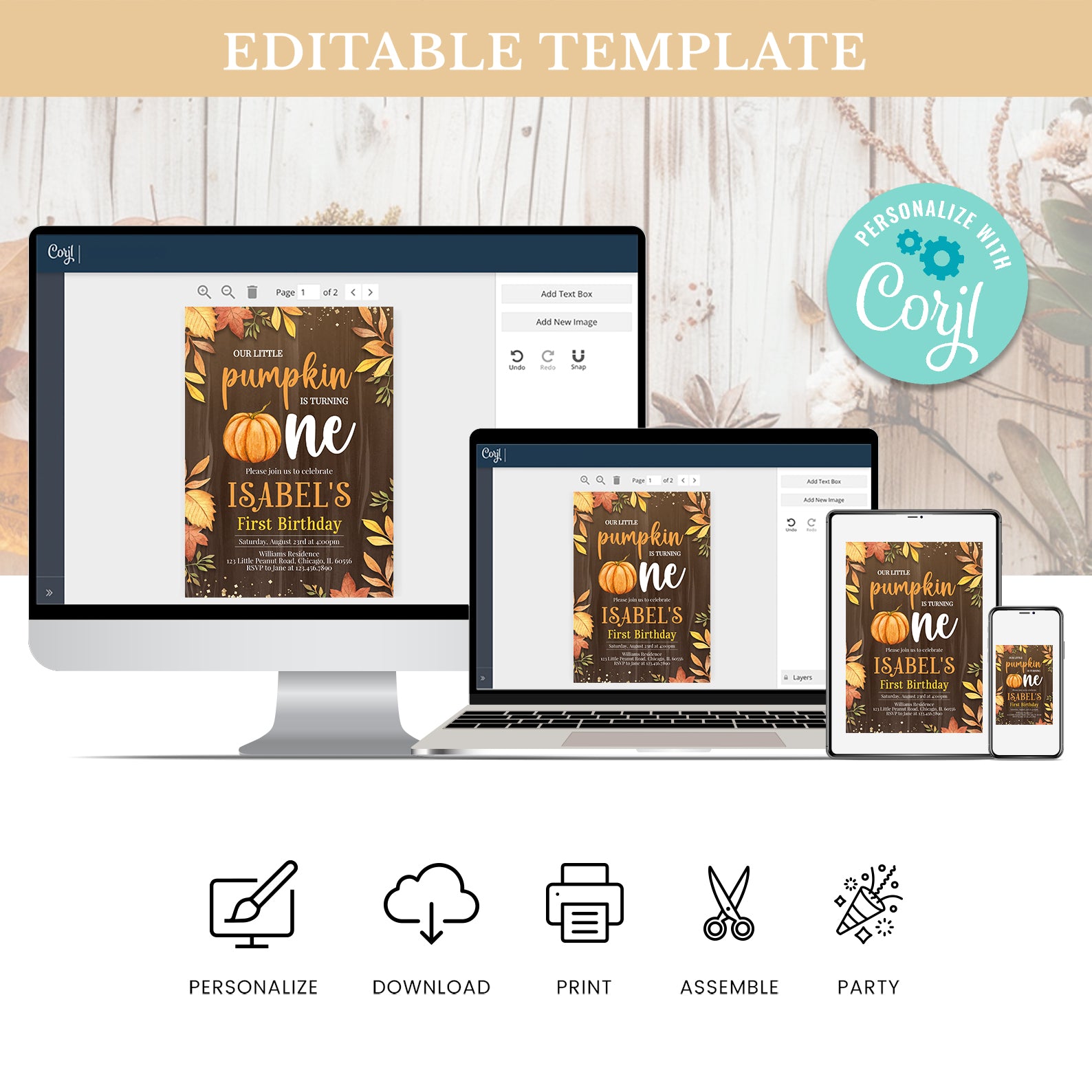 *Corjl is an online platform that allows you to customize the template directly from your browser.