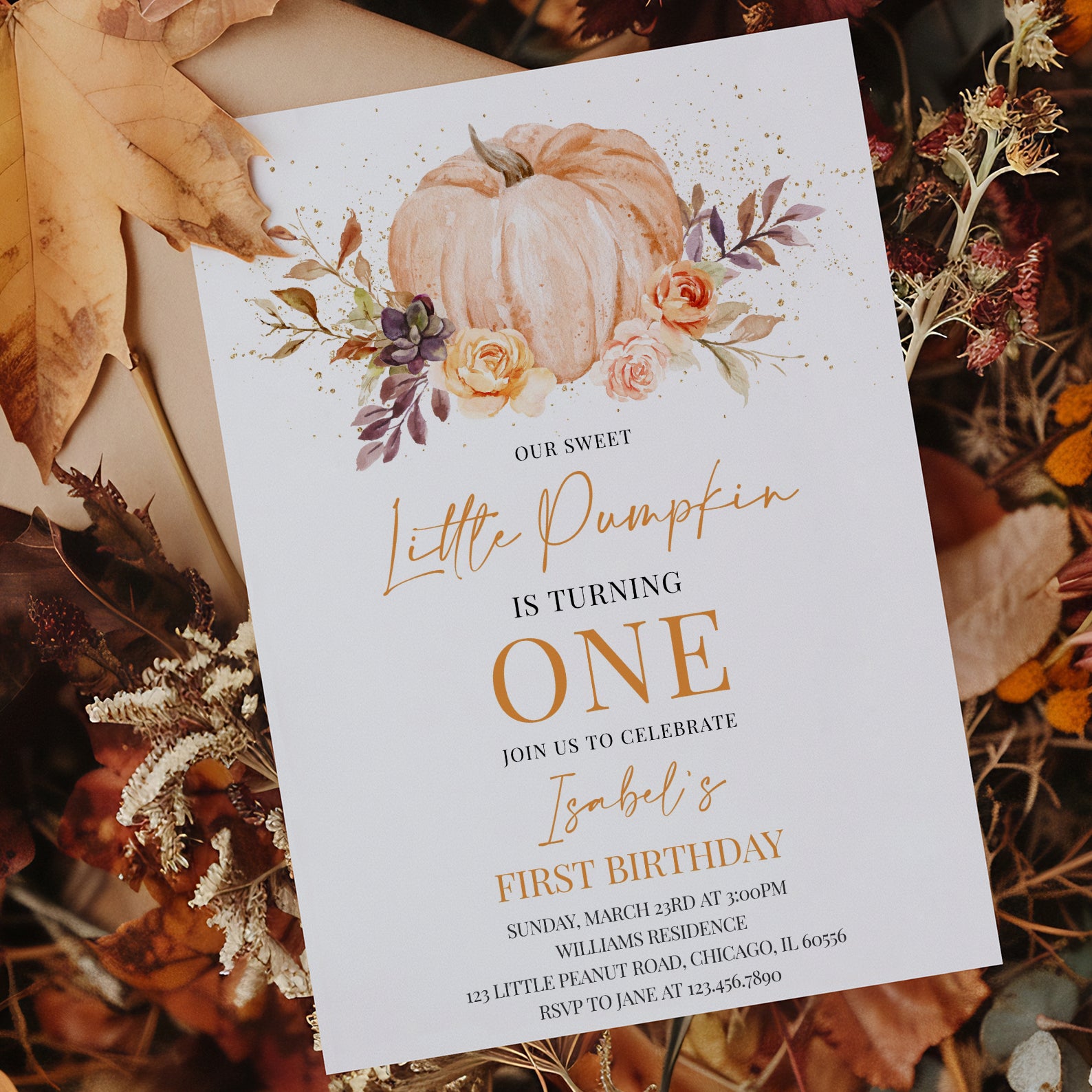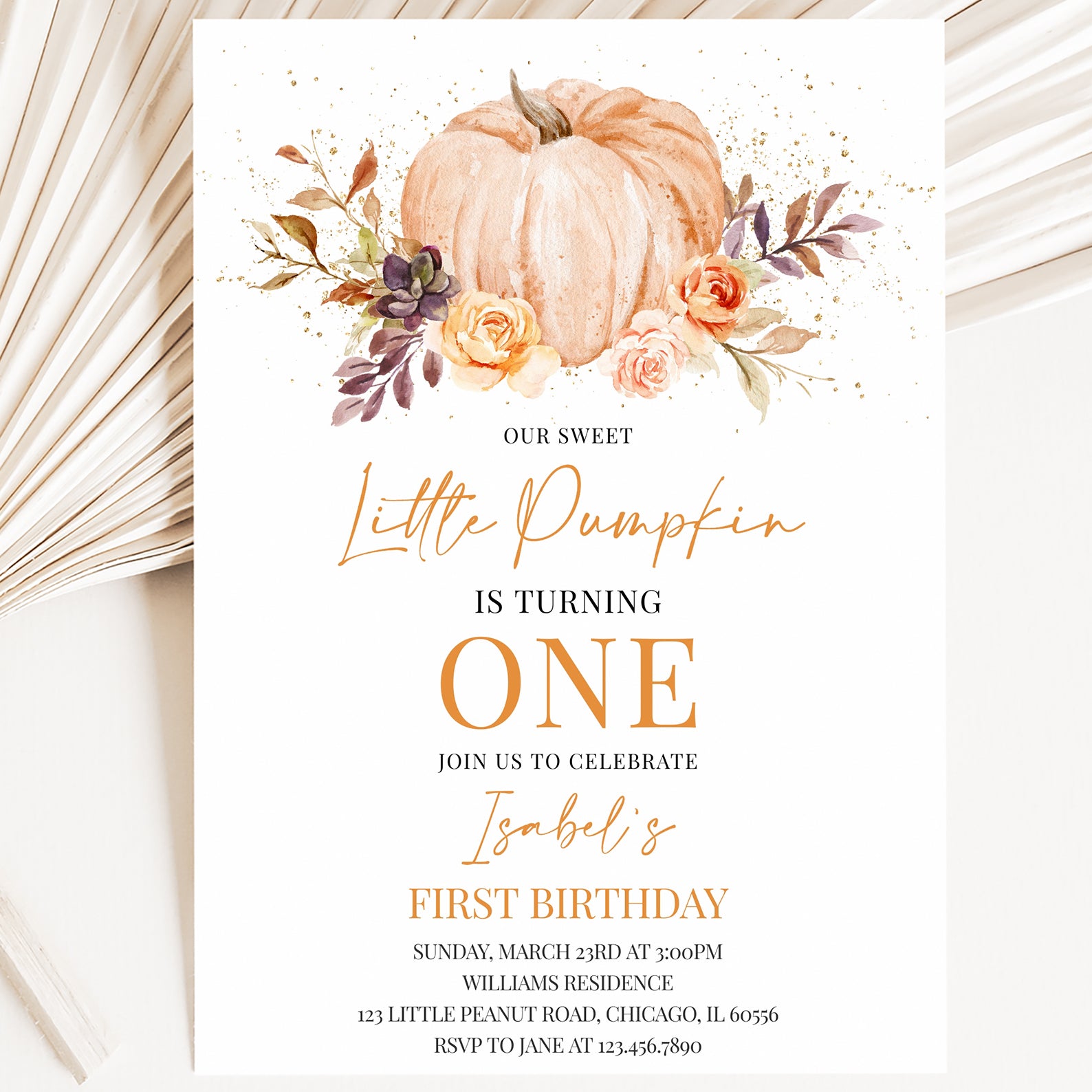 Sweet Little Pumpkin 1st Birthday Fall Invitation