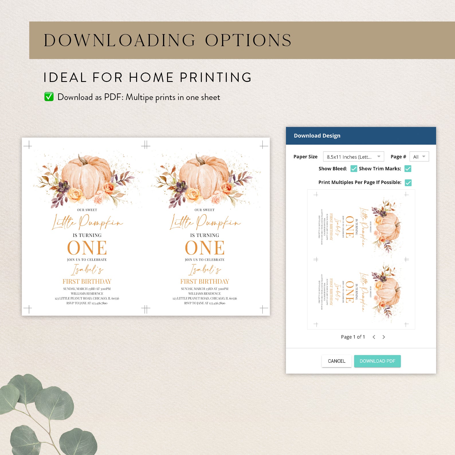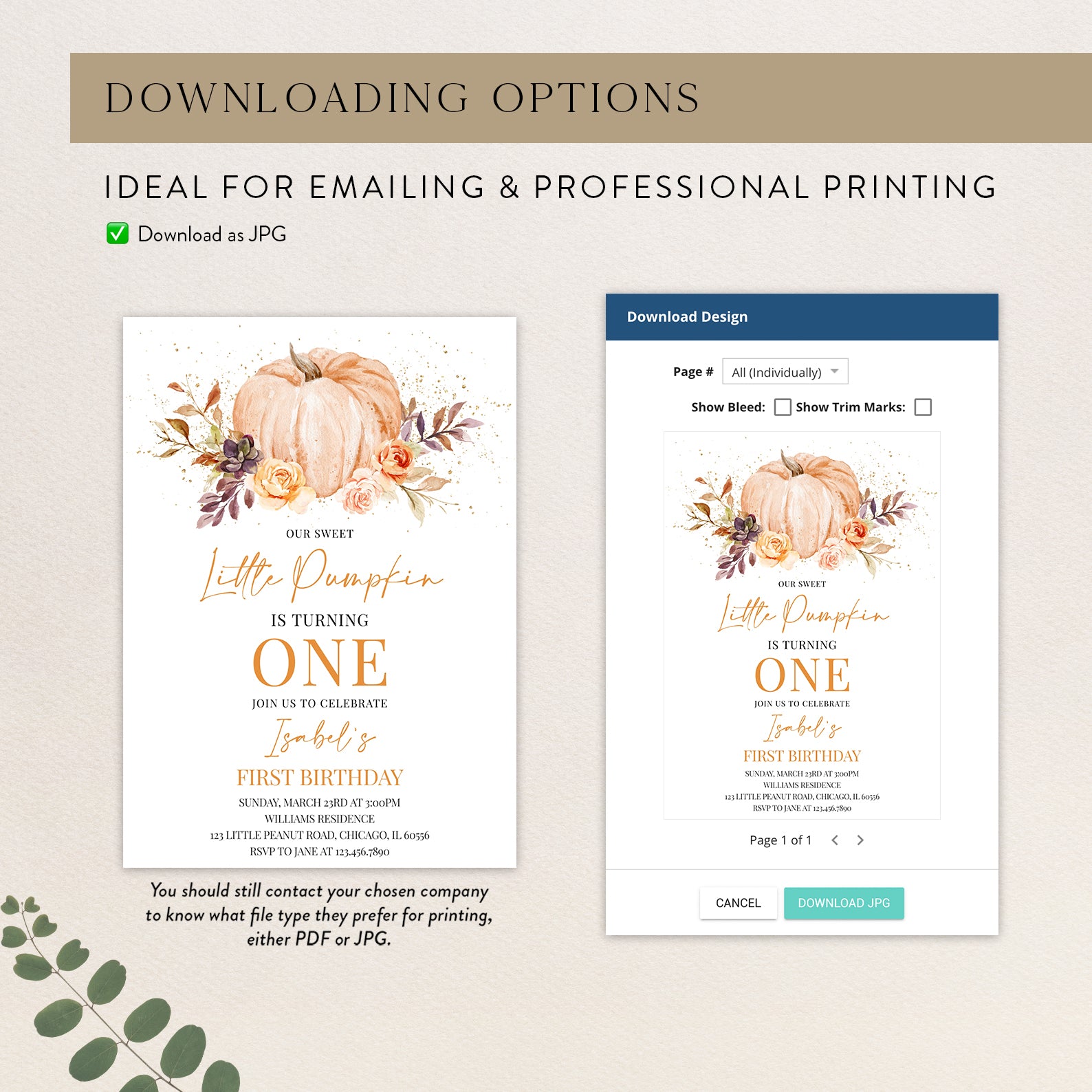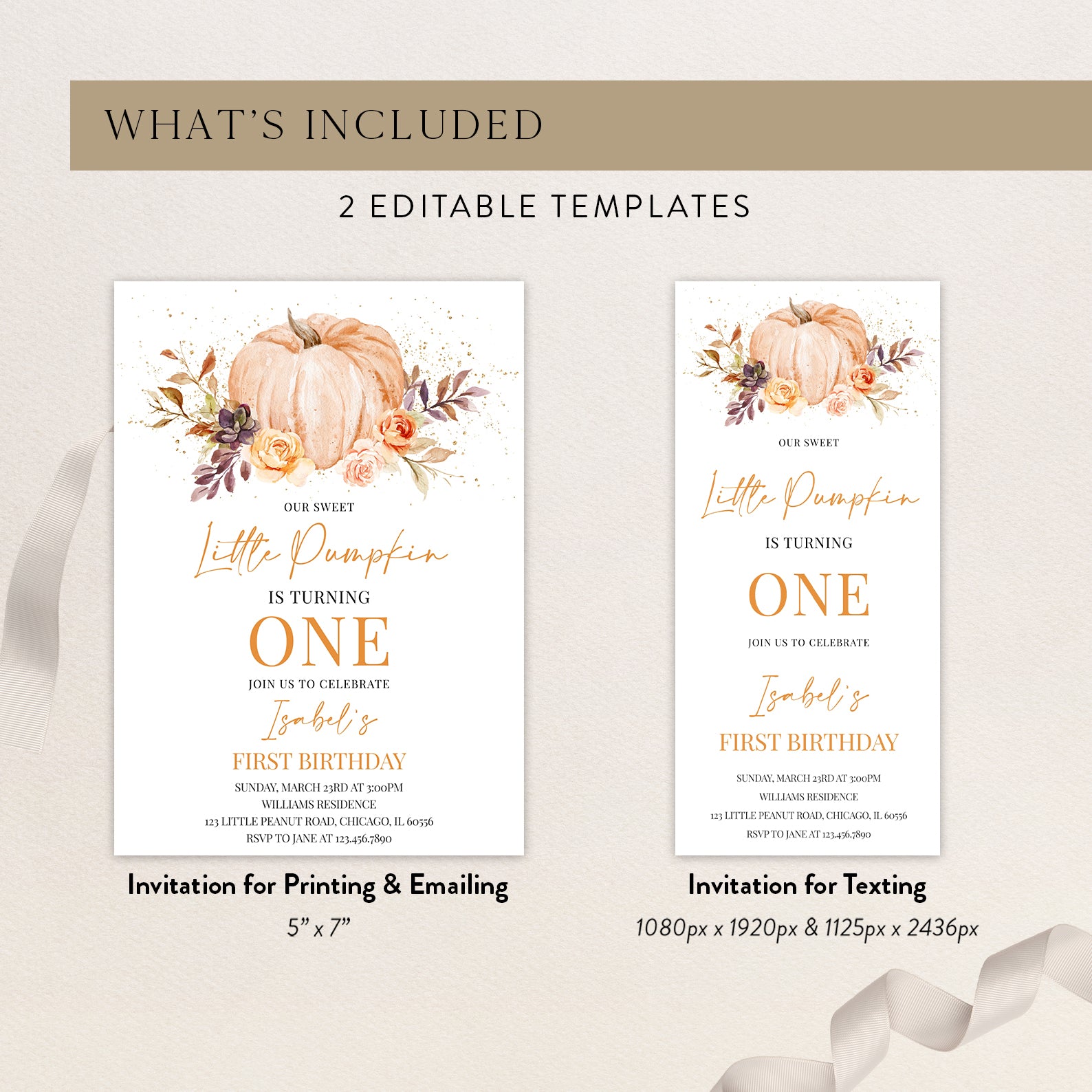 1. Purchase this Sweet Little Pumpkin 1st Birthday Fall Invitation template