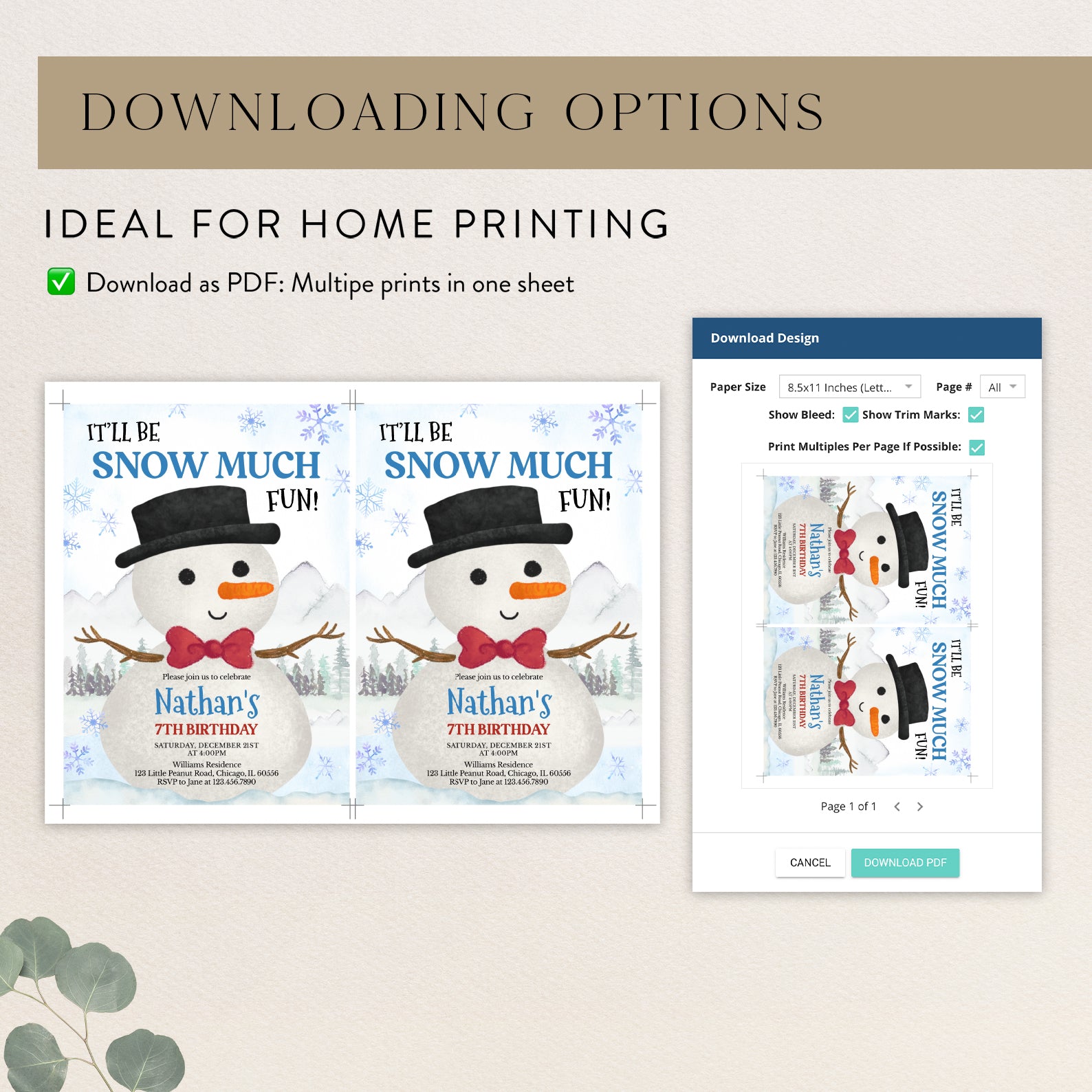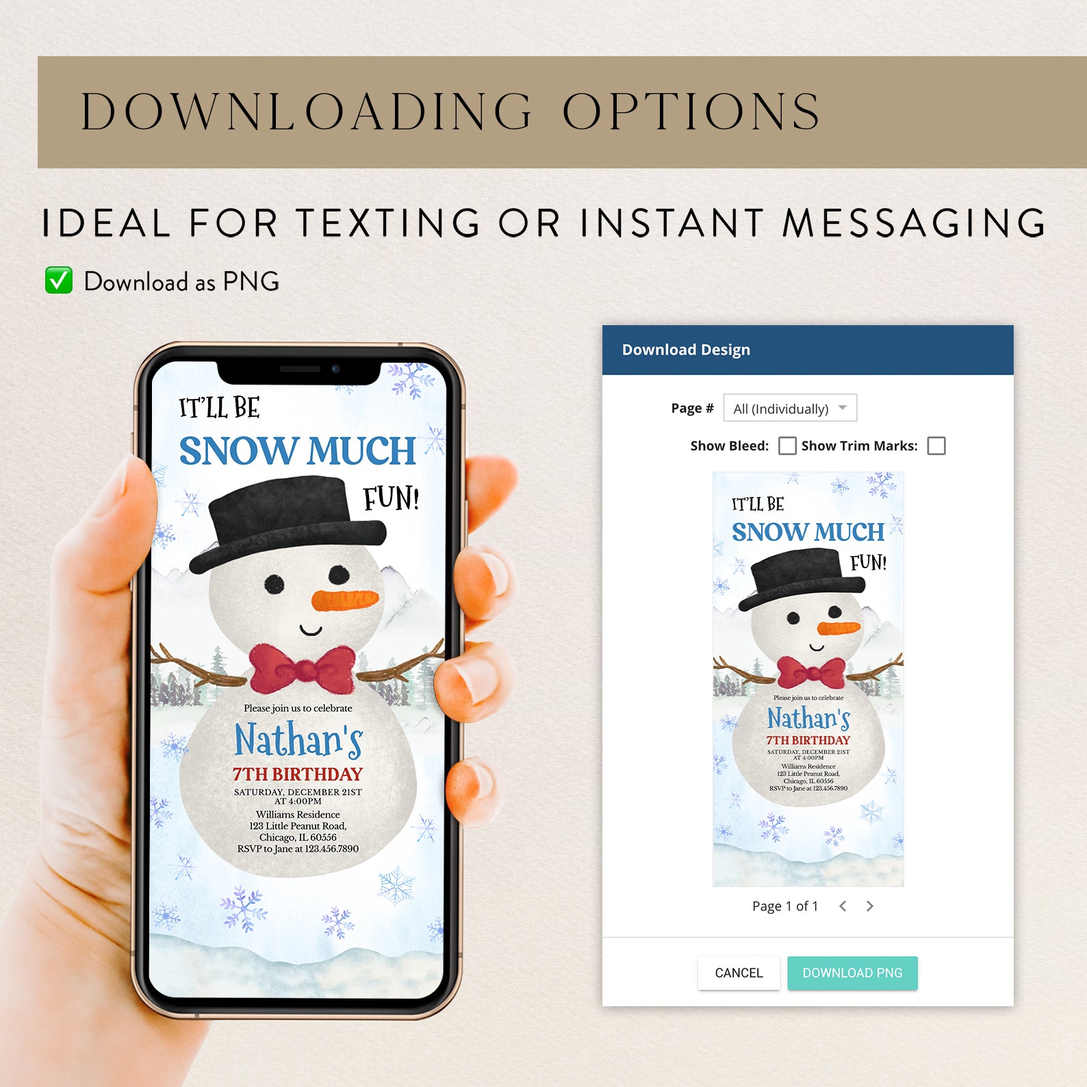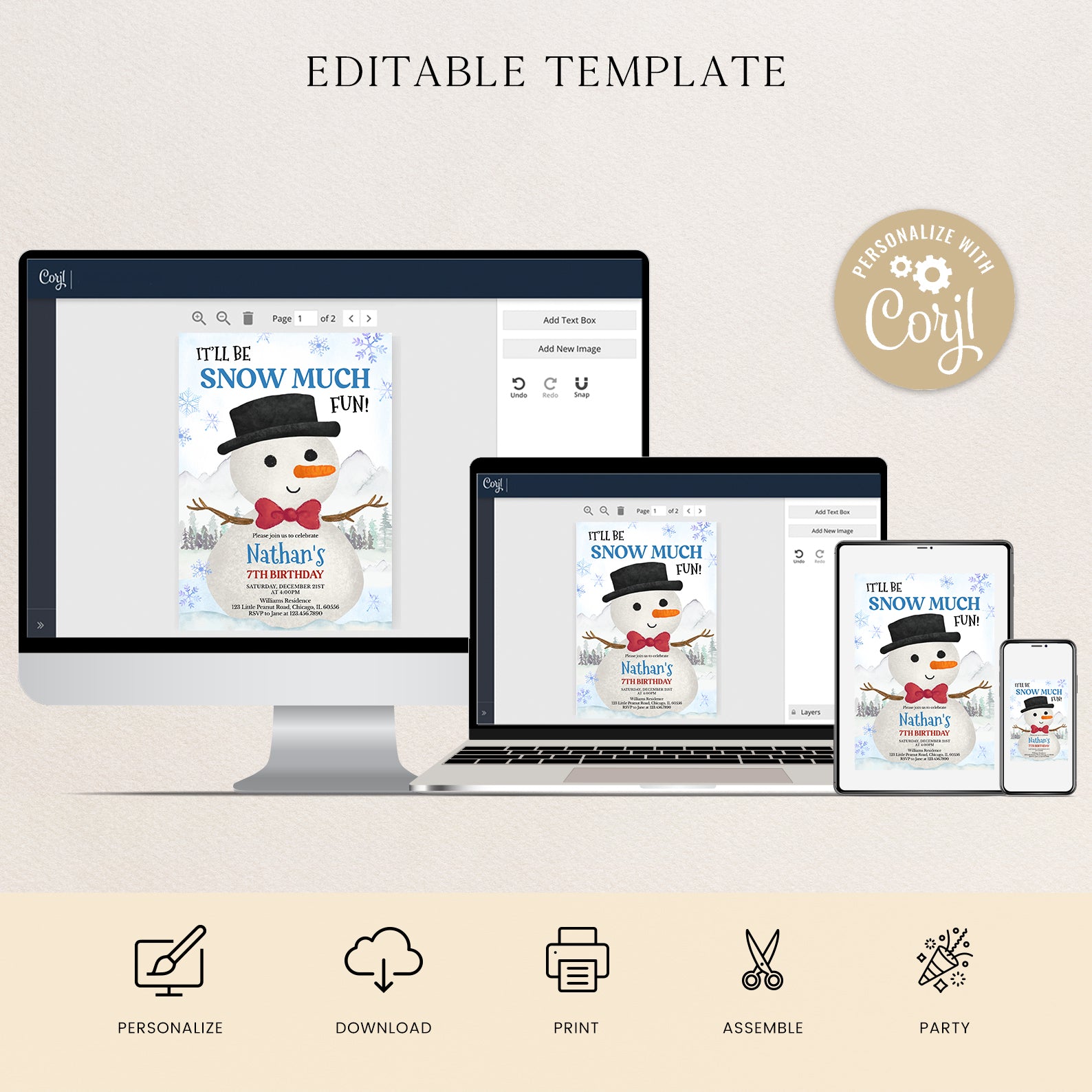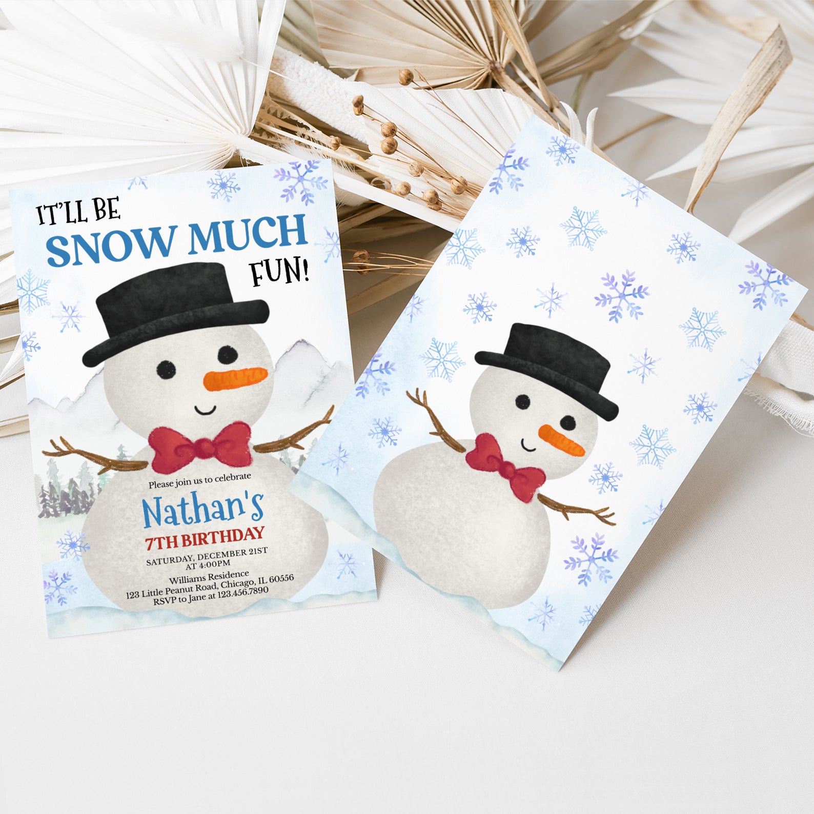 - Purchase this Snow Much Fun 7th Birthday Invite: Snowman Winter Scene template