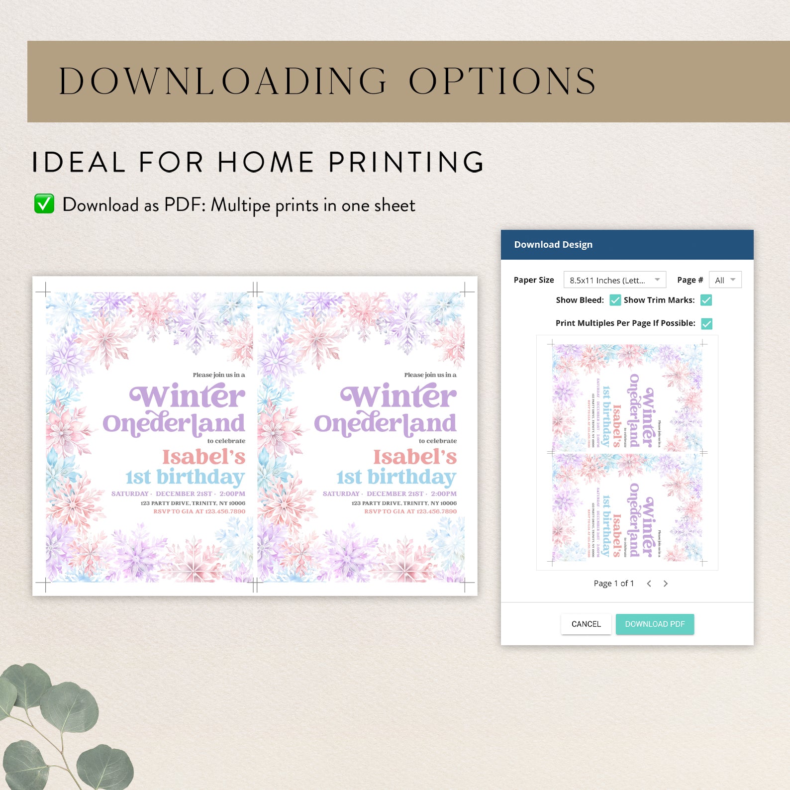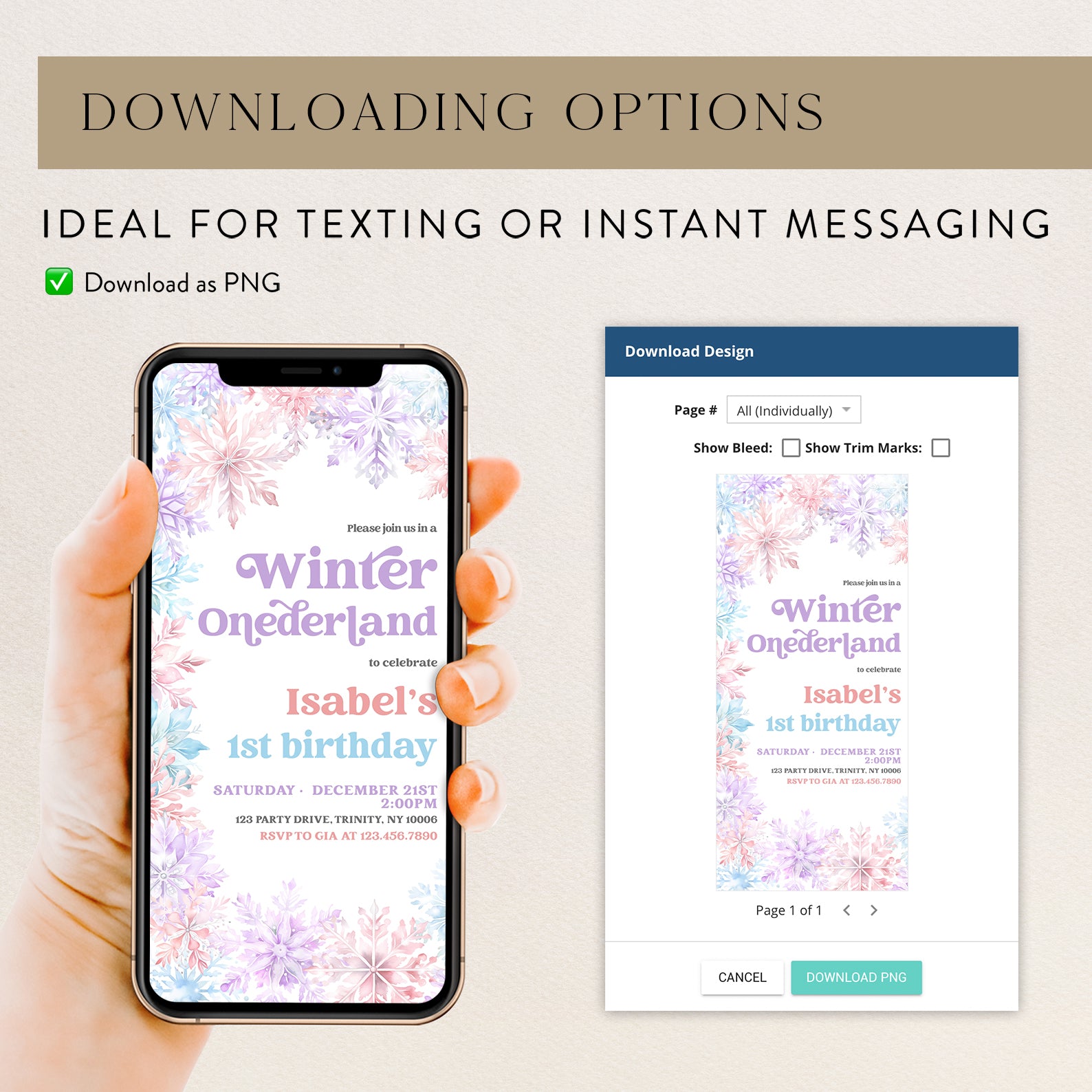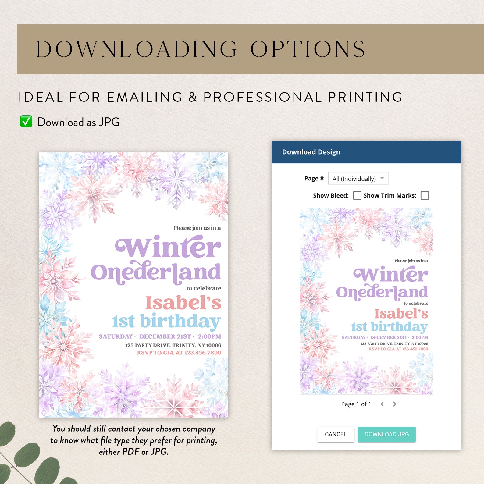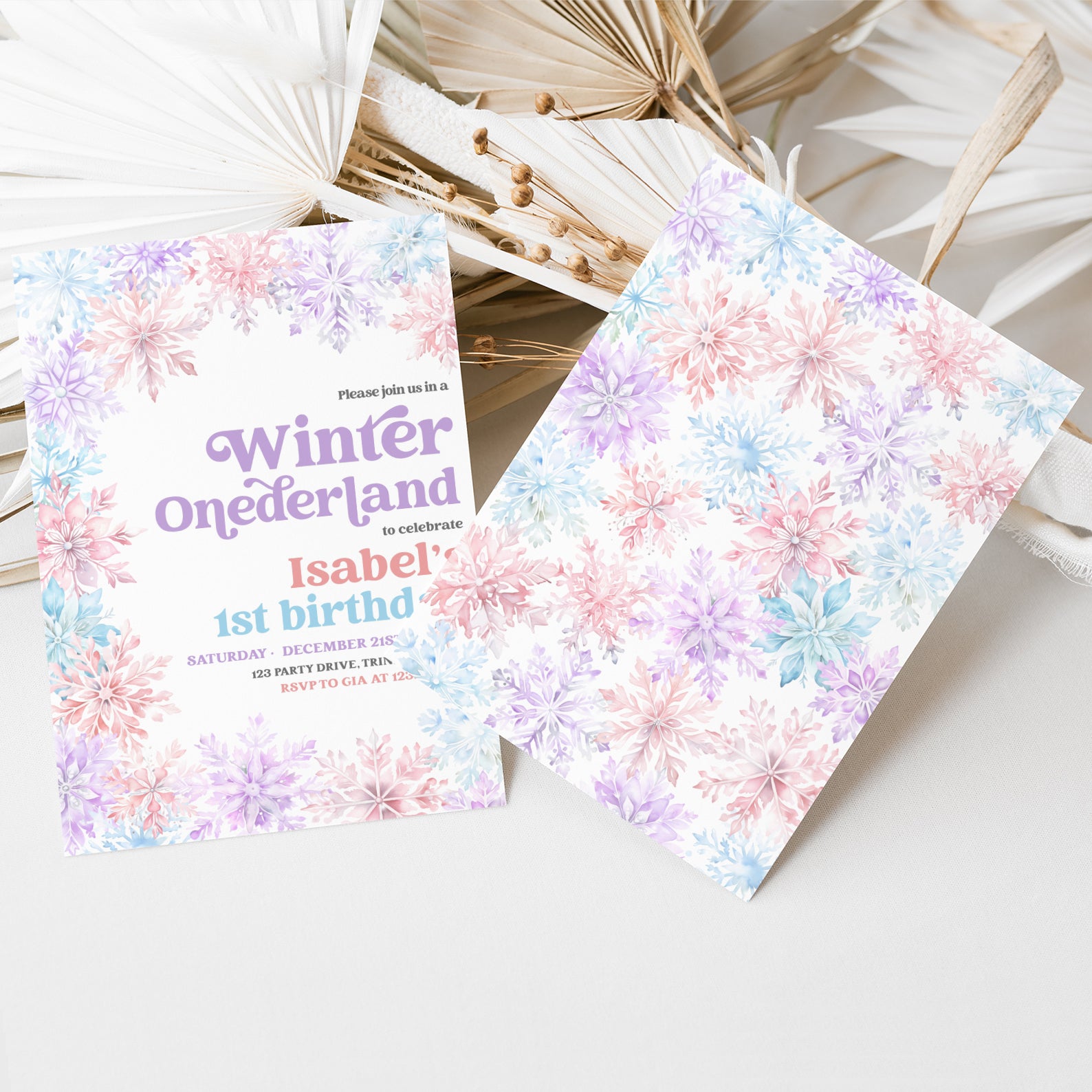 - Purchase this Winter ONEderland 1st Birthday Invite: Pastel Snowflake Theme template