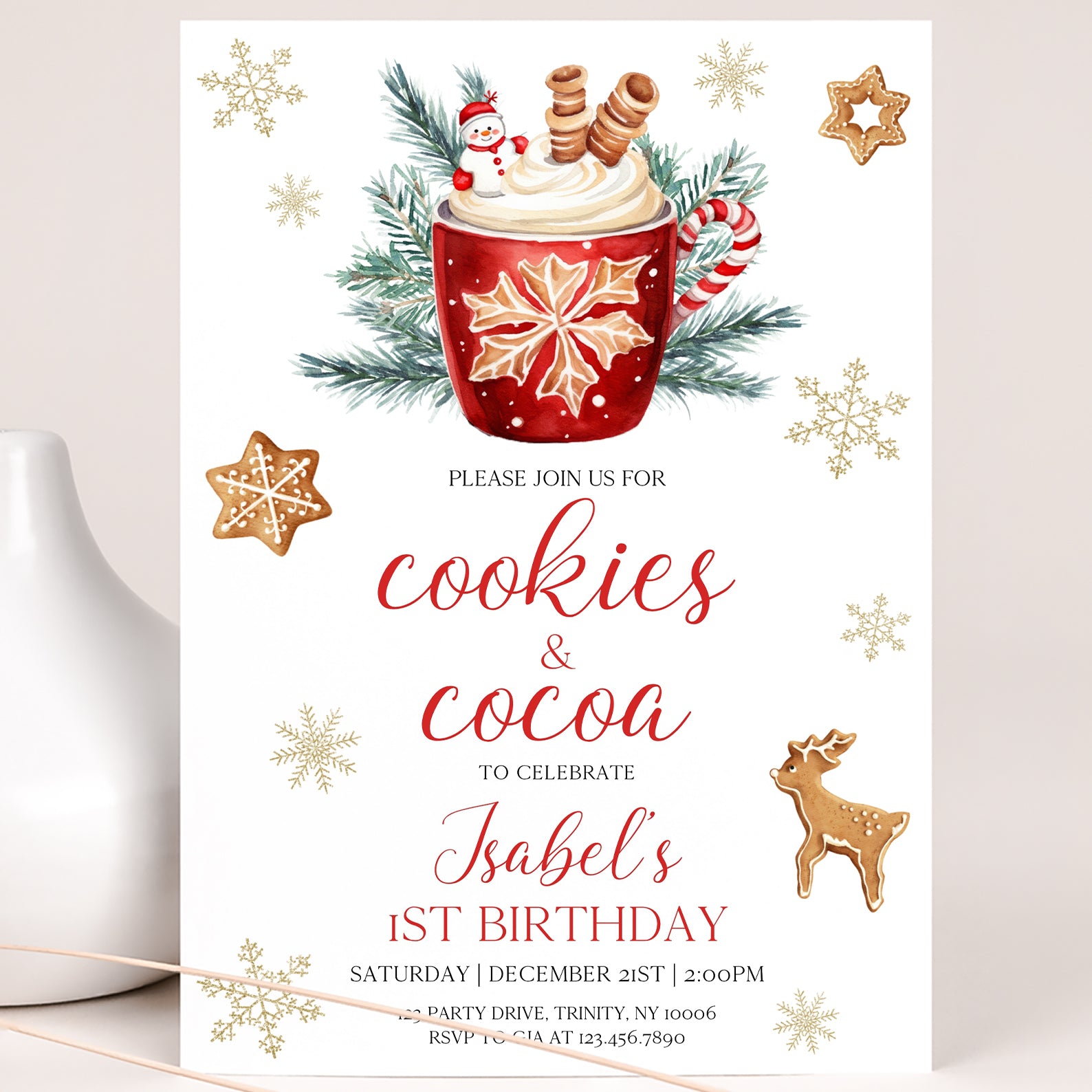 Cookies & Cocoa Winter 1st Birthday Invitation