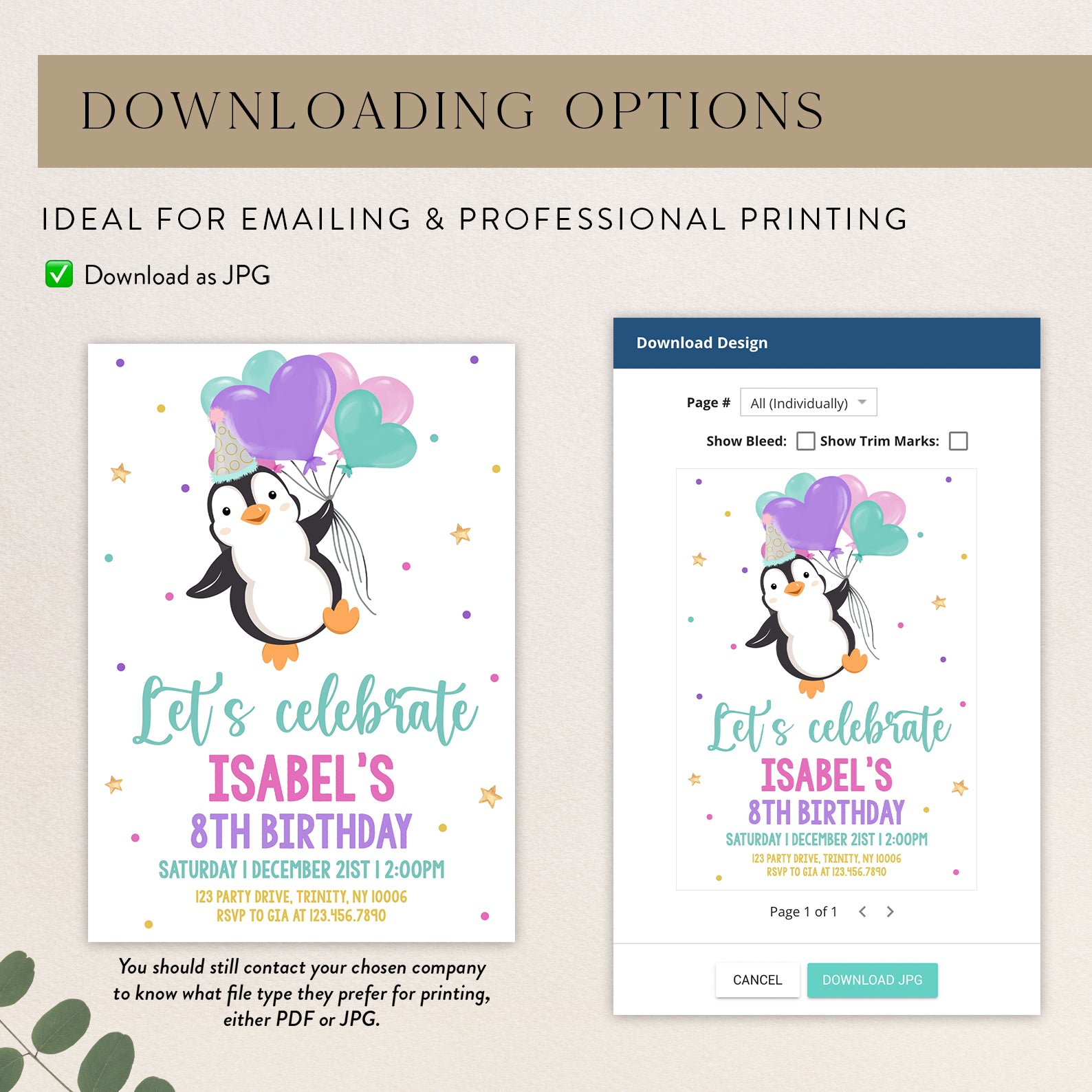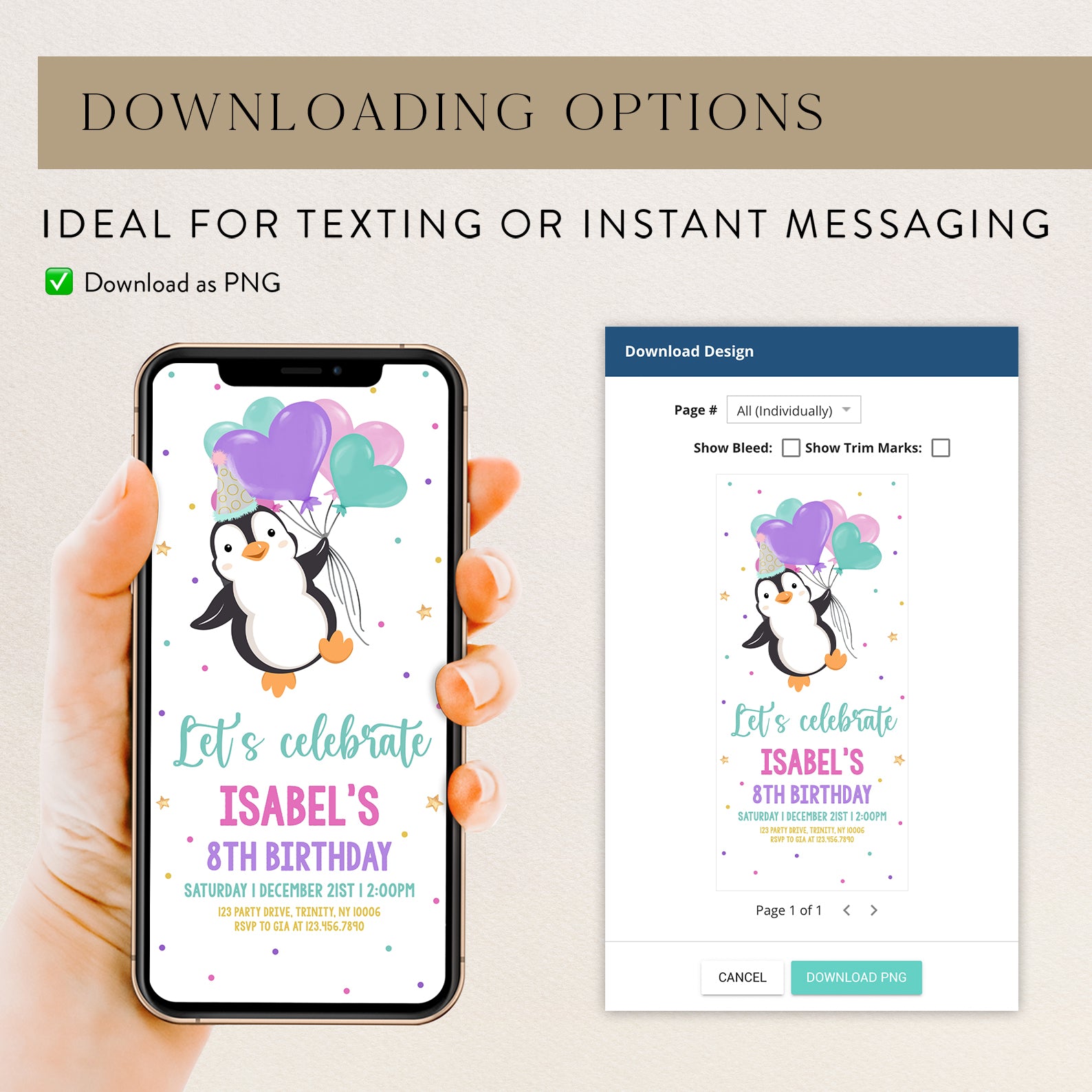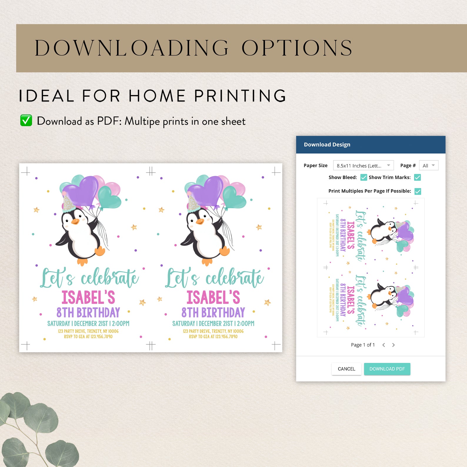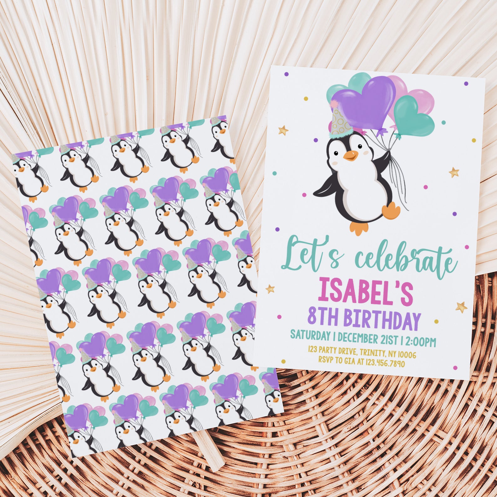- Purchase this Winter Penguin 8th Birthday Invite: Party Hat & Balloons template