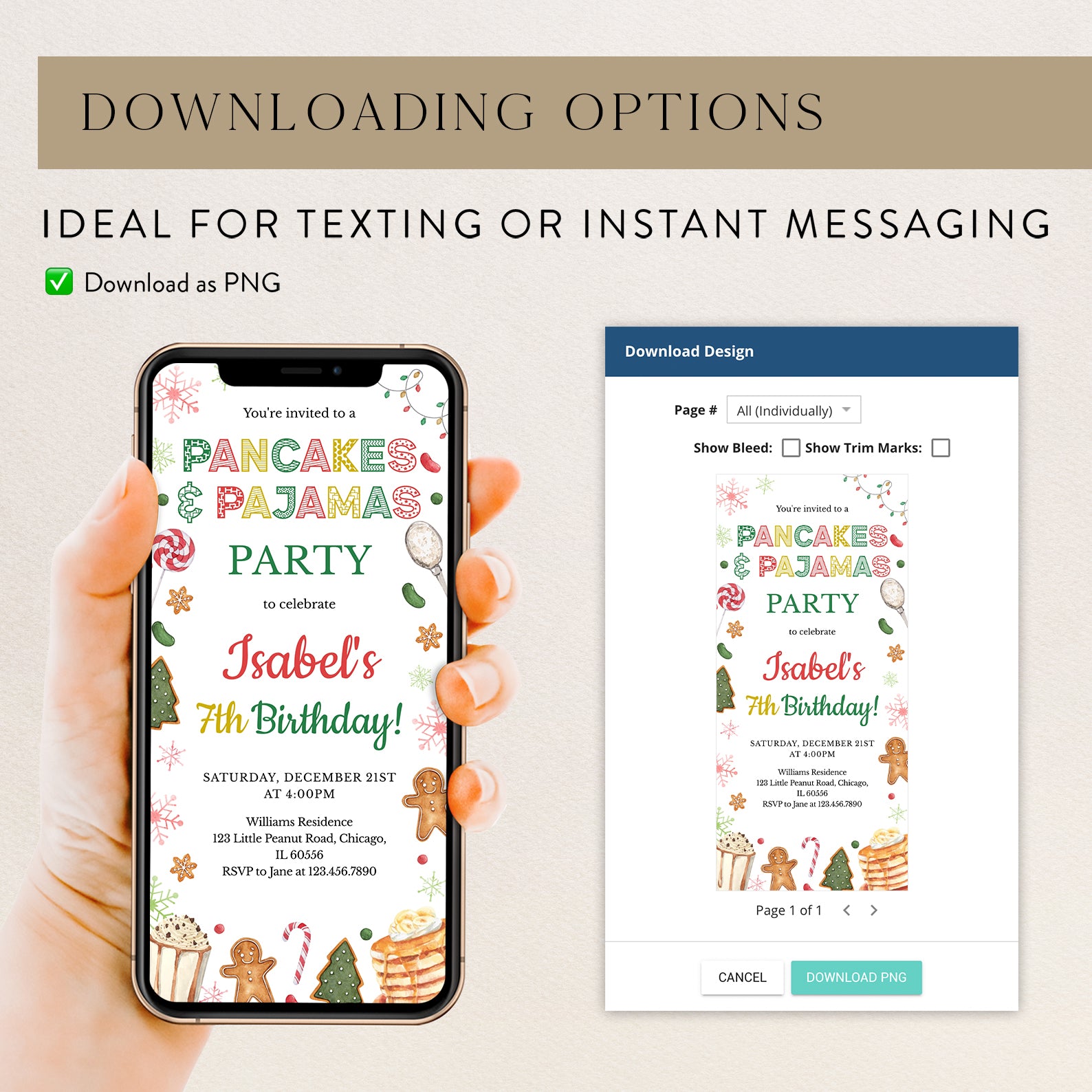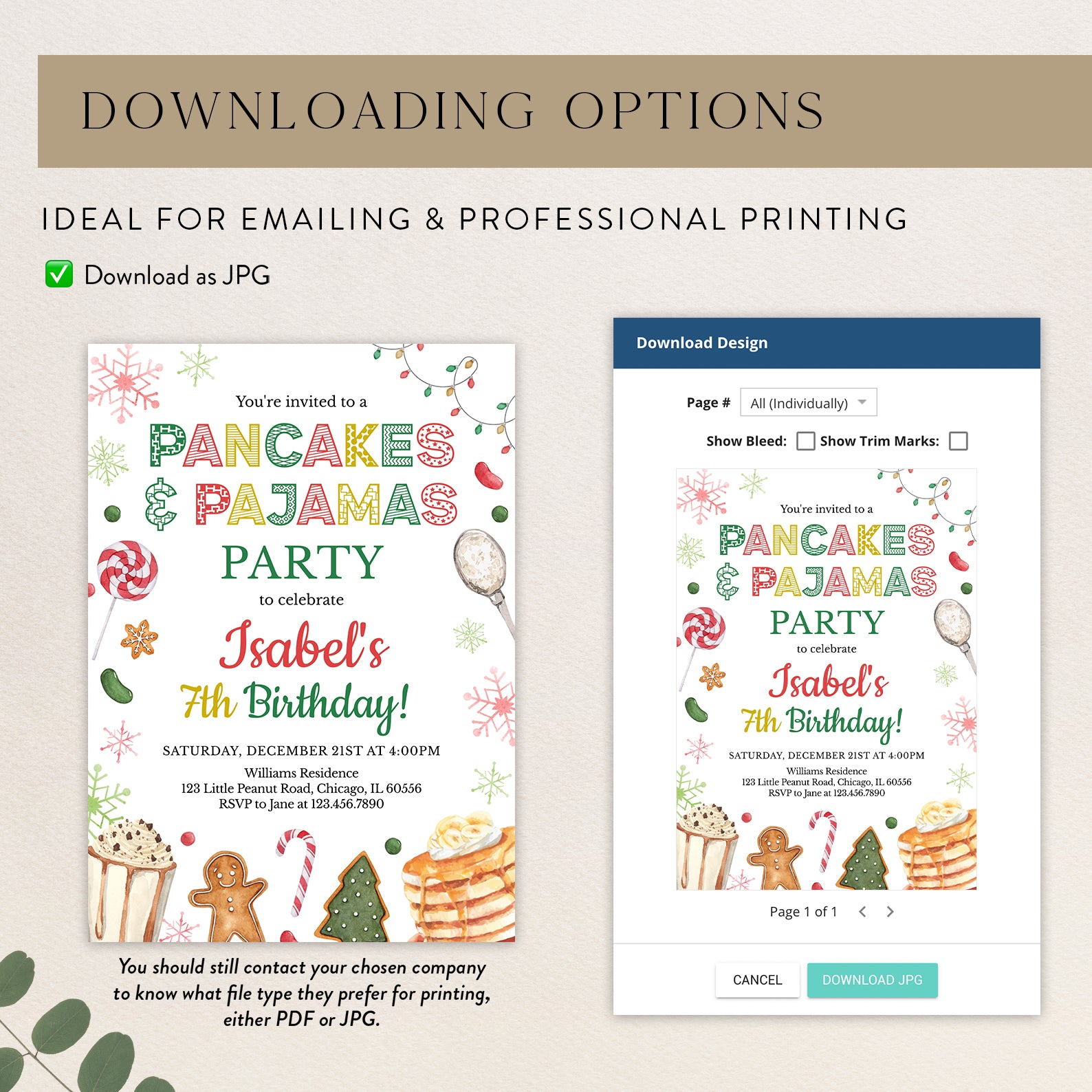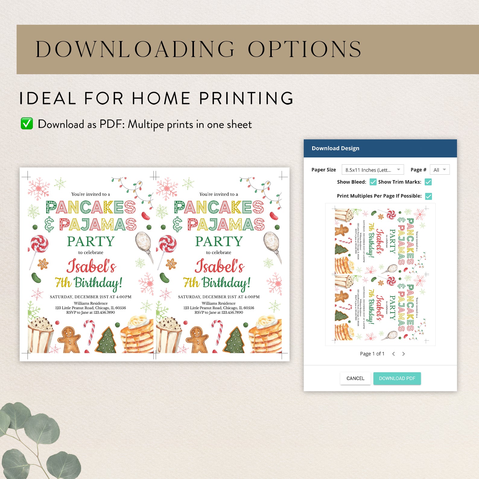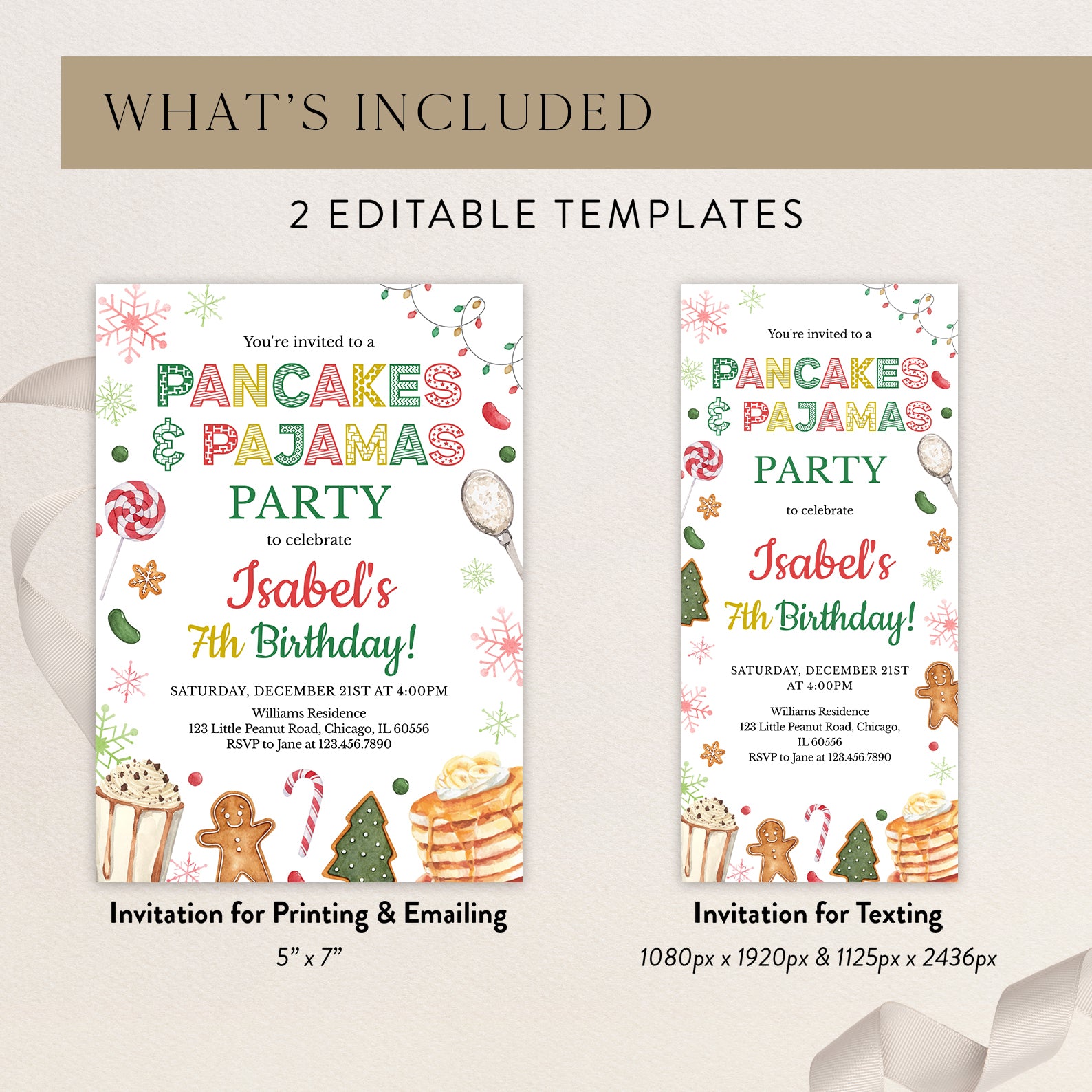 - Purchase this Winter 7th Birthday Invite: Pancakes & Pajamas Fun template