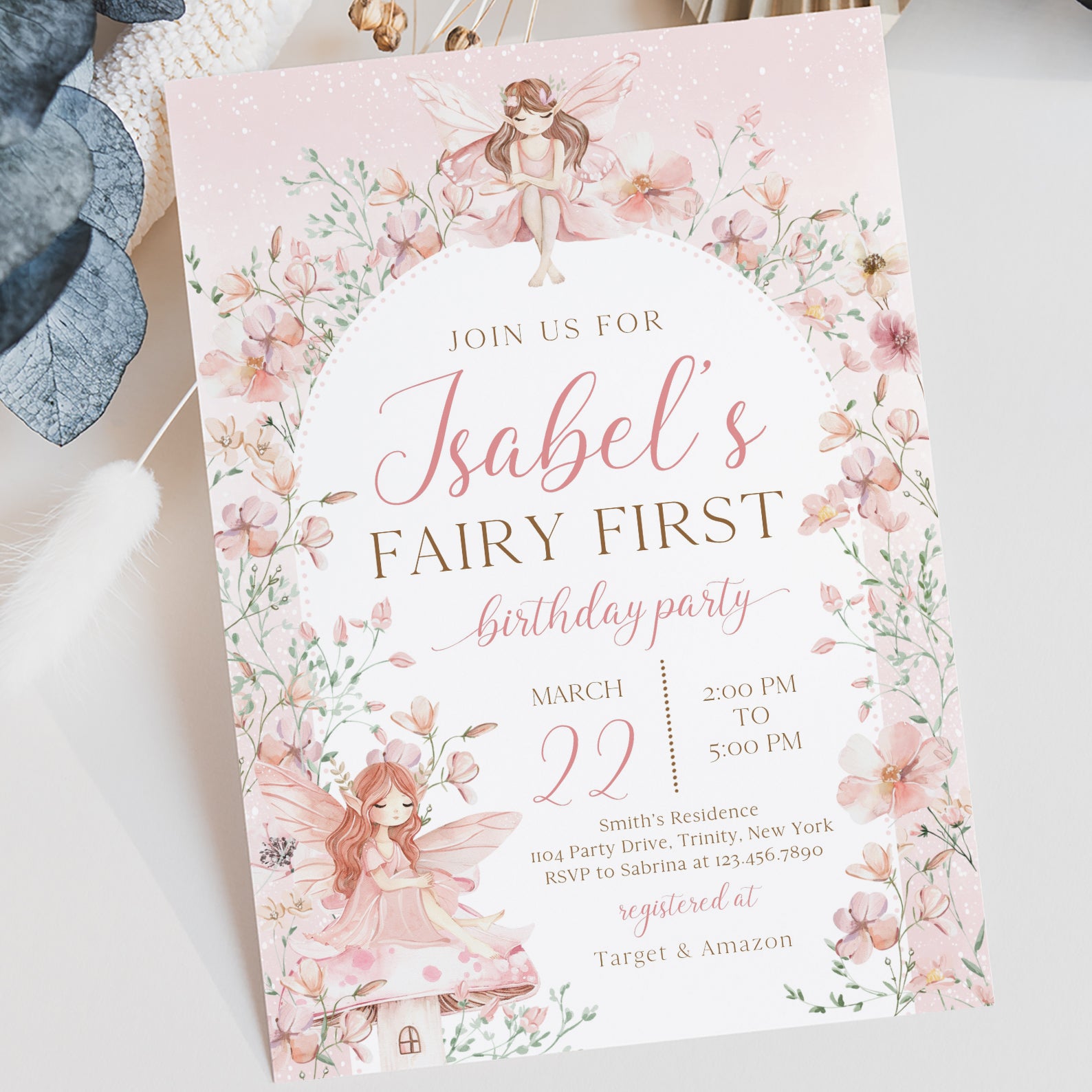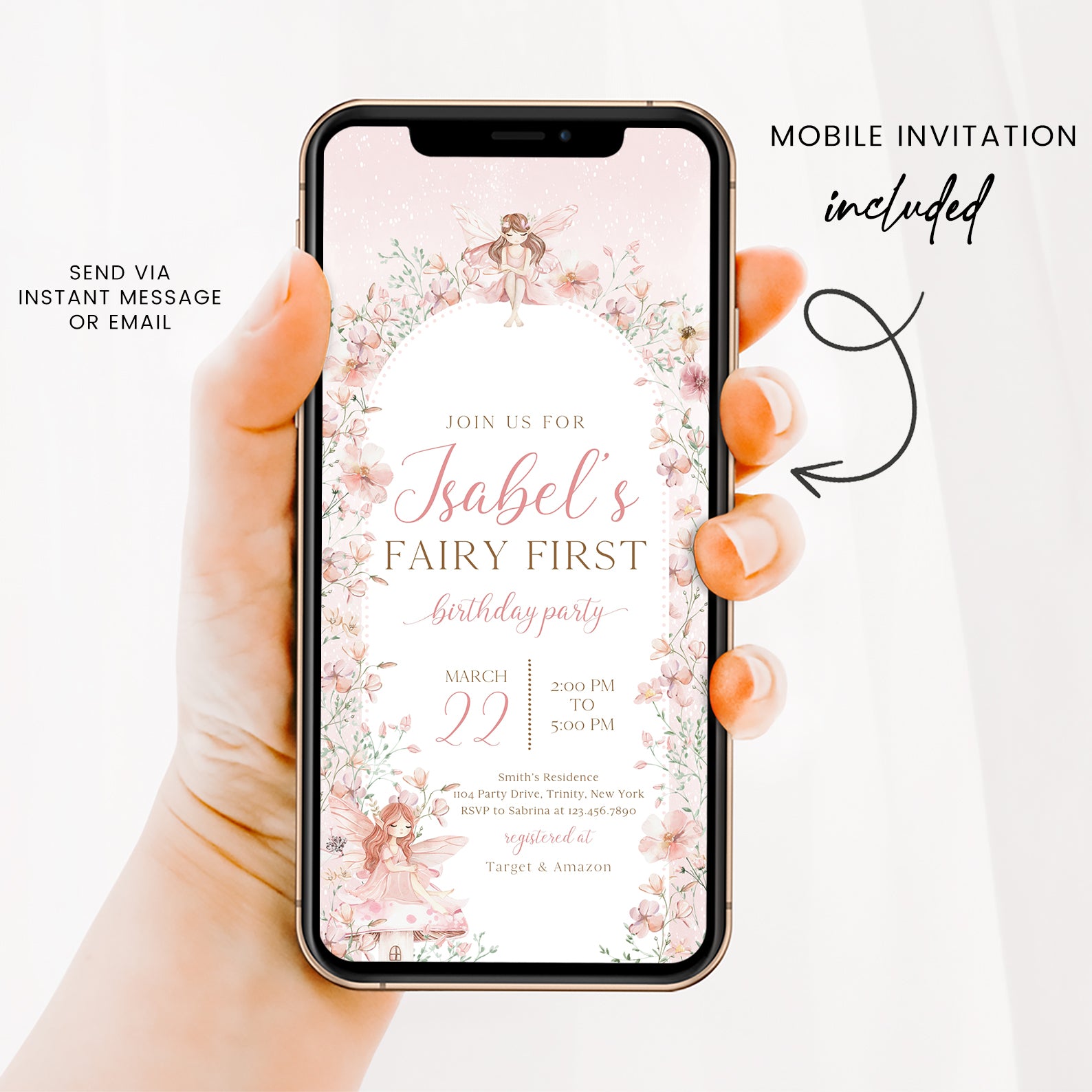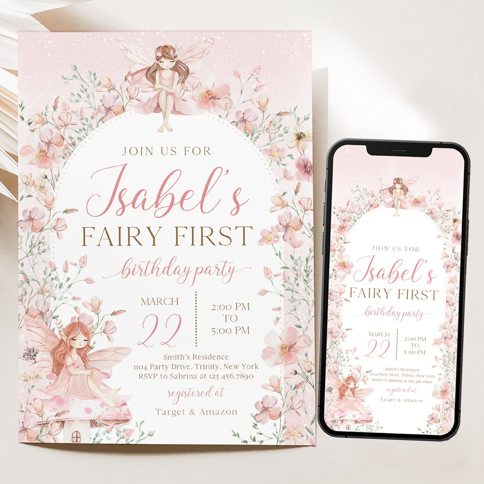 Celebrate your little one's first birthday with our enchanting spring birthday digital invitation! Designed in a delightful pink theme, this invitation features whimsical florals and charming fairies, perfectly capturing the magic of childhood. Ideal for a fairy-themed party, it sets the tone for a joyful celebration filled with laughter and wonder. Make your child's special day unforgettable with this beautifully crafted invitation that invites friends and family to join in the fun!