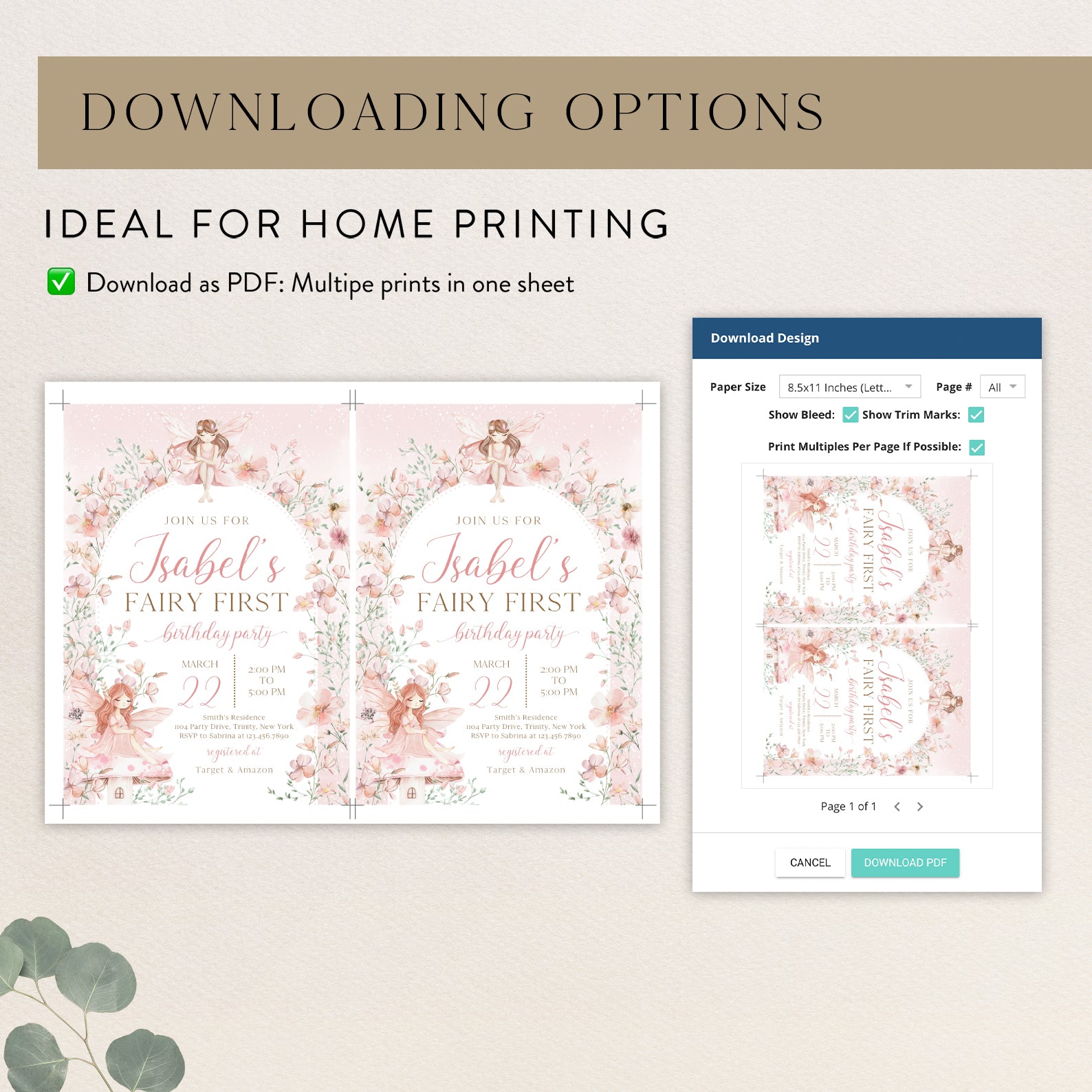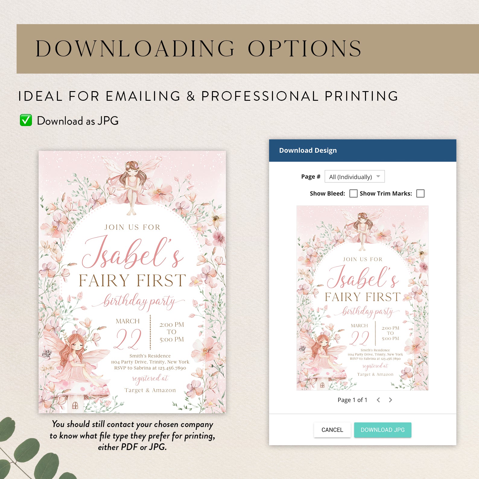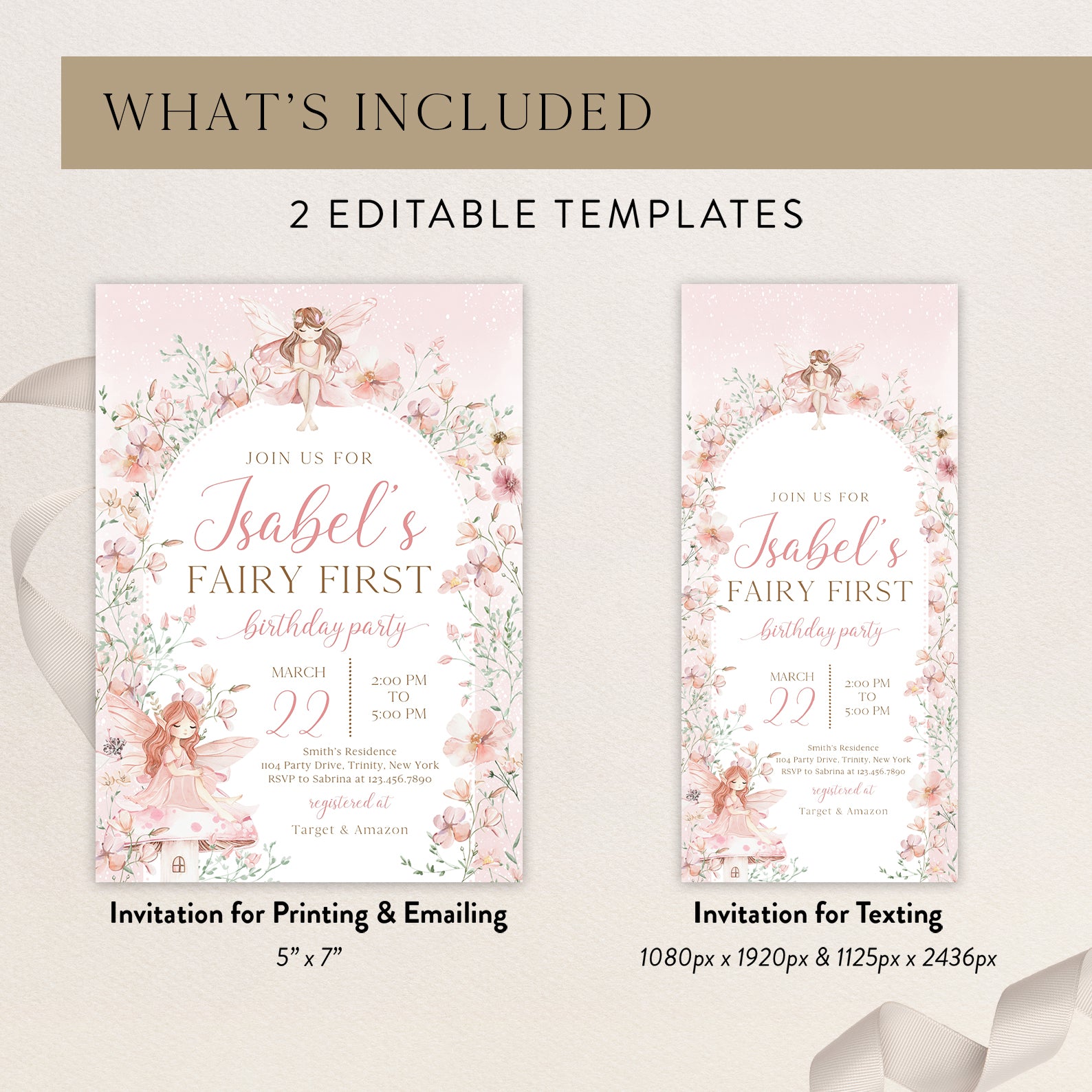 1. Purchase this Pink Fairy First Birthday Digital Invitation with Florals template