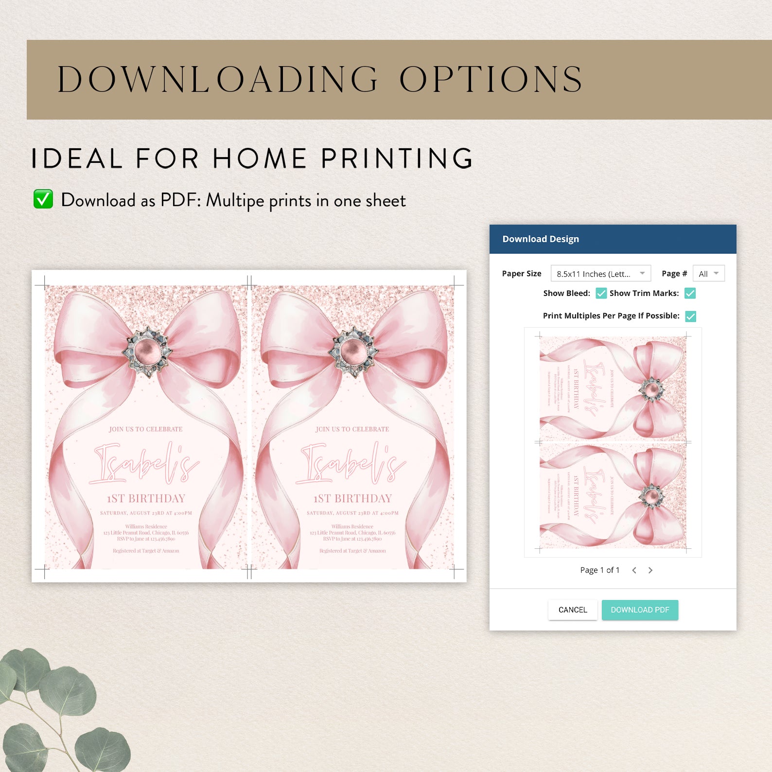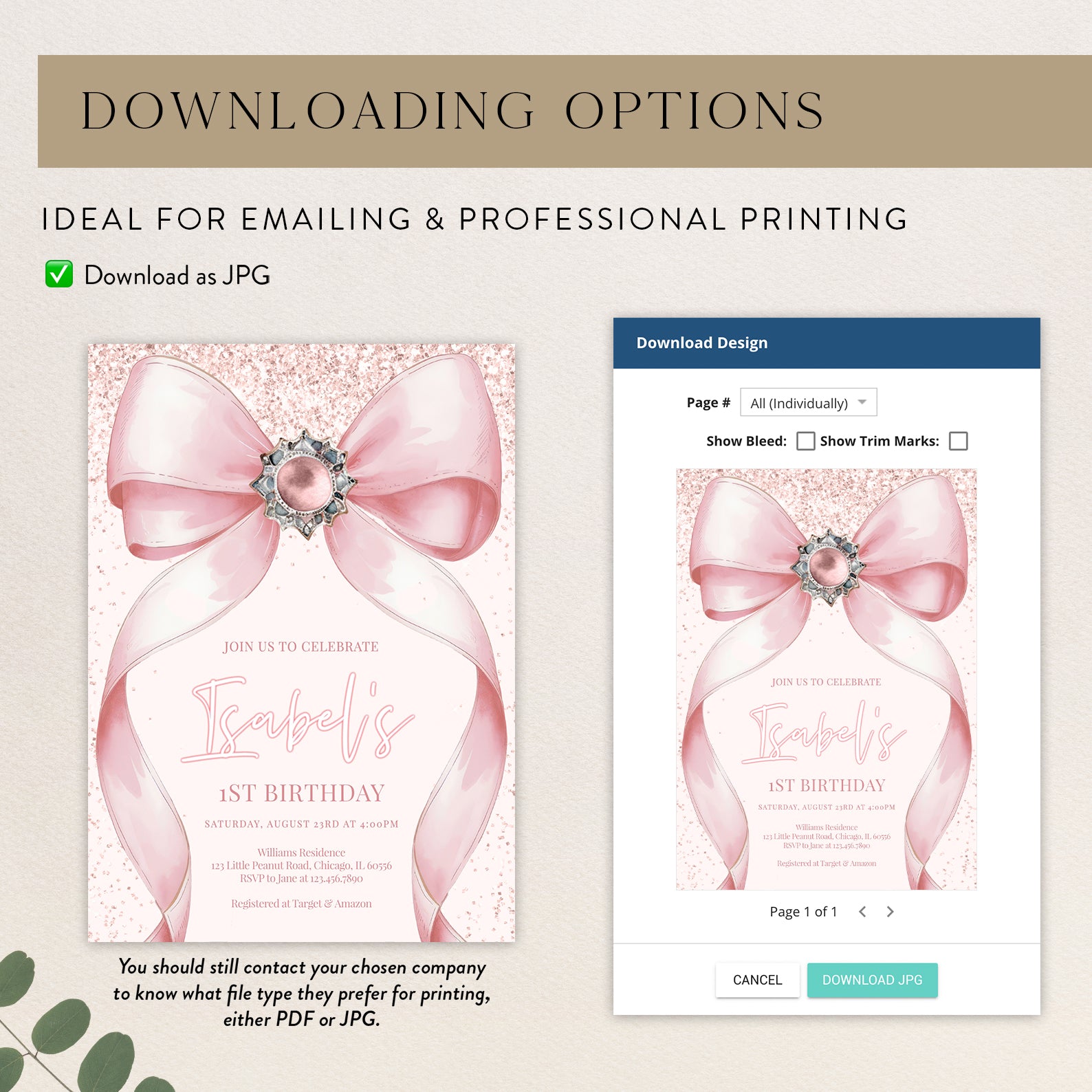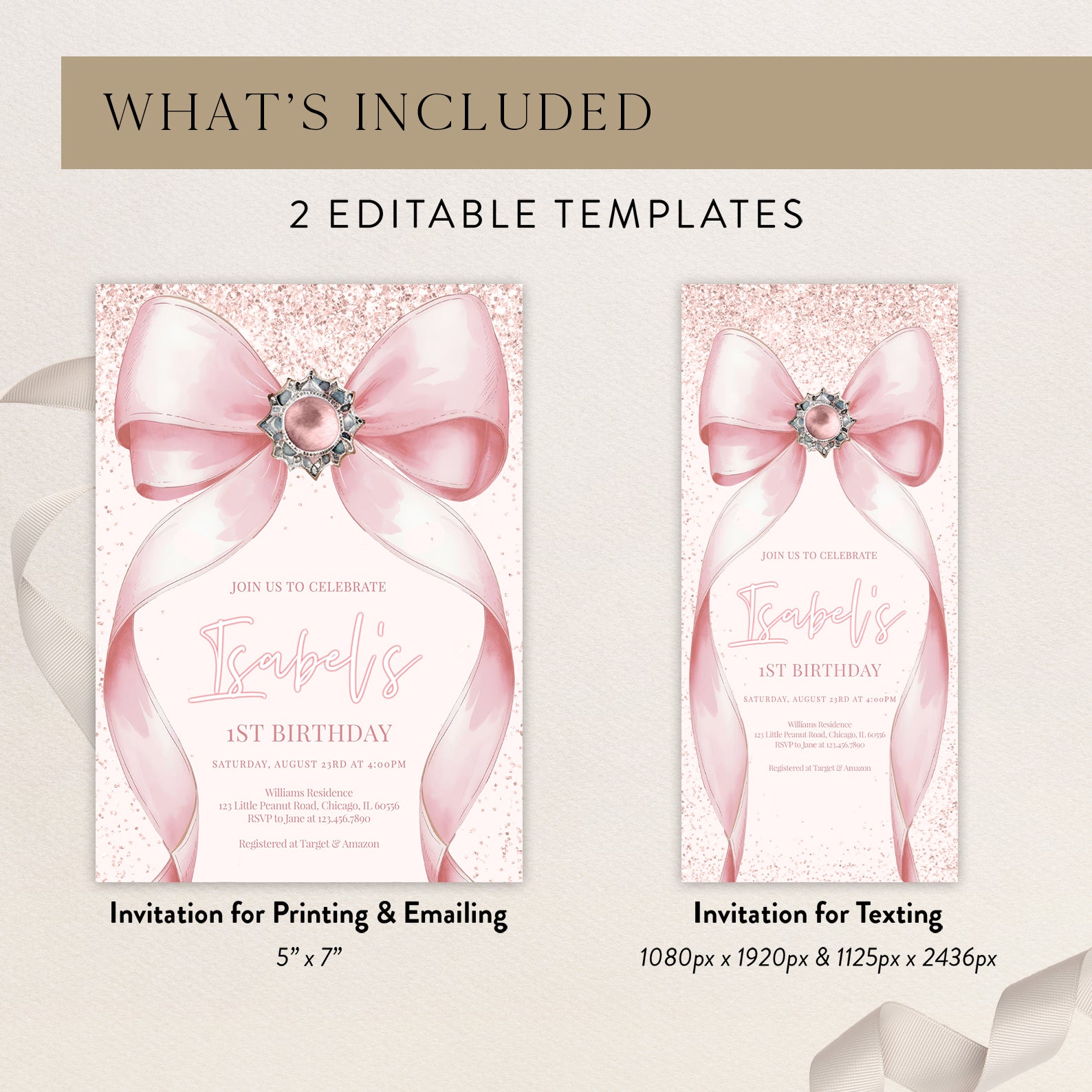 - Purchase this Pink Ribbon 1st Birthday Invite: Digital Girl Theme template