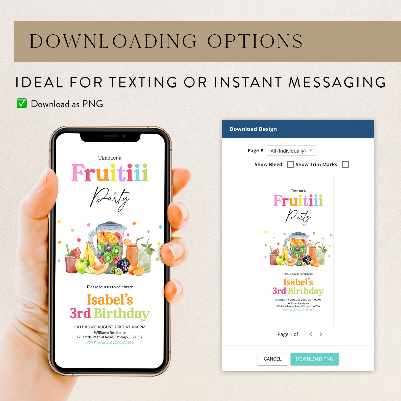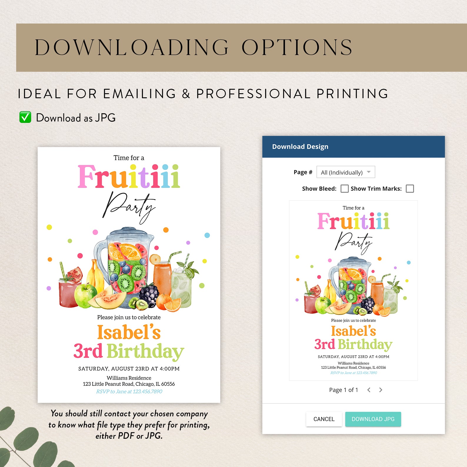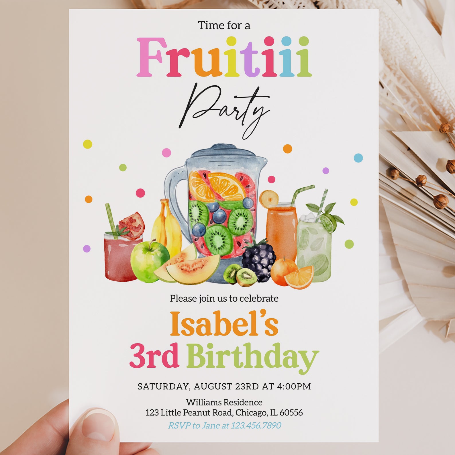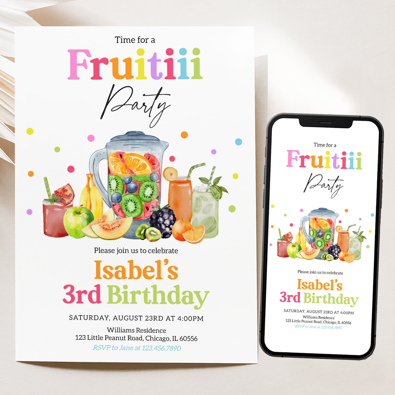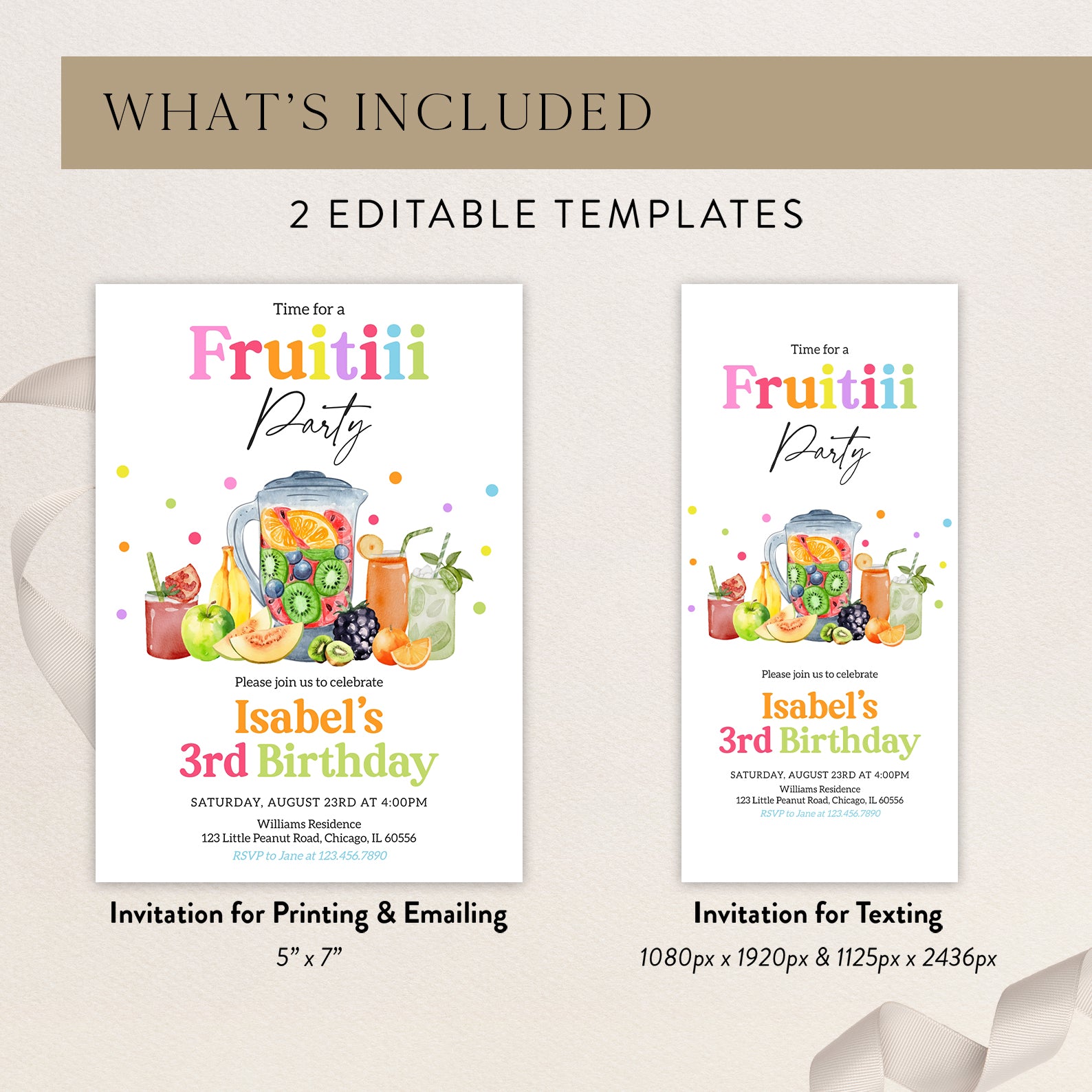 - Purchase this Fruity 3rd Birthday Digital Invite: Summer Fruit Theme template