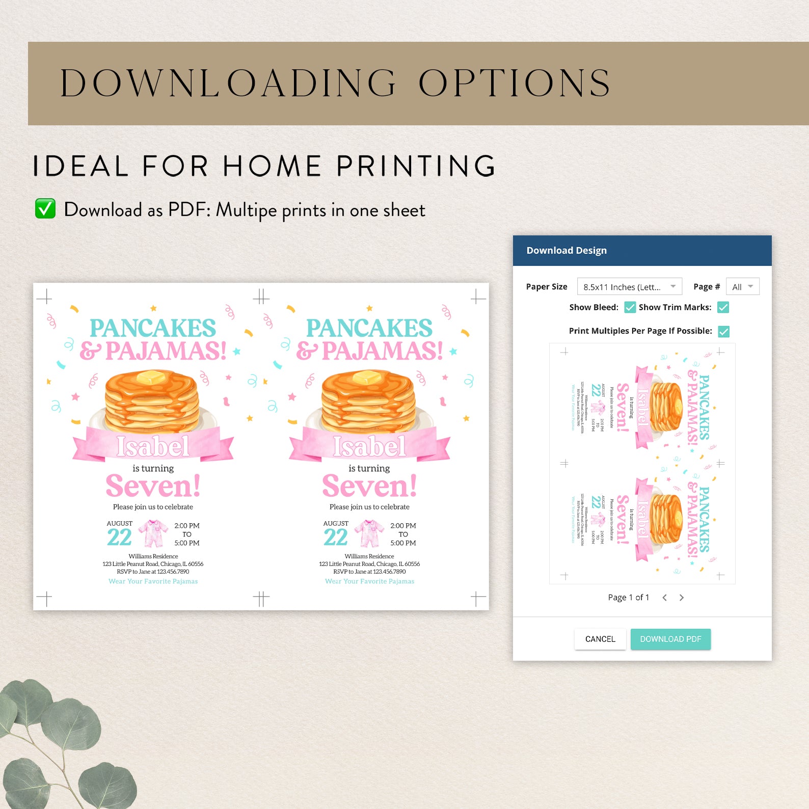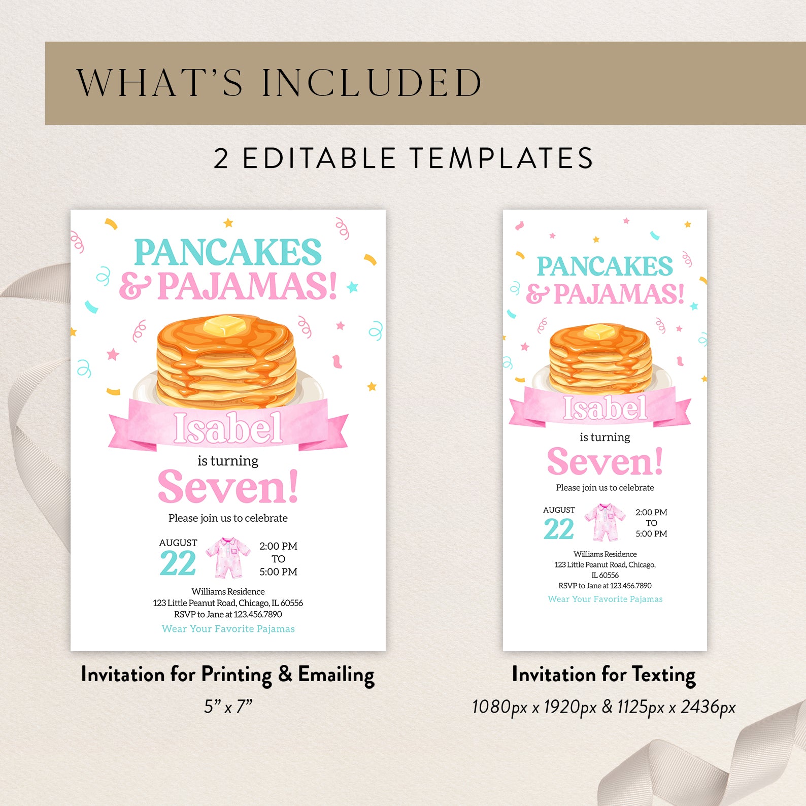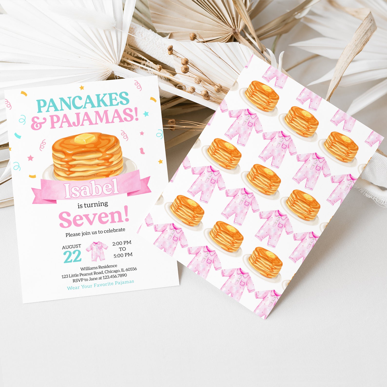 - Purchase this Pancakes & Pajamas 7th Birthday Invite: Confetti Fun template