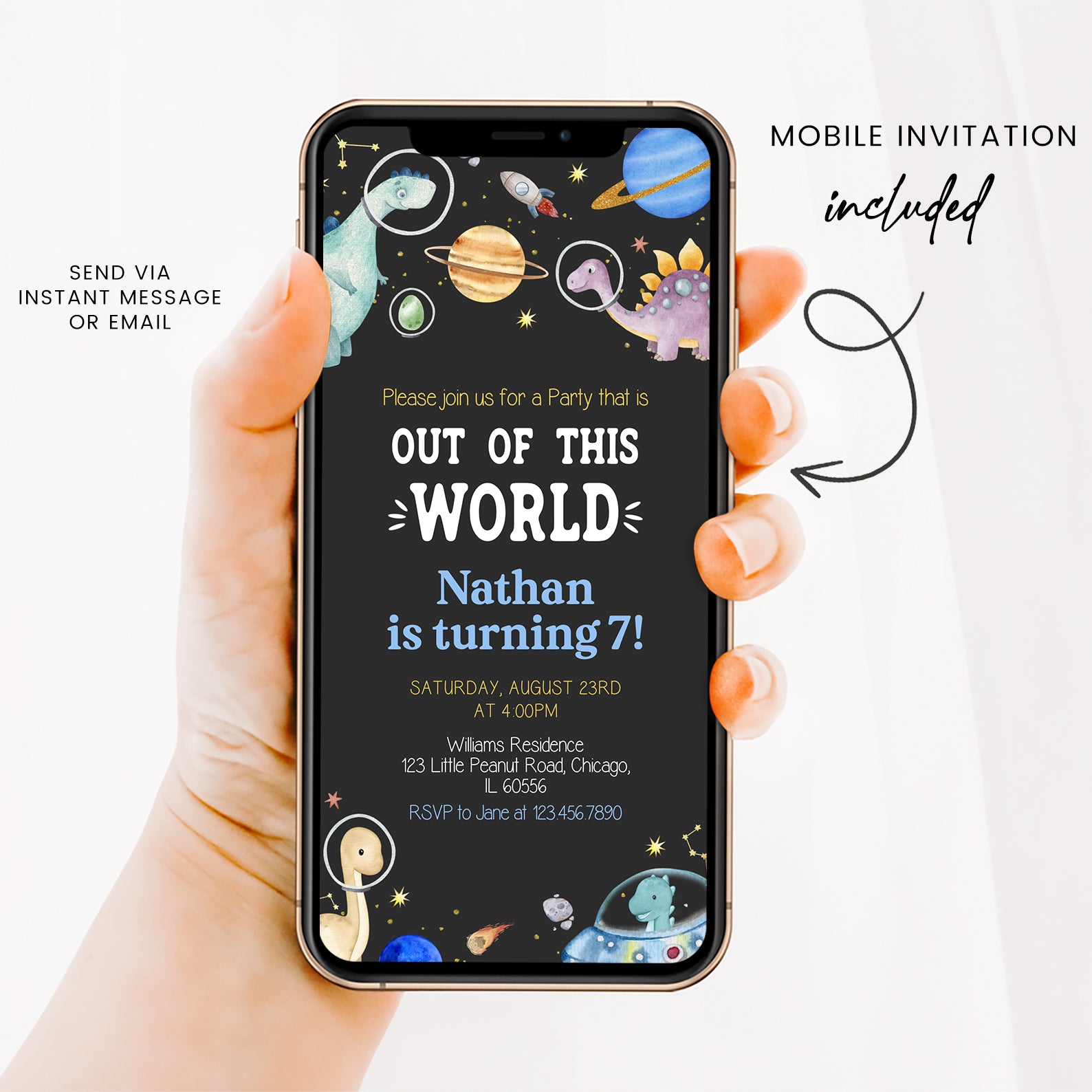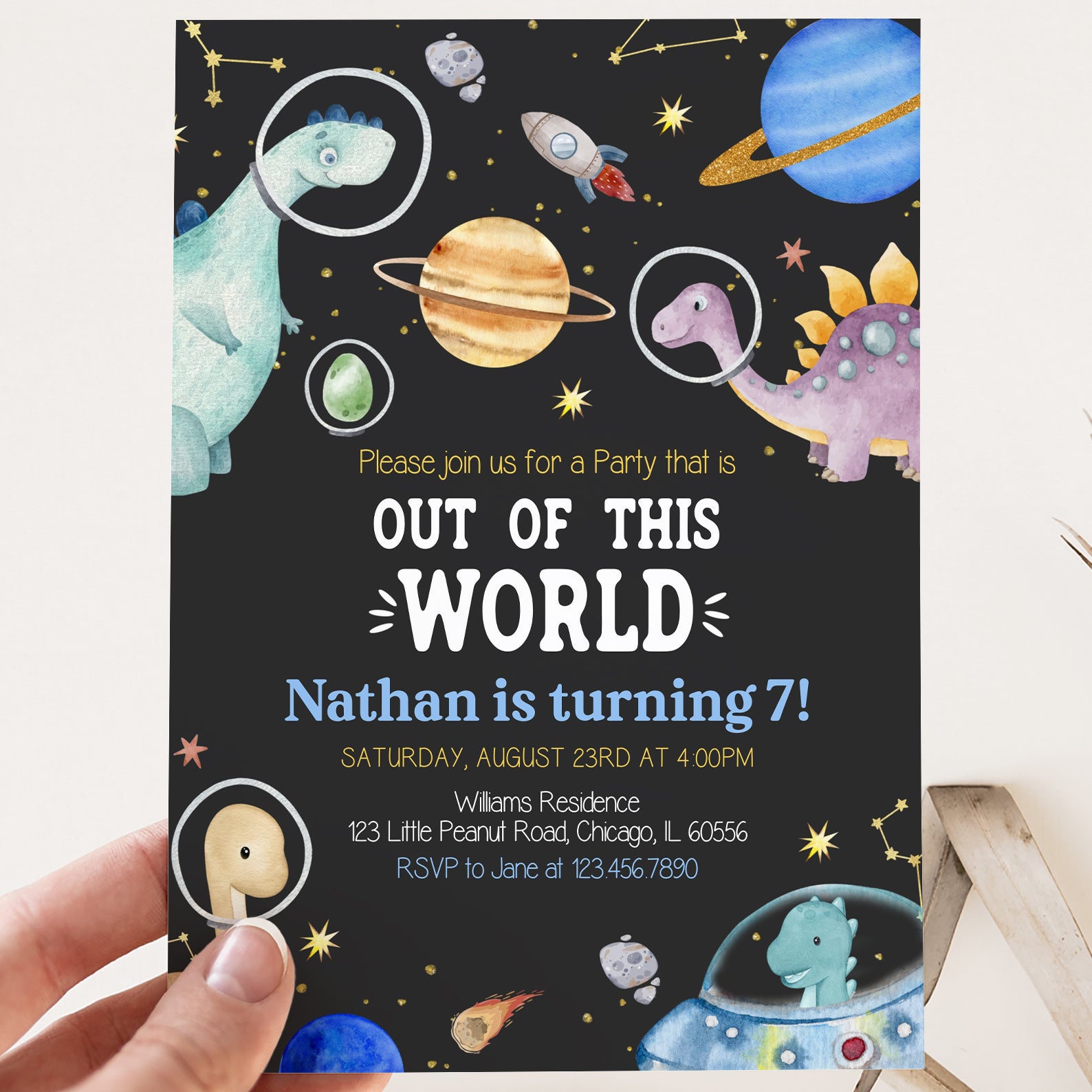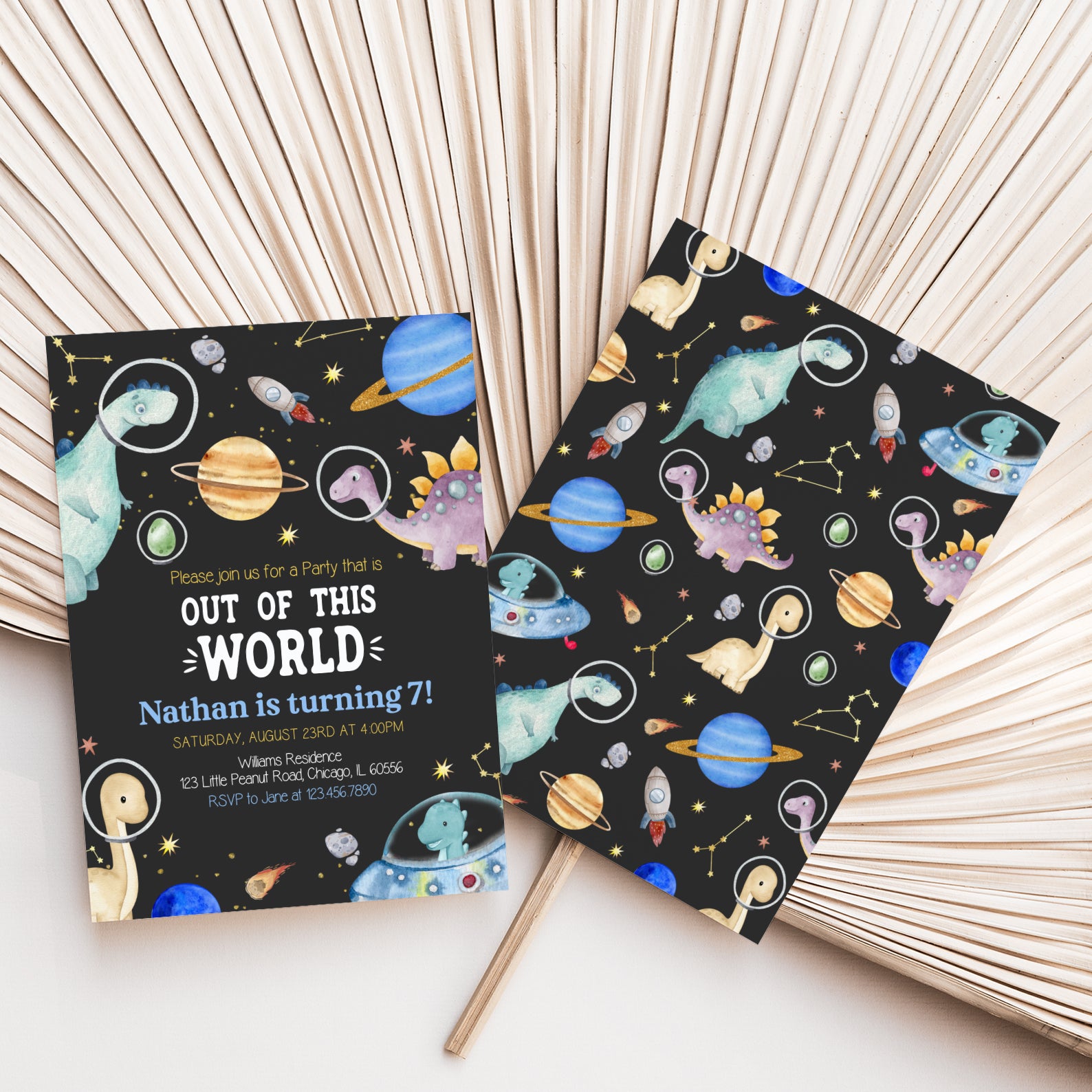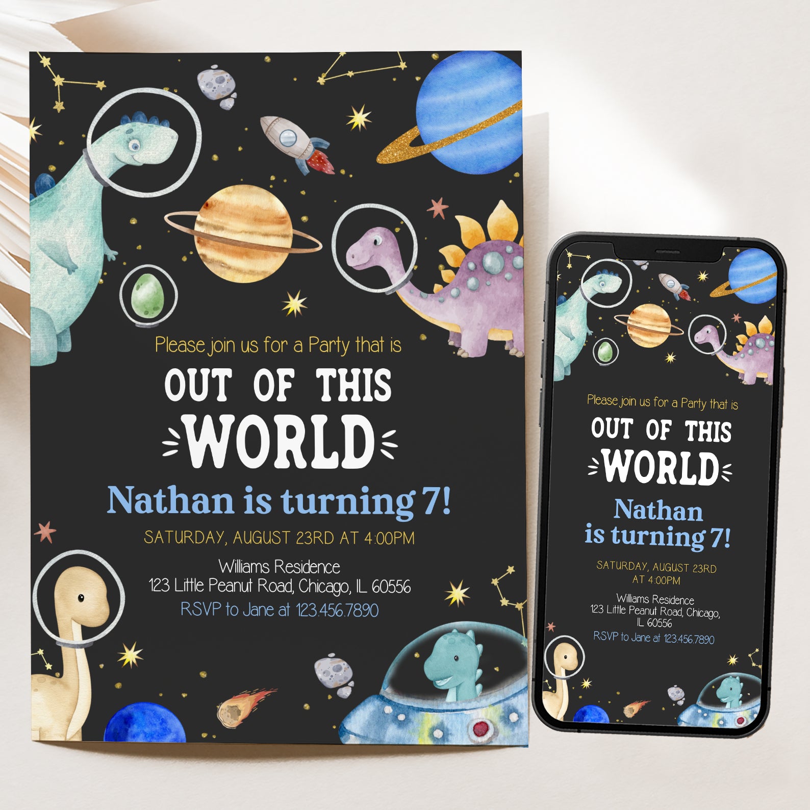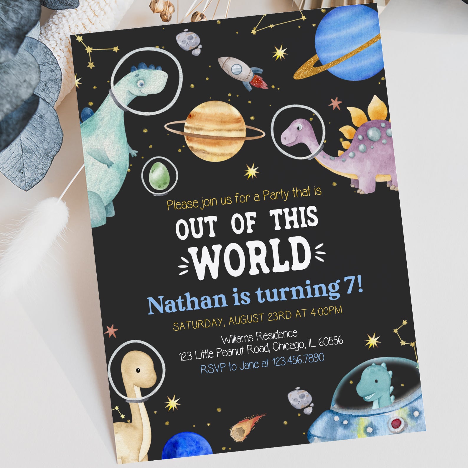 Space Dino 7th Birthday Invitation: Out of This World Fun